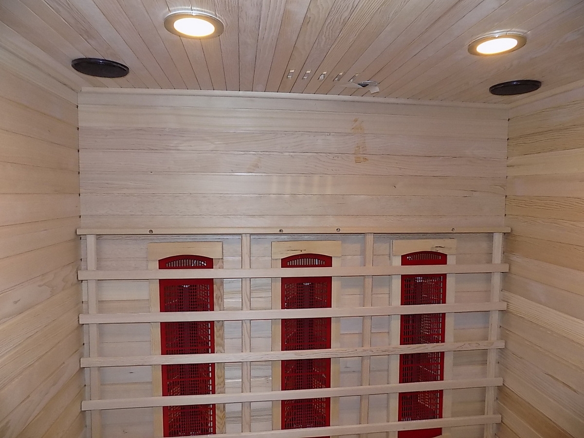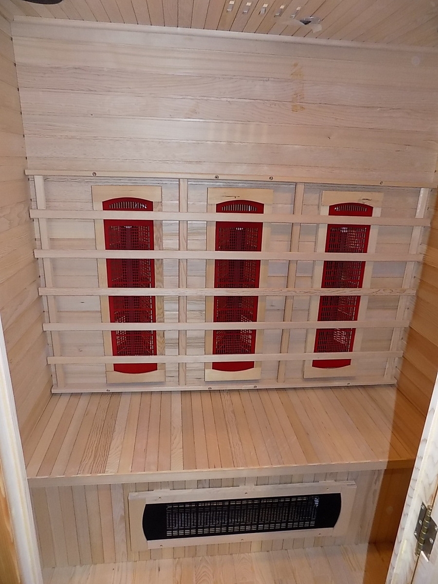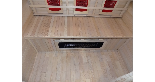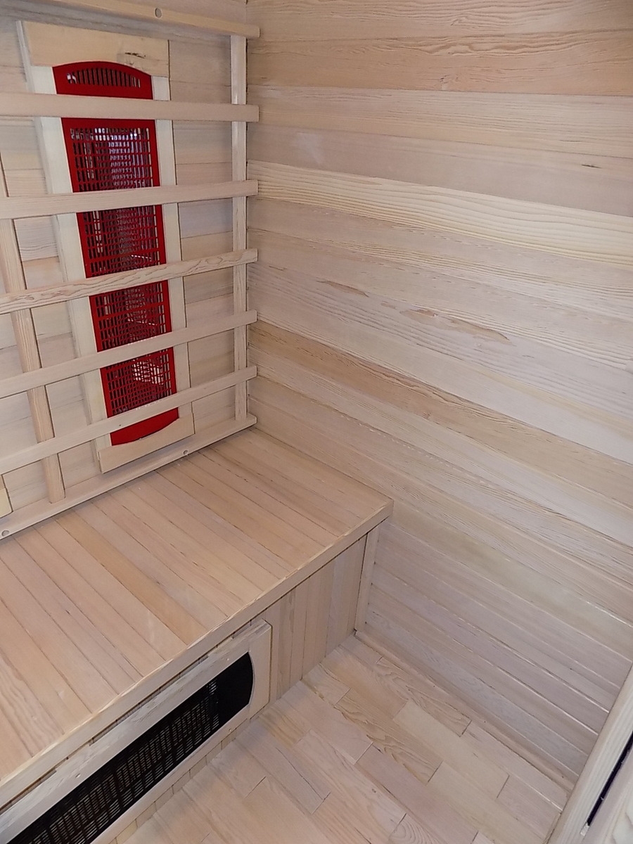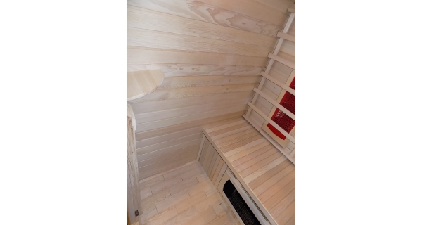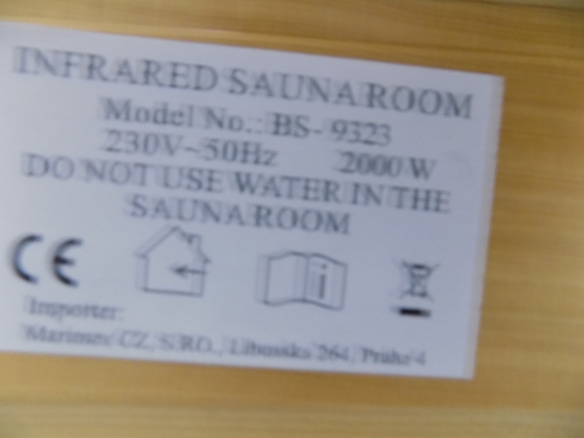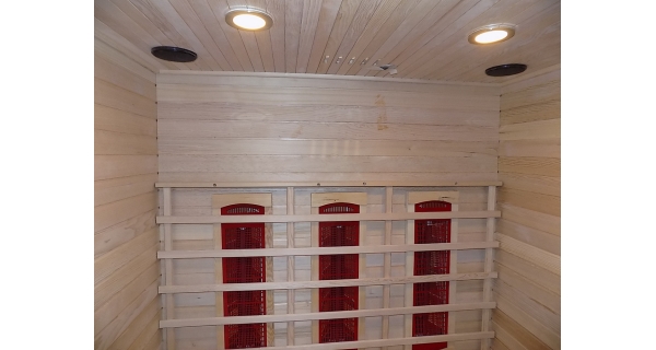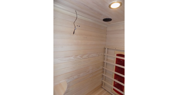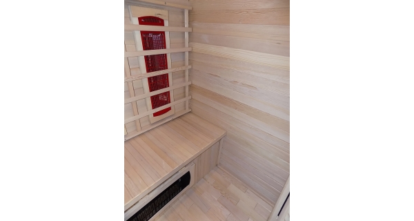 Infrasauna nese známky drobného poškození, přesto je stoprocentně funkční. Všechny uvedené nedostatky mají vliv pouze na vzhled, nikoliv na provoz. Infrasauna byla prověřena servisním technikem.- Venkovní stěny: škrábance, zadním dílu částečně odlomená palubka