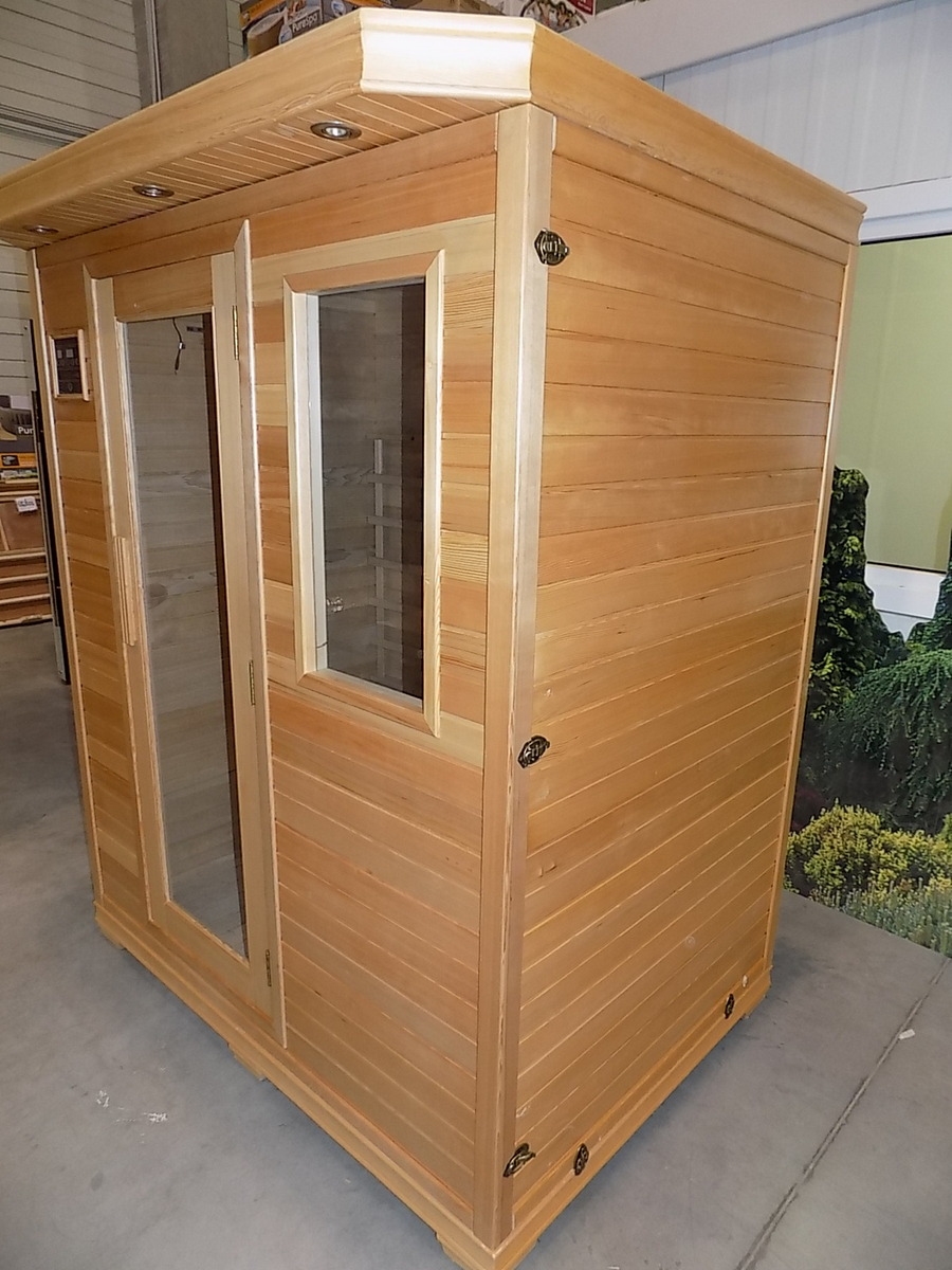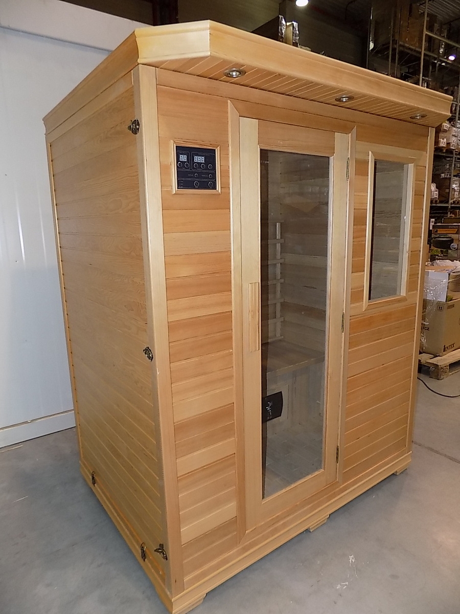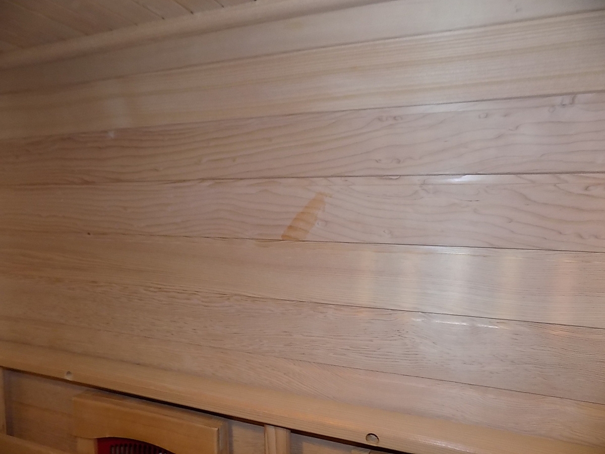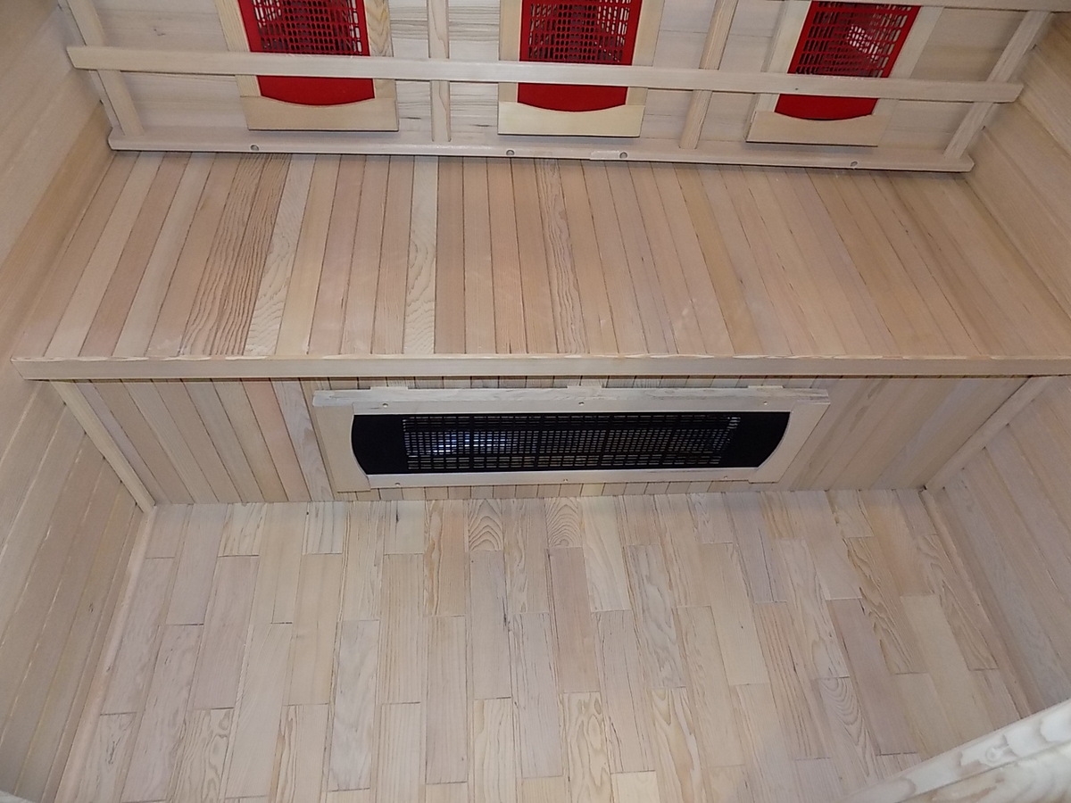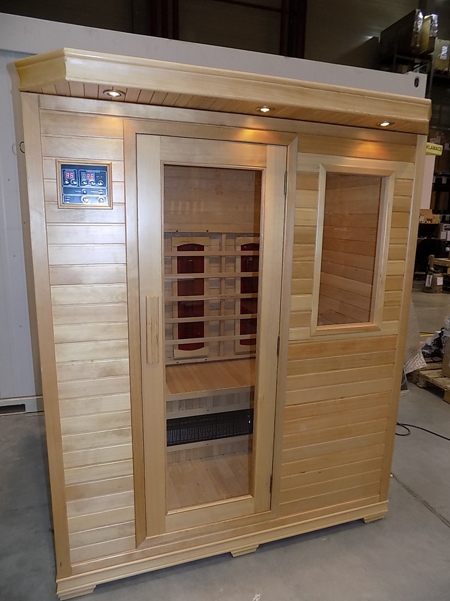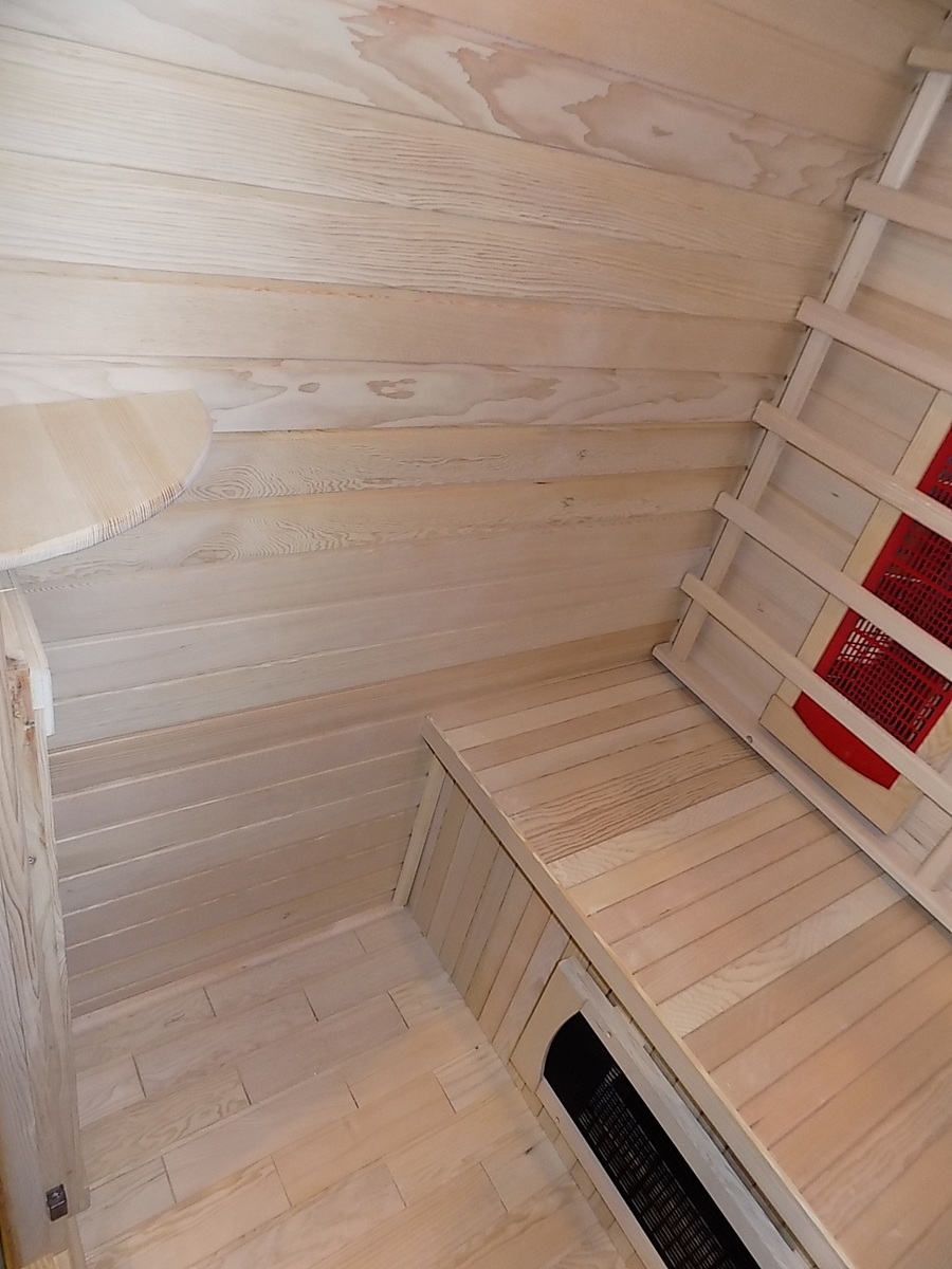 Infrasauna nese známky drobného poškození, přesto je stoprocentně funkční. Všechny uvedené nedostatky mají vliv pouze na vzhled, nikoliv na provoz. Infrasauna byla prověřena servisním technikem.- Venkovní stěny: škrábance, zadním dílu částečně odlomená palubka
