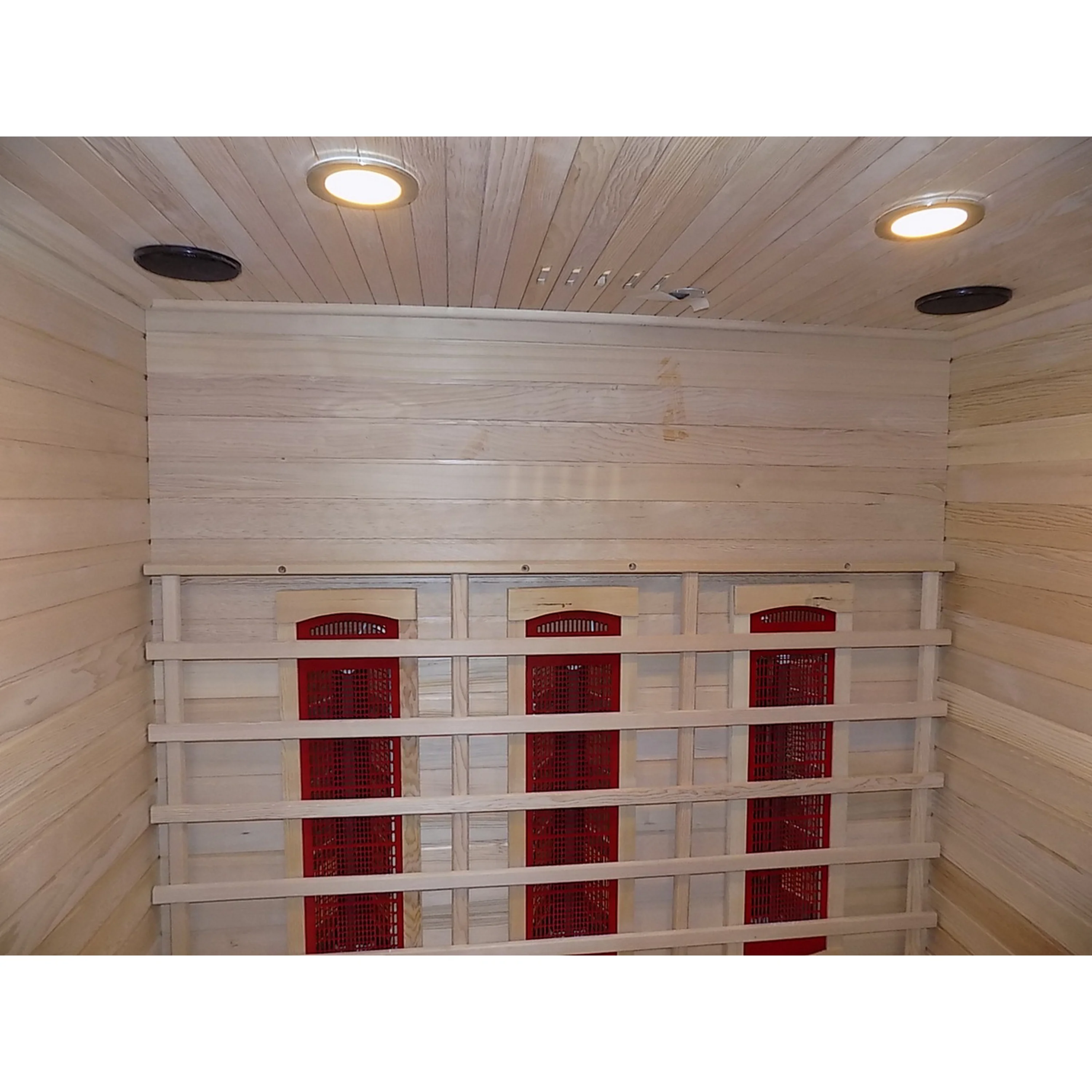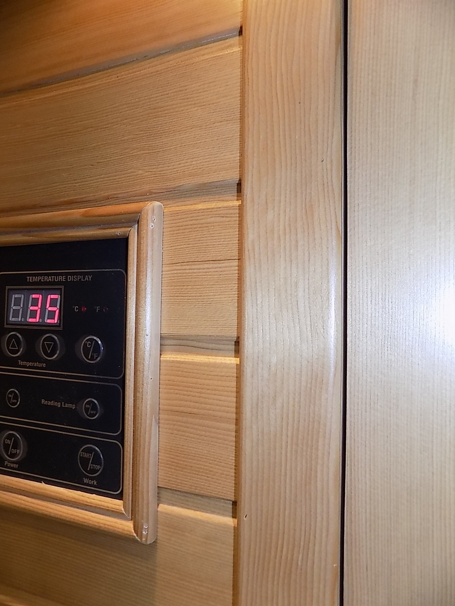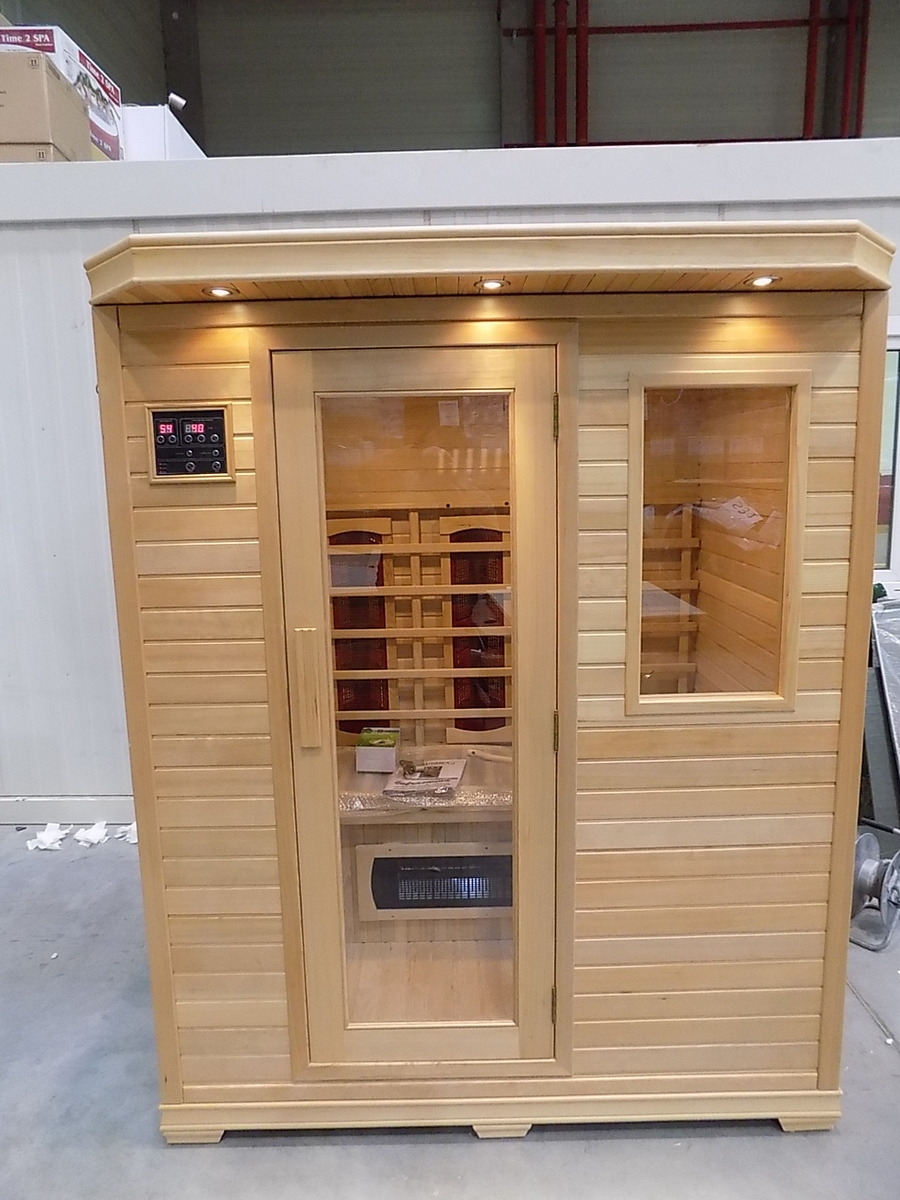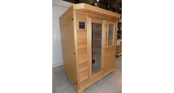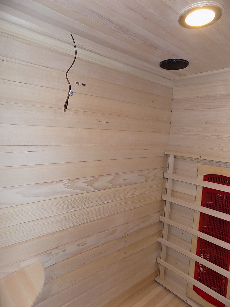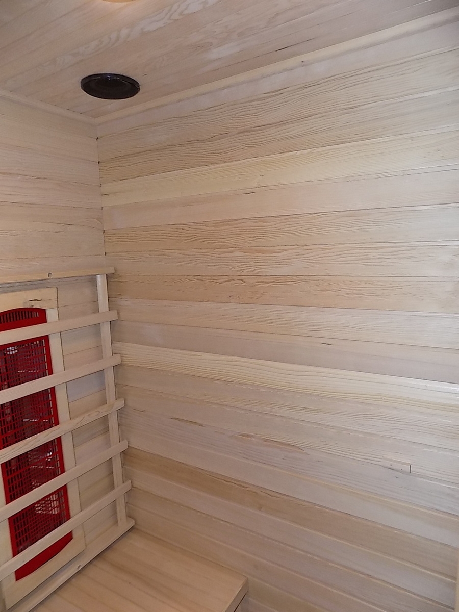 Infrasauna nese známky drobného poškození, přesto je stoprocentně funkční. Všechny uvedené nedostatky mají vliv pouze na vzhled, nikoliv na provoz. Infrasauna byla prověřena servisním technikem.- Venkovní stěny: škrábance, zadním dílu částečně odlomená palubka