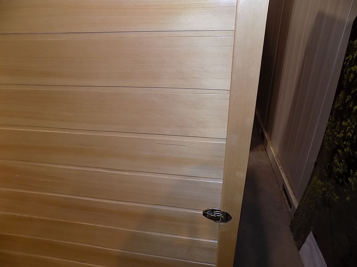 - Venkovní stěna - zadní díl: škrábance, prasklé palubky po celé části