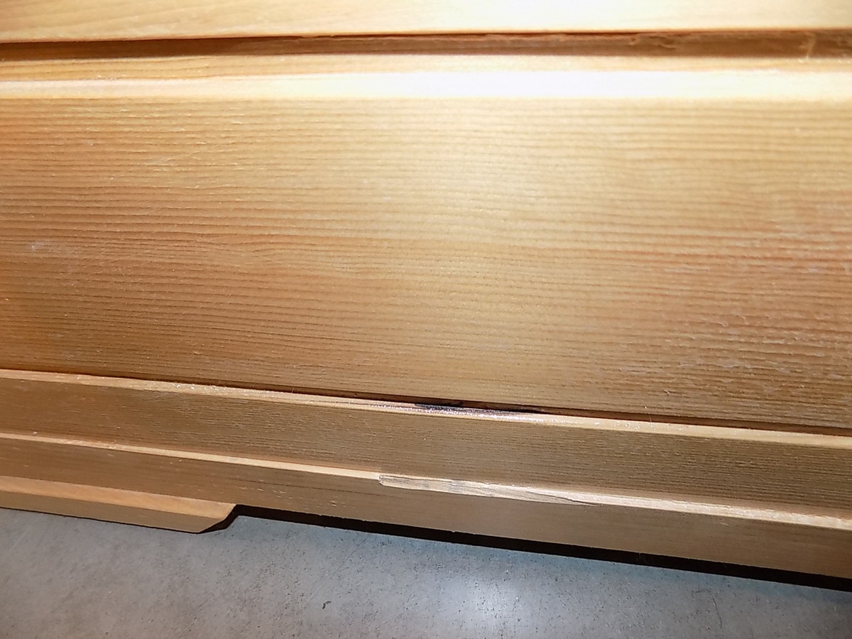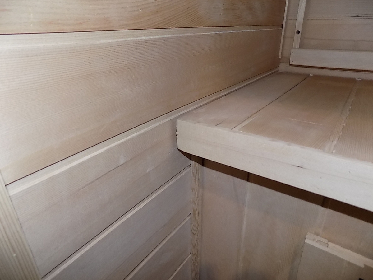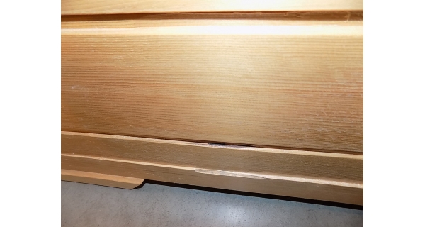 - Vnitřní stěna - zadní a levý díl: mezery mezi palubkami