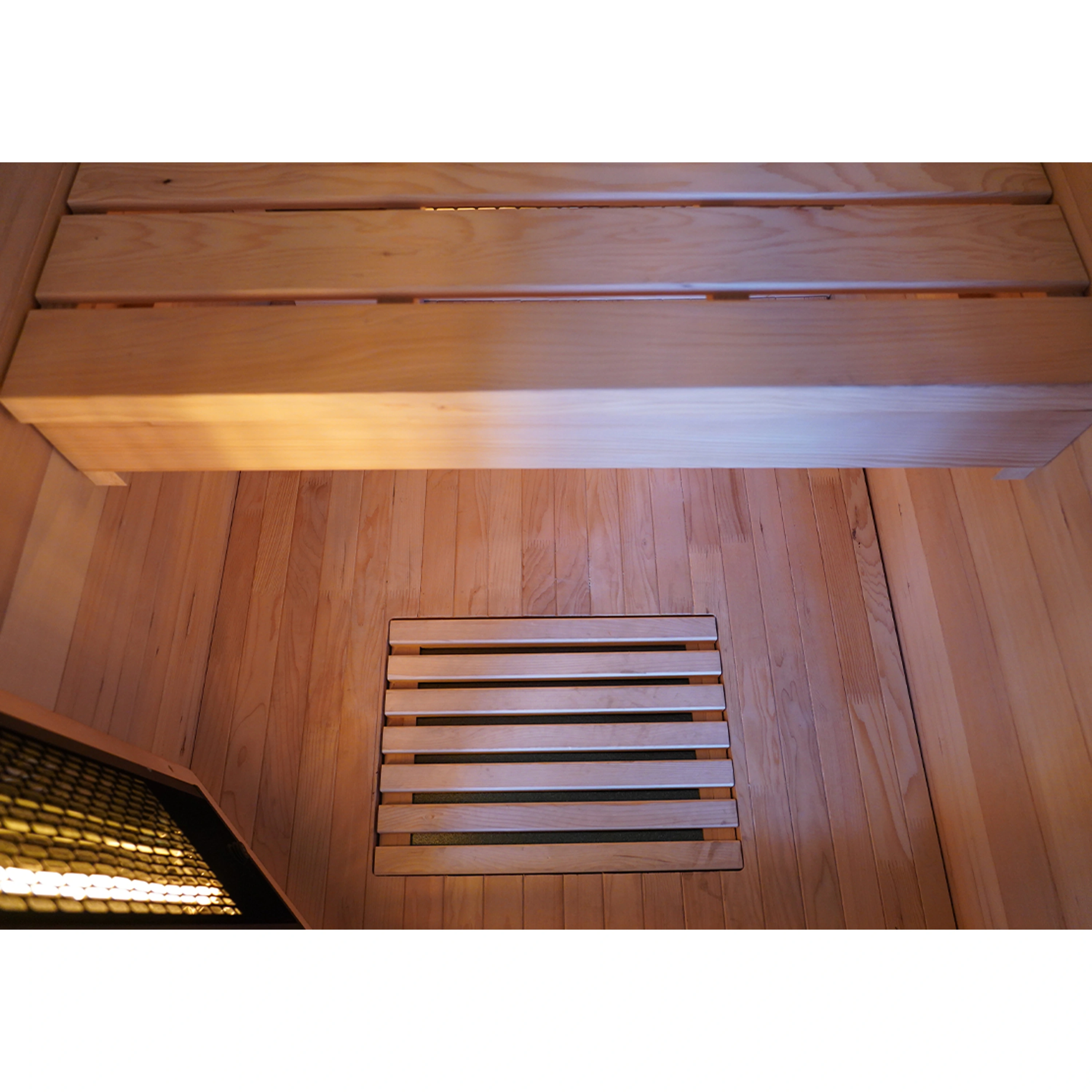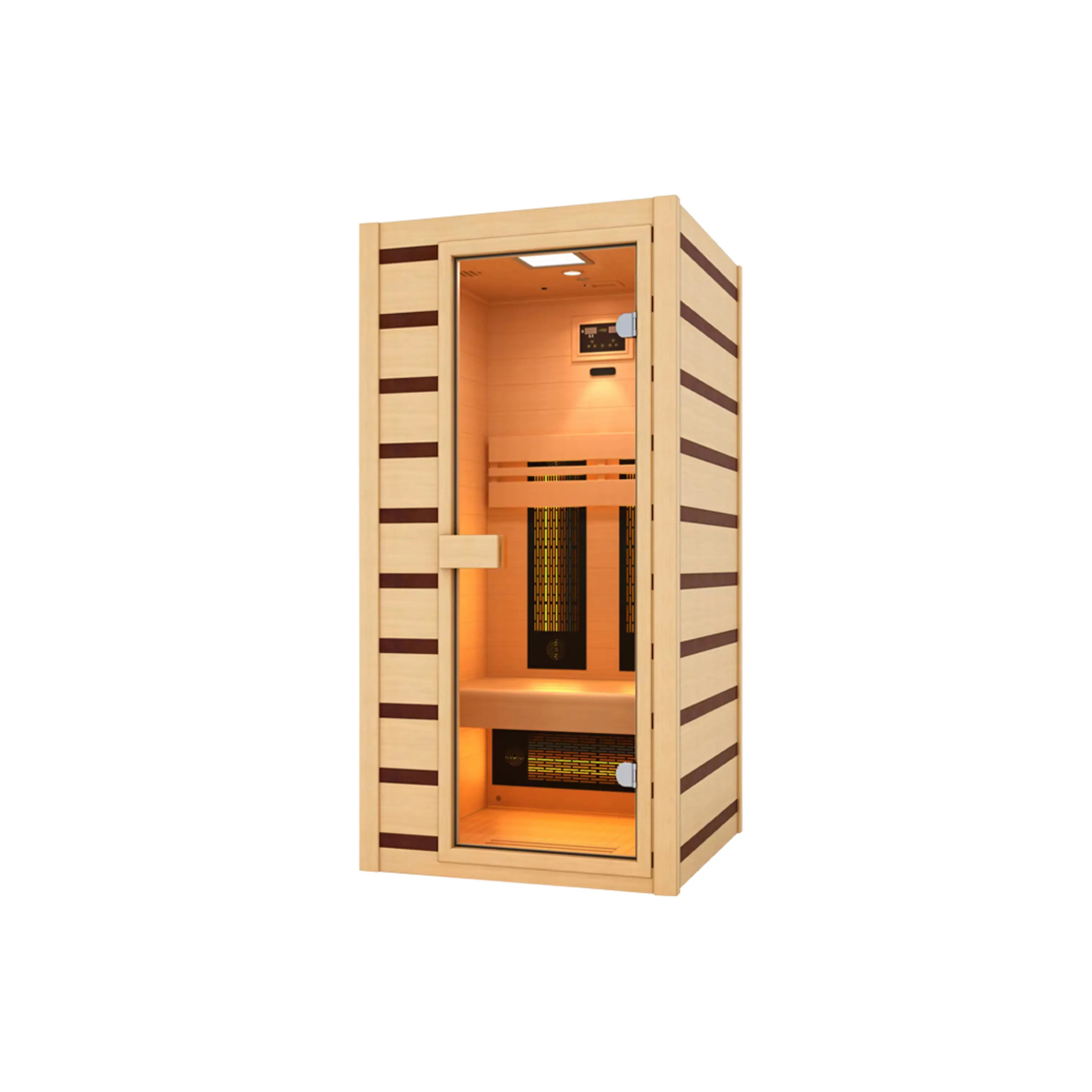 Montáž infrasauny je rychlá a jednoduchá. K přichycení jednotlivých částí se používají kufrové spony, čepy nebo klasické šrouby. Elektroinstalace je již namontovaná od výrobce, pouze stačí propojit kabeláž pomocí zásuvek a konektorů. Vše je přehledně označené.