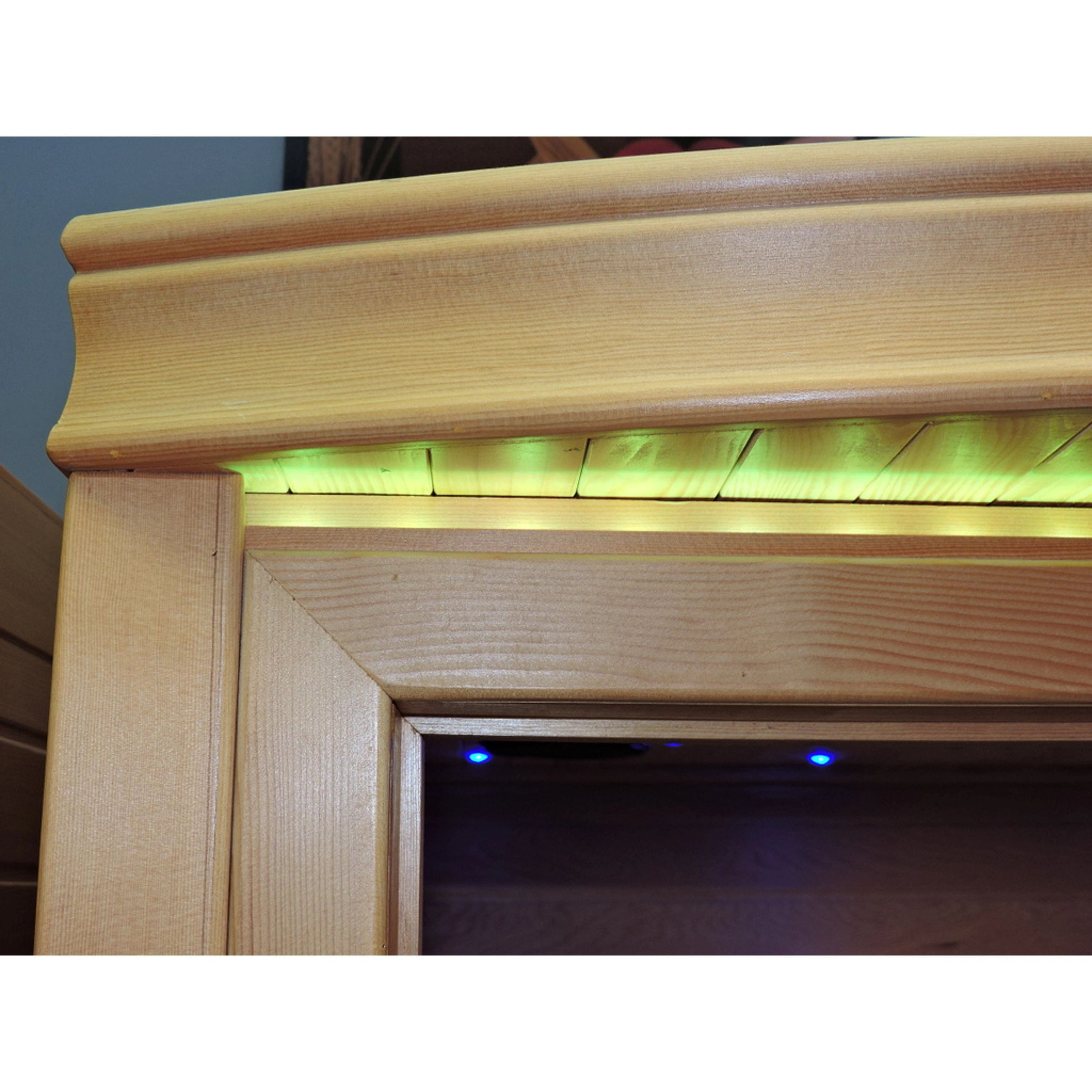 Infrasauna Marimex ELEGANT 2001 L se díky svému designu hodí do každého interiéru. Při výrobě bylo použito kvalitního hemlocku. Infrasauna Marimex ELEGANT 2001 L umožňuje vychutnat kouzlo saunování společně dvěma osobám. Kompaktní rozměry dovolují infrasaunu umístit v rodinném domě i prostornějším bytě. Skleněné dveře umožňují pohodlný výhled po okolí sauny. Nad vstupními dveřmi je dekorativní LED osvětlení. Součástí výbavy infrasauny je ionizér a rádio s mp3 přehrávačem. Tato infrasauna obsahuje vestavěné karbonové podlahové topidlo. Relaxaci v infrasauně si můžete zpříjemnit i LED světelenou terapií.