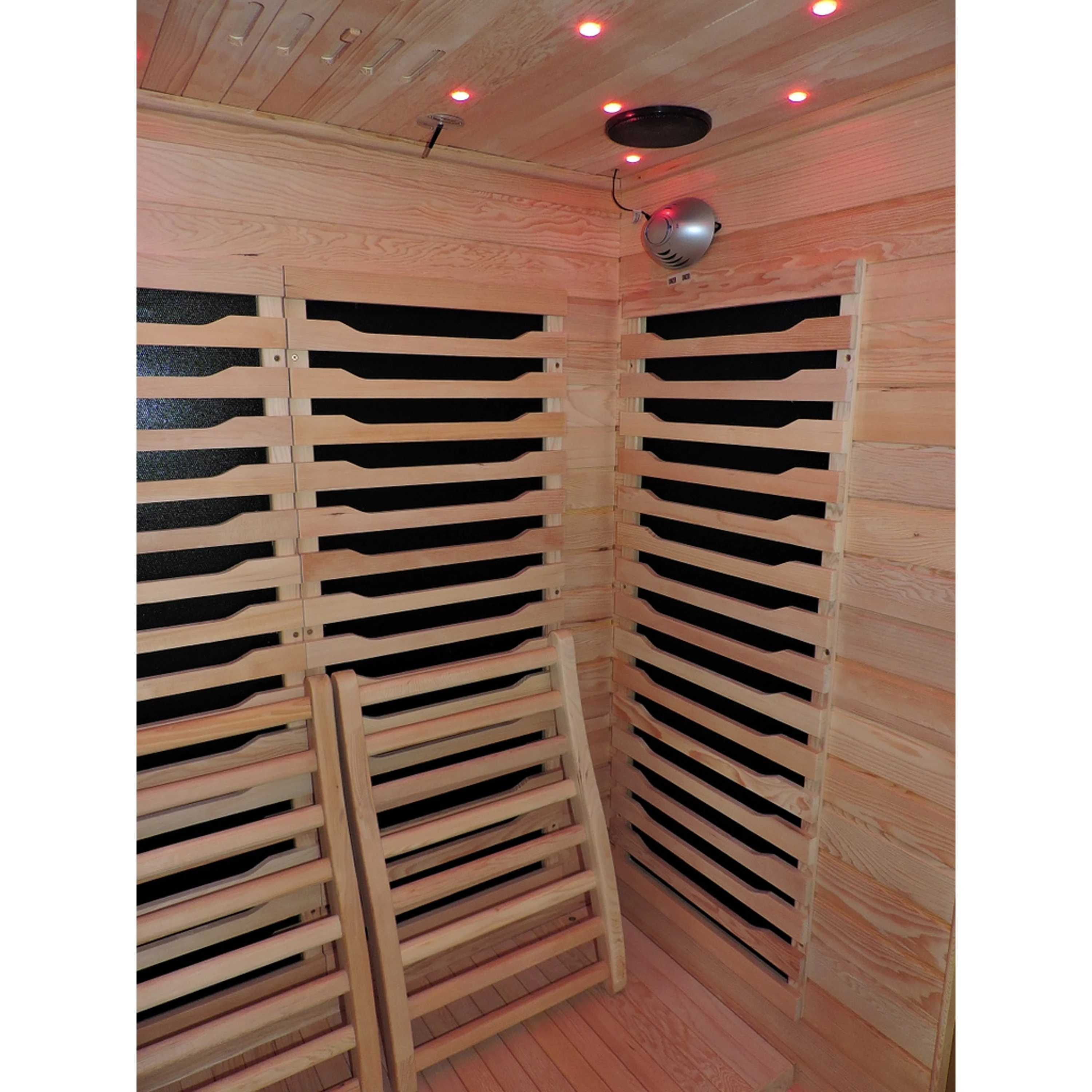 - Radio&MP3 přehrávač - Součástí infrasauny je FM radio přehrávač, který vám navodí tu správnou atmosféru v průběhu saunování. Připojit můžete i USB disk a přehrávat MP3 soubory.