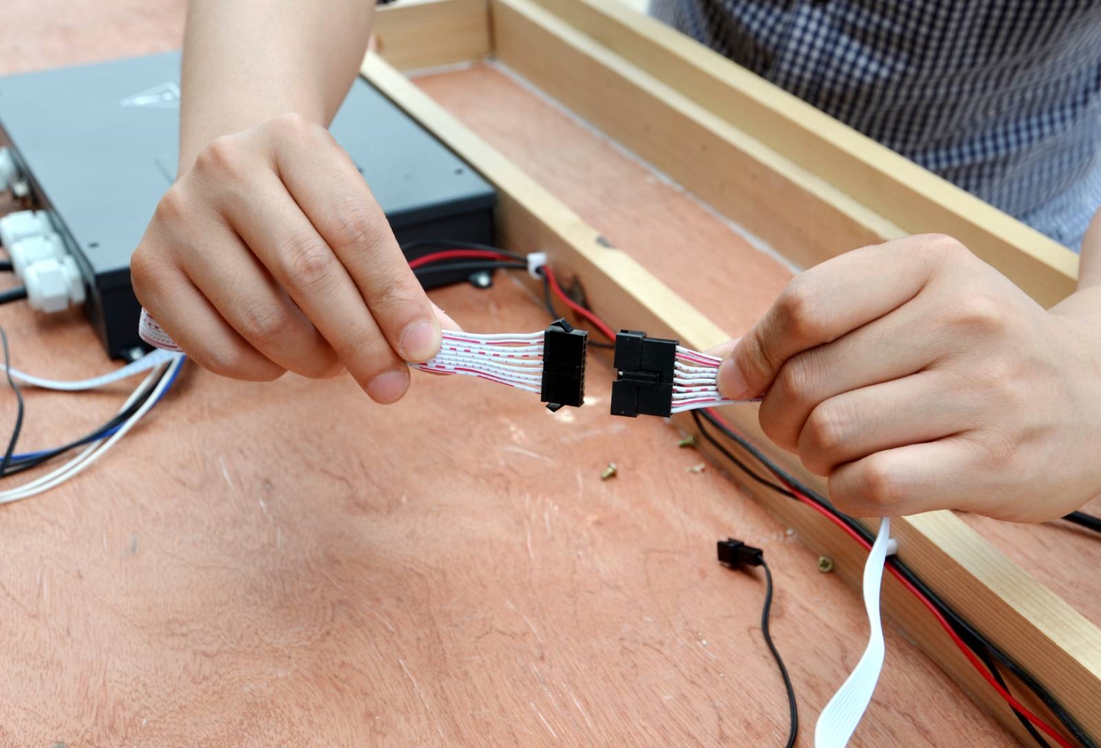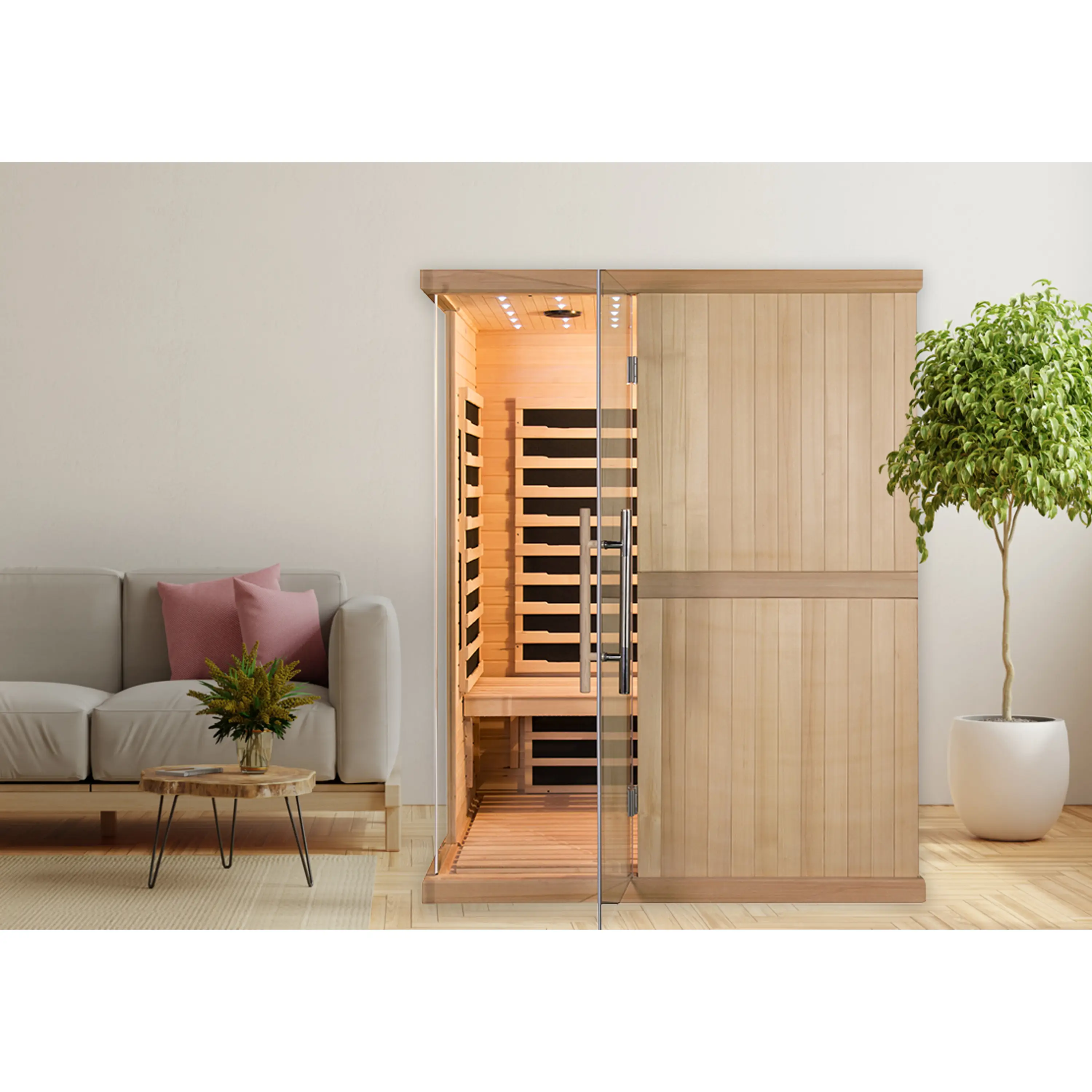 Montáž infrasauny je rychlá a jednoduchá. K přichycení jednotlivých částí se používají kufrové spony, čepy nebo klasické šrouby. Elektroinstalace je již namontovaná od výrobce, pouze stačí propojit kabeláž pomocí zásuvek a konektorů. Vše je přehledně označené.