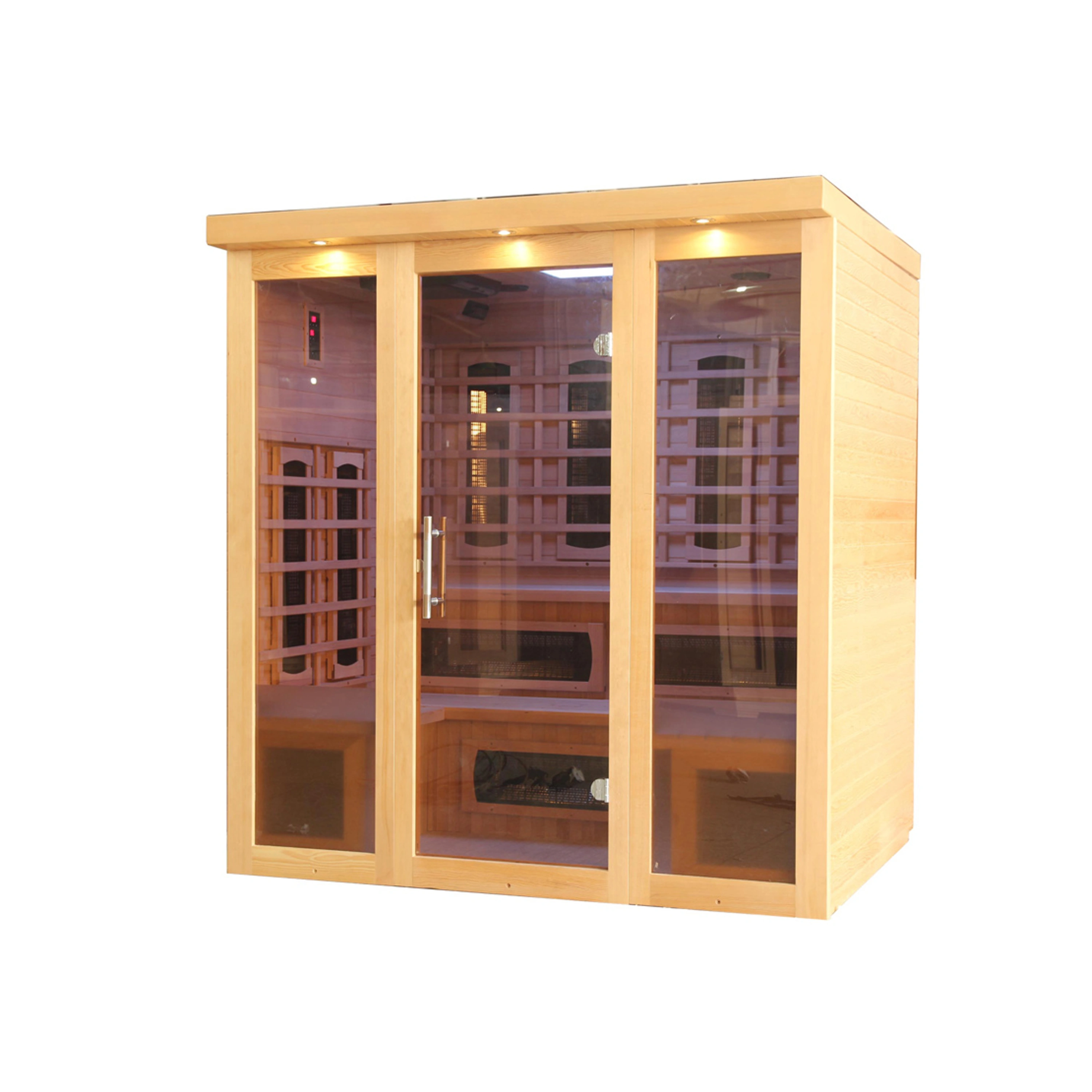 V infrasauně je rozmístěno 15 keramických topidel a jedno karbonové. Keramická topidla pracují s povrchovou teplotou 250 až 300 stupňů Celsia. Ve srovnání s karbonovými se keramické zářiče zahřejí velice rychle. Nevýhodou může být vyšší spotřeba, ale vždy záleží na typu infrasauny. Pořizovací náklady tohoto typu zářičů jsou nižší, životnost je cca 8 000 hodin. Při běžném saunování (3x týdně 45 min) vydrží cca 60 let.