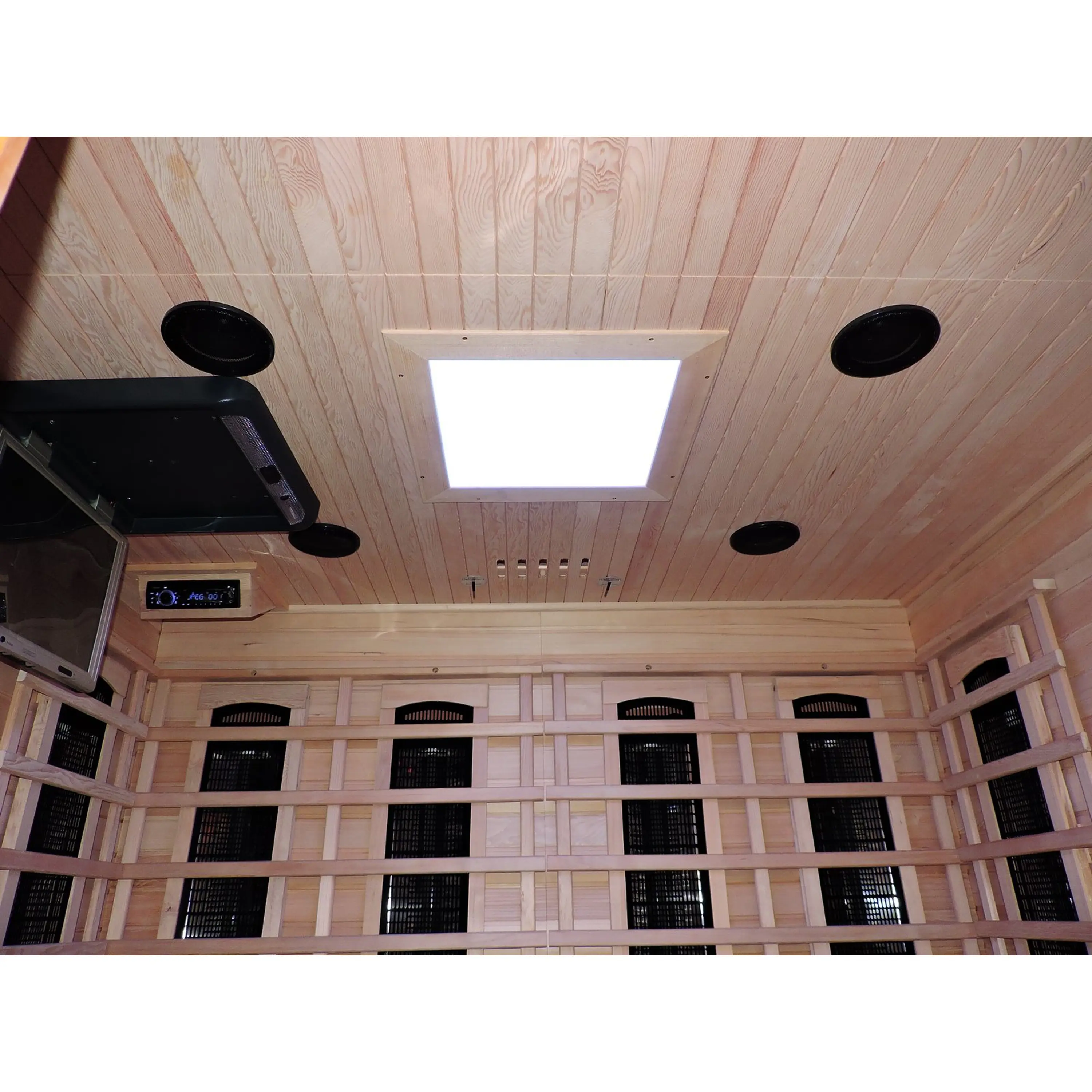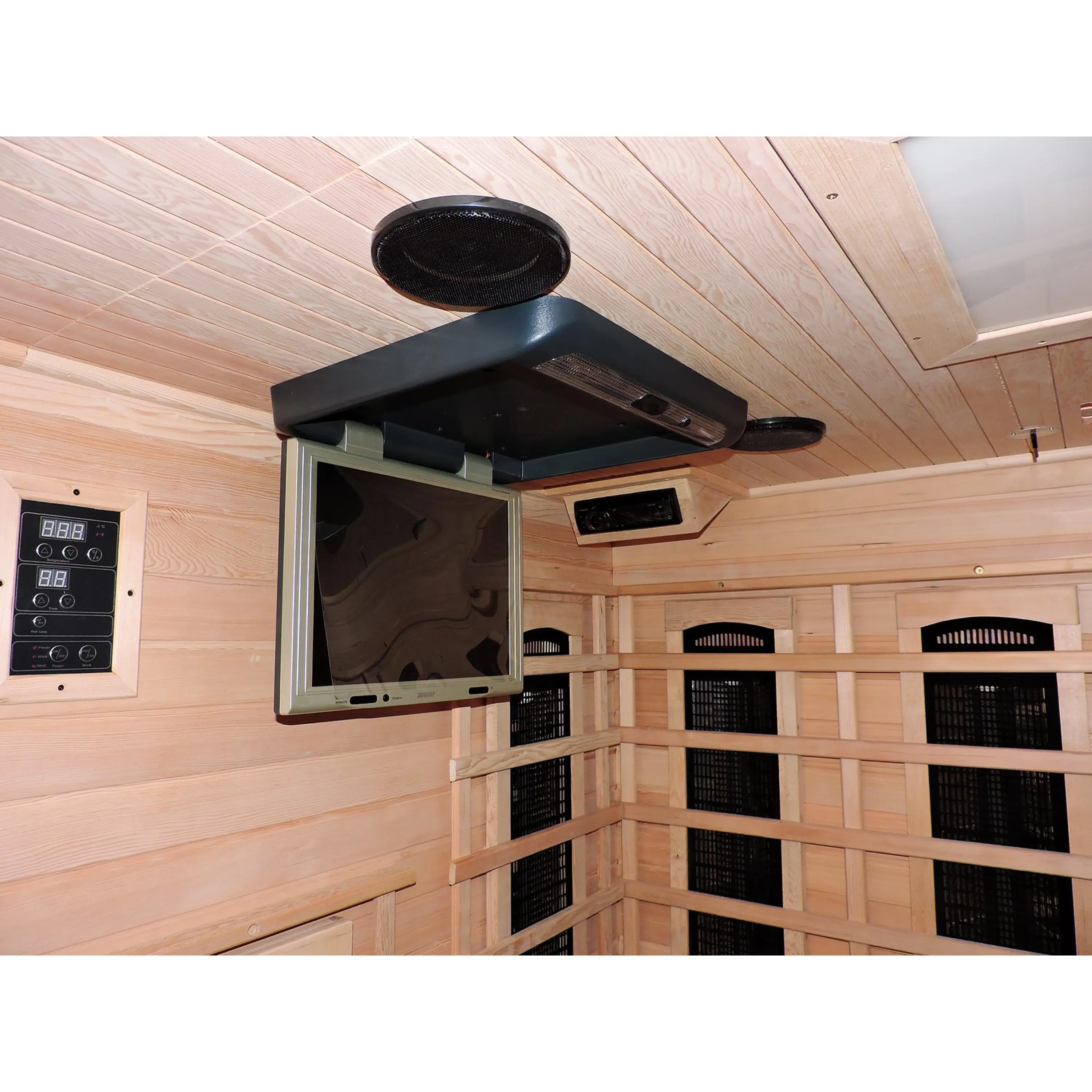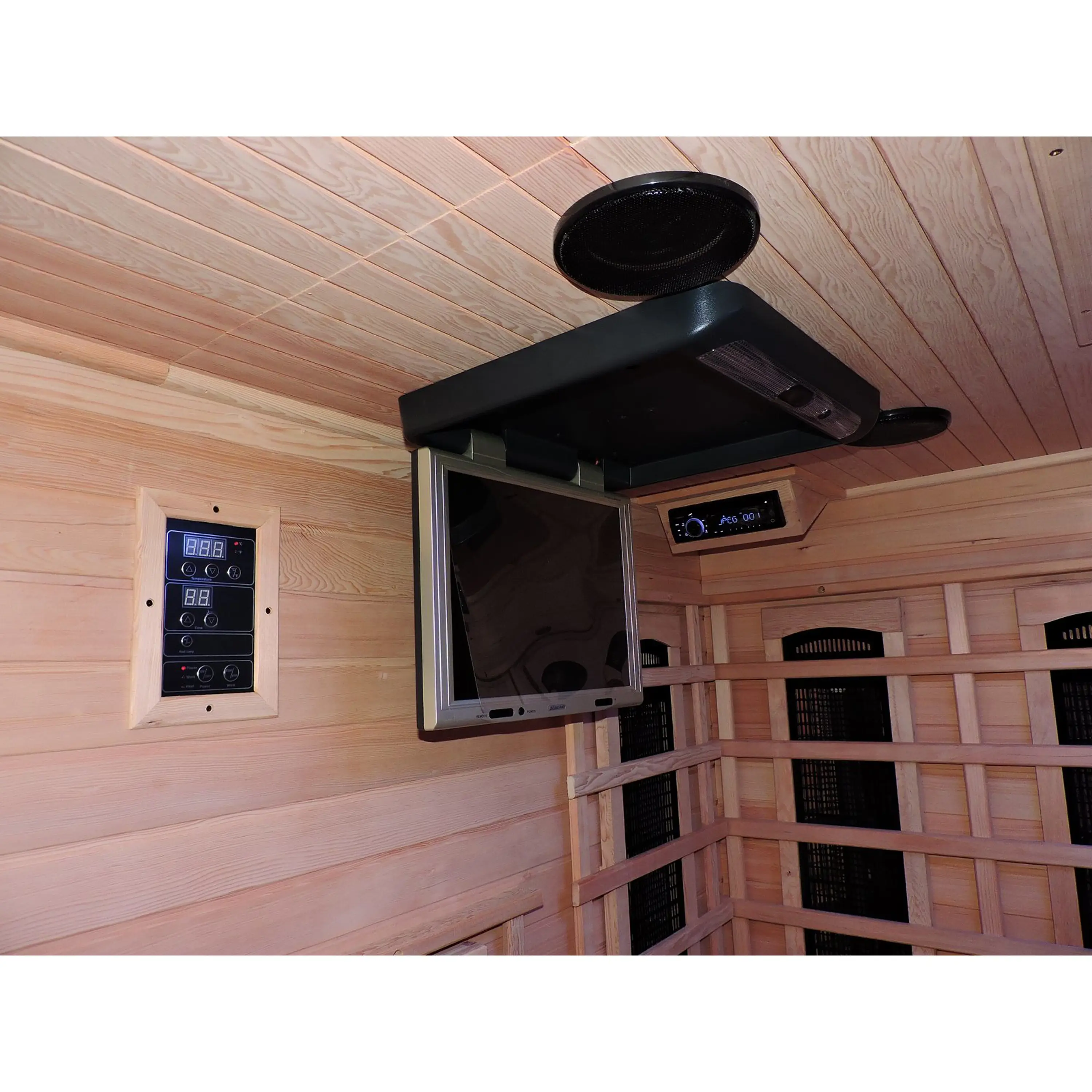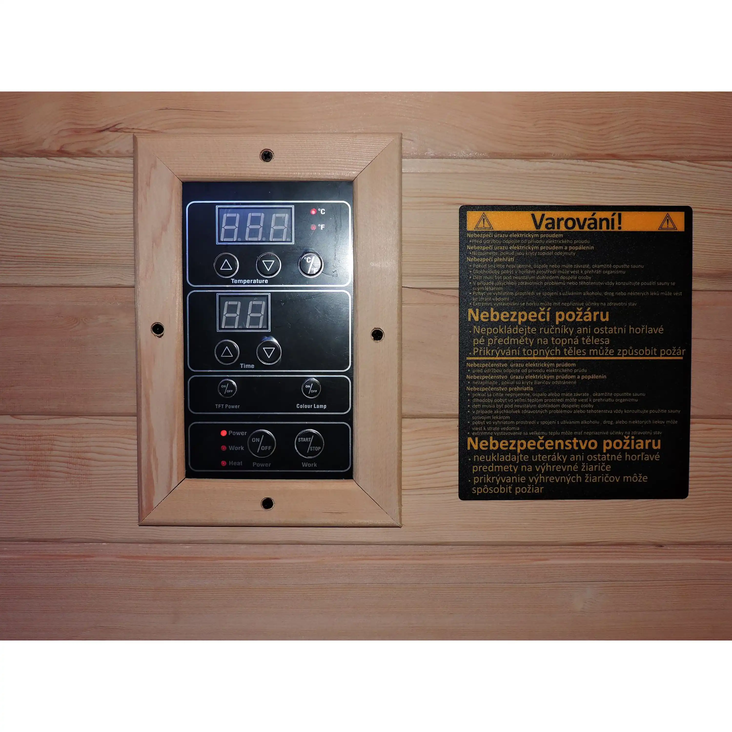 Infrasauna Marimex ELEGANT 4000 XXL je největší infrasaunou v naší nabídce. Do infrasauny se pohodlně vejde až 6 lidí. O ohřev infrasauny se stará 15 ks keramických topidel. Protože má infrasauna příkon 4750 W, je nutné dva napájecí kabely zapojit do dvou nezávislých zásuvek (každá na jiném jističi). Vaše elektroinstalace by tedy na tuto infrasaunu měla být připravená. Infrasauna má i dvě řídící jednotky. Pro vaše pohodlí je nainstalován i DVD přehrávač s výklopnou obrazovkou.