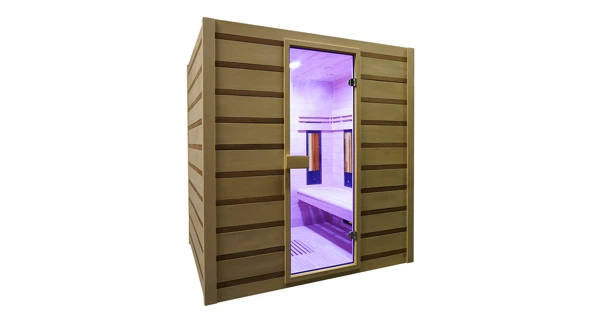 Sauna je vybavena duálními topidly.