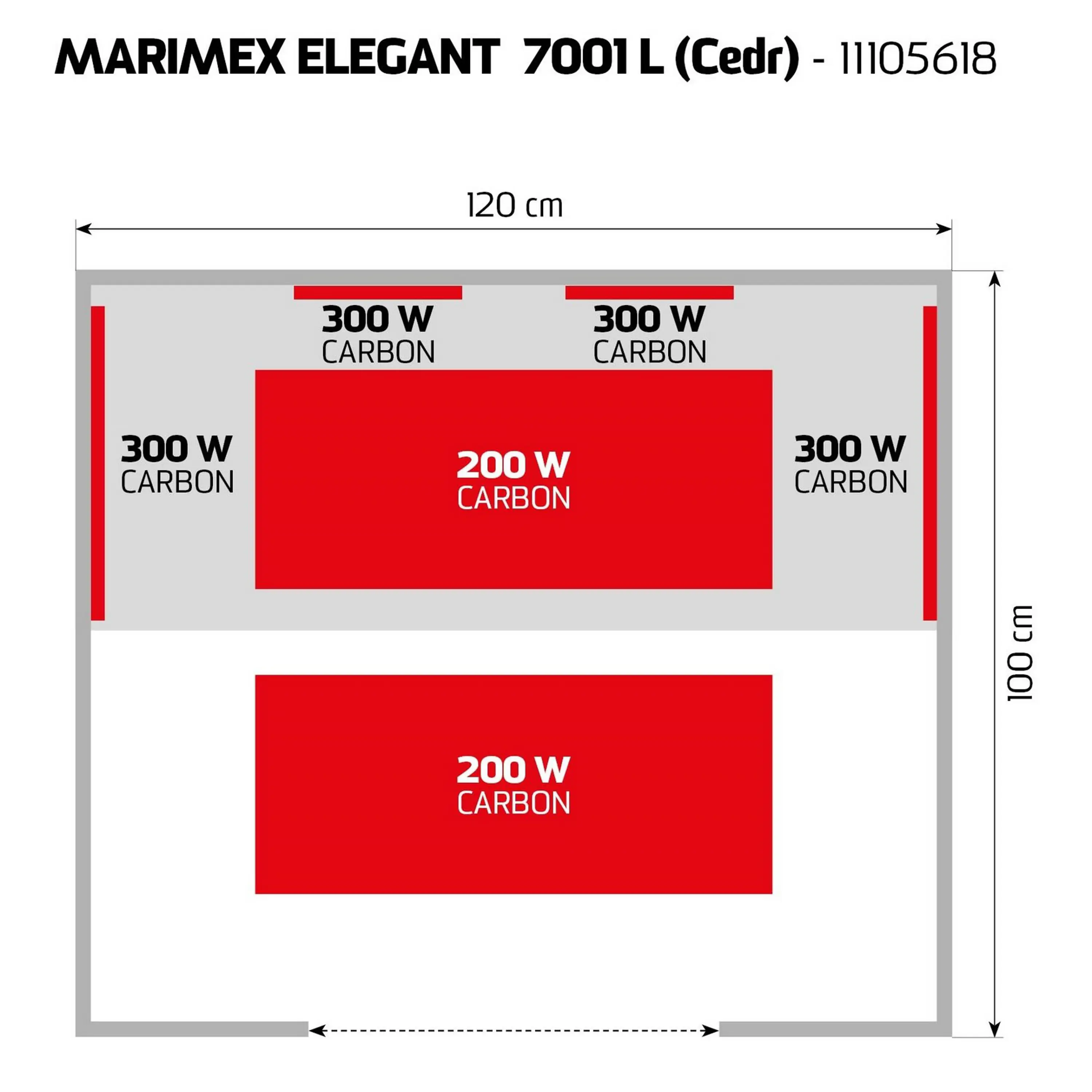 šest karbonových topidel. Ve srovnání s jinými typy karbonové zářiče tvoří tenké pásy, které vyvinou povrchovou teplotu 70 - 170 stupňů Celsia. Karbonové zářiče dosáhnou maximální teploty pomaleji, naproti tomu mají