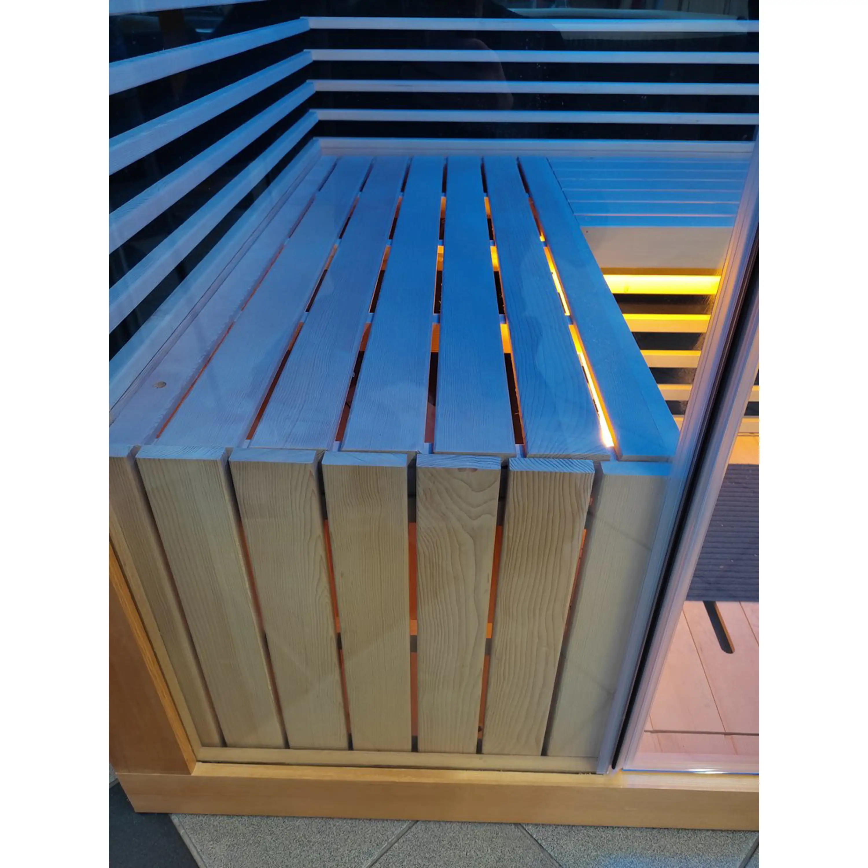 Právě teď nabízíme možnost zakoupit vystavený model infrasauny za sníženou cenu. Infrasauna je v pořádku a plně funkční. Jedná se o produkt, který byl rozbalený a vystavený za účelem předvádění na prodejně. Místy se však mohou vyskytovat drobné vzhledové oděrky, které provozu infrasauny nebrání a na první pohled nejsou téměř patrné.