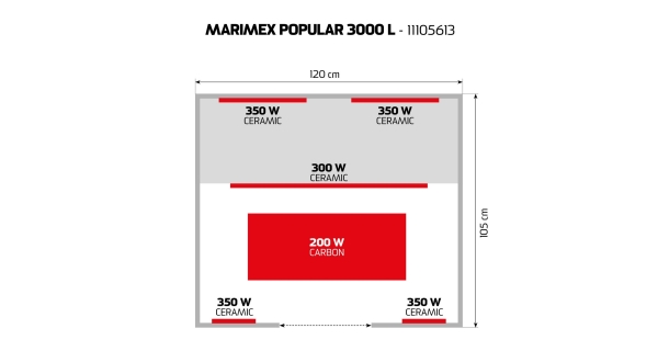 Infrasauna Marimex POPULAR 3000 L se díky svému designu hodí do každého interiéru. Při výrobě bylo použito kvalitního dřeva kanadského jedlovce - hemlocku. Infrasauna Marimex POPULAR 3000 L umožňuje vychutnat kouzlo saunování dvěma osobám najednou. Malé rozměry dovolují infrasaunu umístit v rodinném domě i prostornějším bytě. Skleněné dveře umožňují pohodlný výhled po okolí sauny. Součástí výbavy je ionizér a rádio/mp3 přehrávač. Tato infrasauna obsahuje podlahové topidlo.