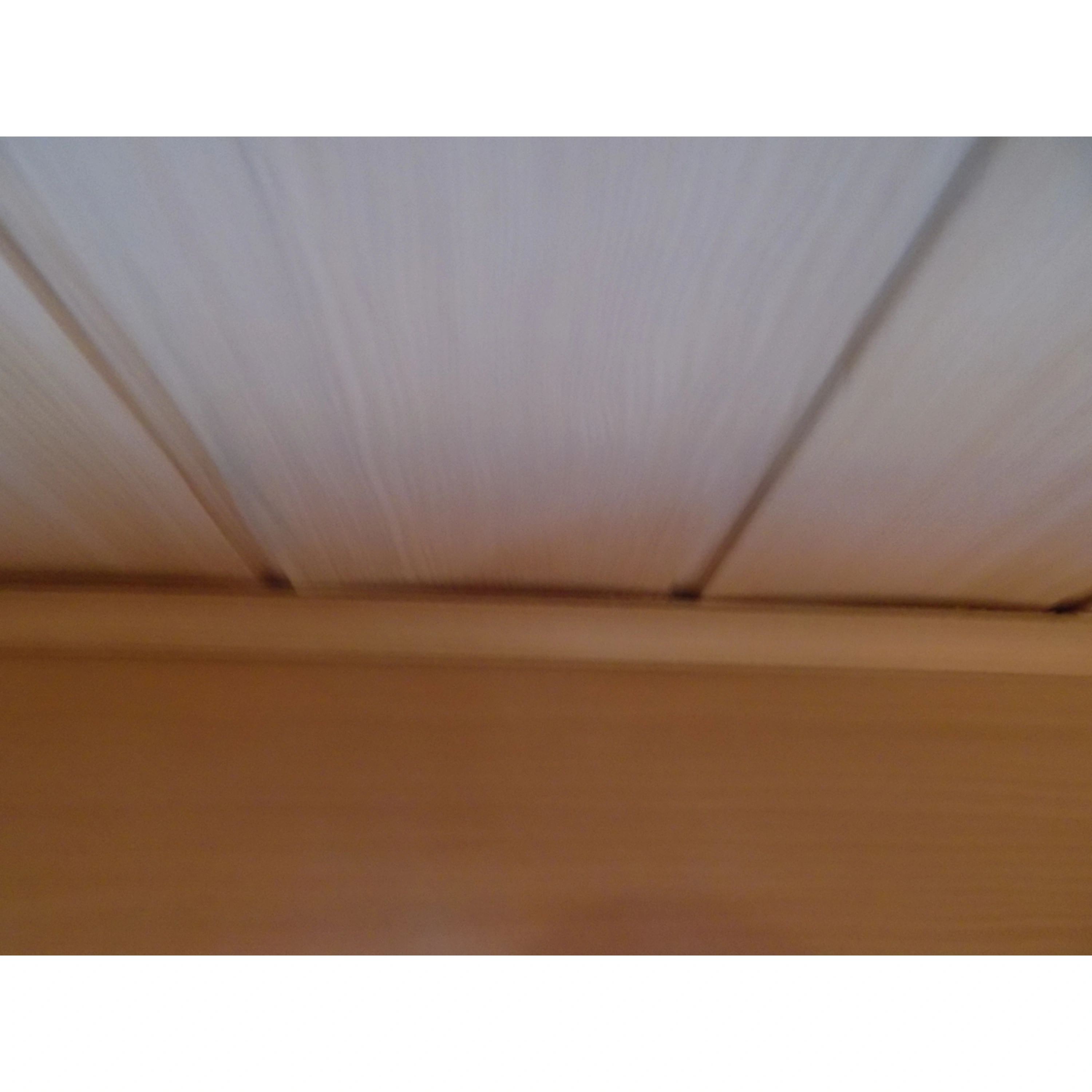 - Strop: poškrábaný, prohlé palubky