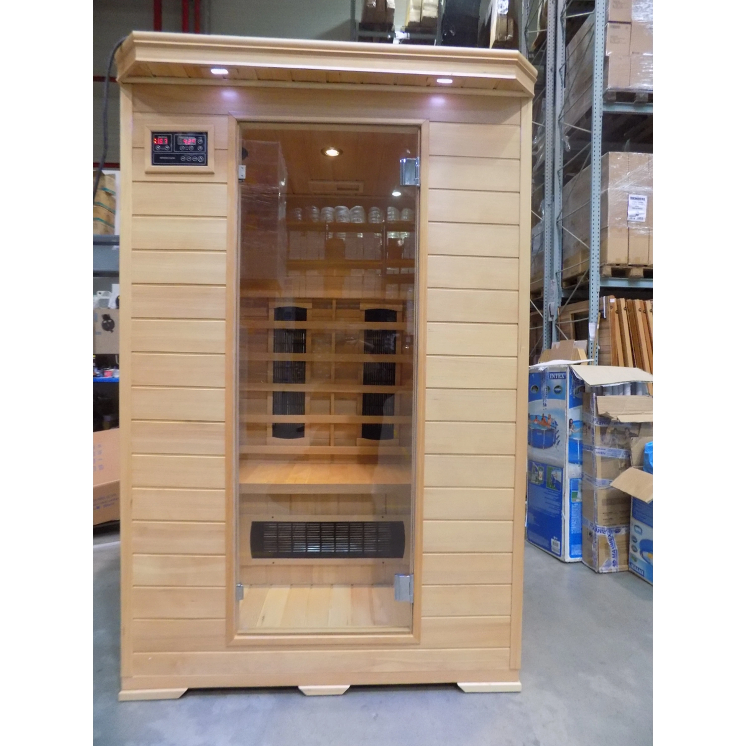 Infrasauna nese známky drobného poškození, přesto je stoprocentně funkční. Všechny uvedené nedostatky mají vliv pouze na vzhled, nikoliv na provoz. Infrasauna byla prověřena servisním technikem