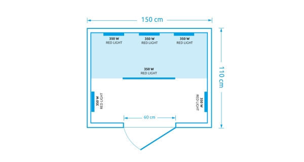 V infrasauně je rozmístěno 6 redlight topidel. Redlight topidla pracují s povrchovou teplotou 250 až 300 stupňů Celsia. Ve srovnání s karbonovými se redlight zářiče zahřejí velice rychle. Nevýhodou může být vyšší spotřeba, ale vždy záleží na typu infrasauny. Pořizovací náklady tohoto typu zářičů jsou nižší, životnost je cca 8 000 hodin. Při běžném saunování (3x týdně 45 min) vydrží cca 60 let. Redlight topidla dosahují téměř okamžitě požadované teploty. Jsou tvořeny trubicemi z křemičitého skla, které kromě intenzivního sálavého tepla vyzařují také světlo umocňující jejich blahodárné terapeutické účinky. Vyzařují teplo na krátkých vlnových délkách.