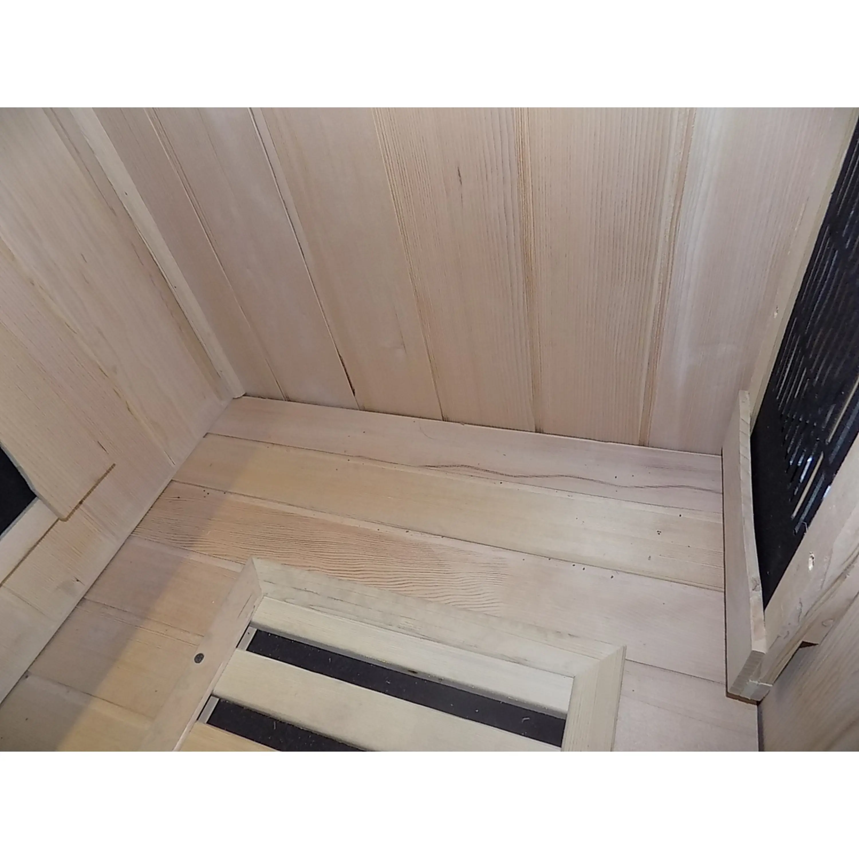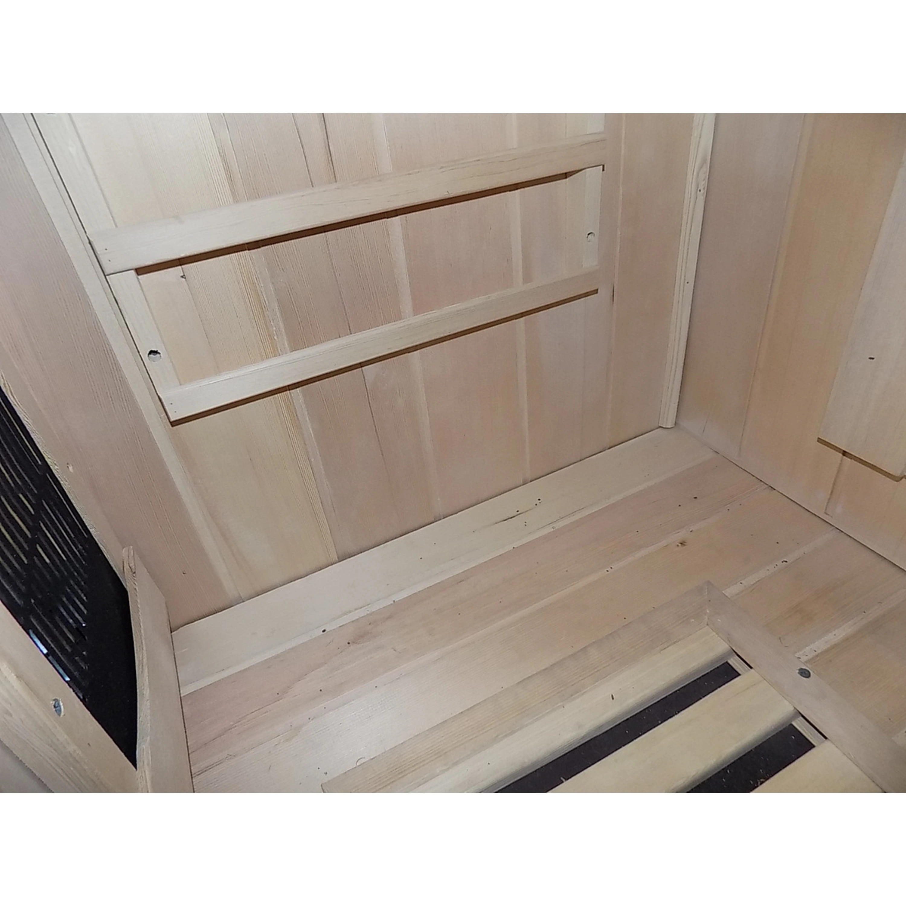 Infrasauna nese známky drobného poškození, přesto je stoprocentně funkční. Všechny uvedené nedostatky mají vliv pouze na vzhled, nikoliv na provoz. Infrasauna
