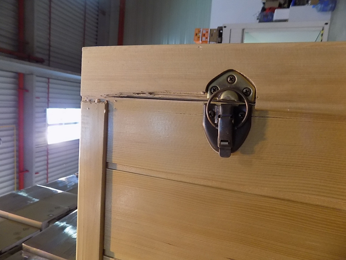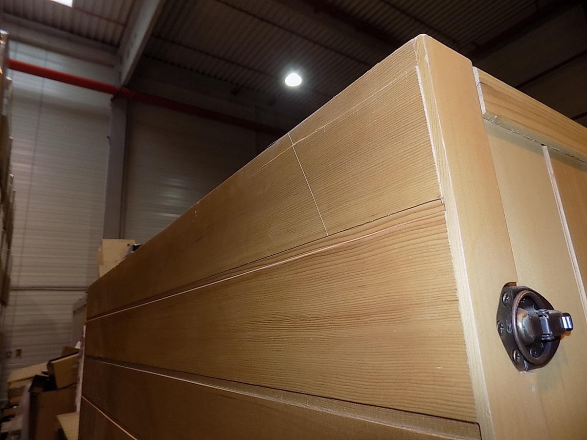 - Venkovní stěna - levý díl: škrábance, nedokonalé lakování, prasklina u pantu