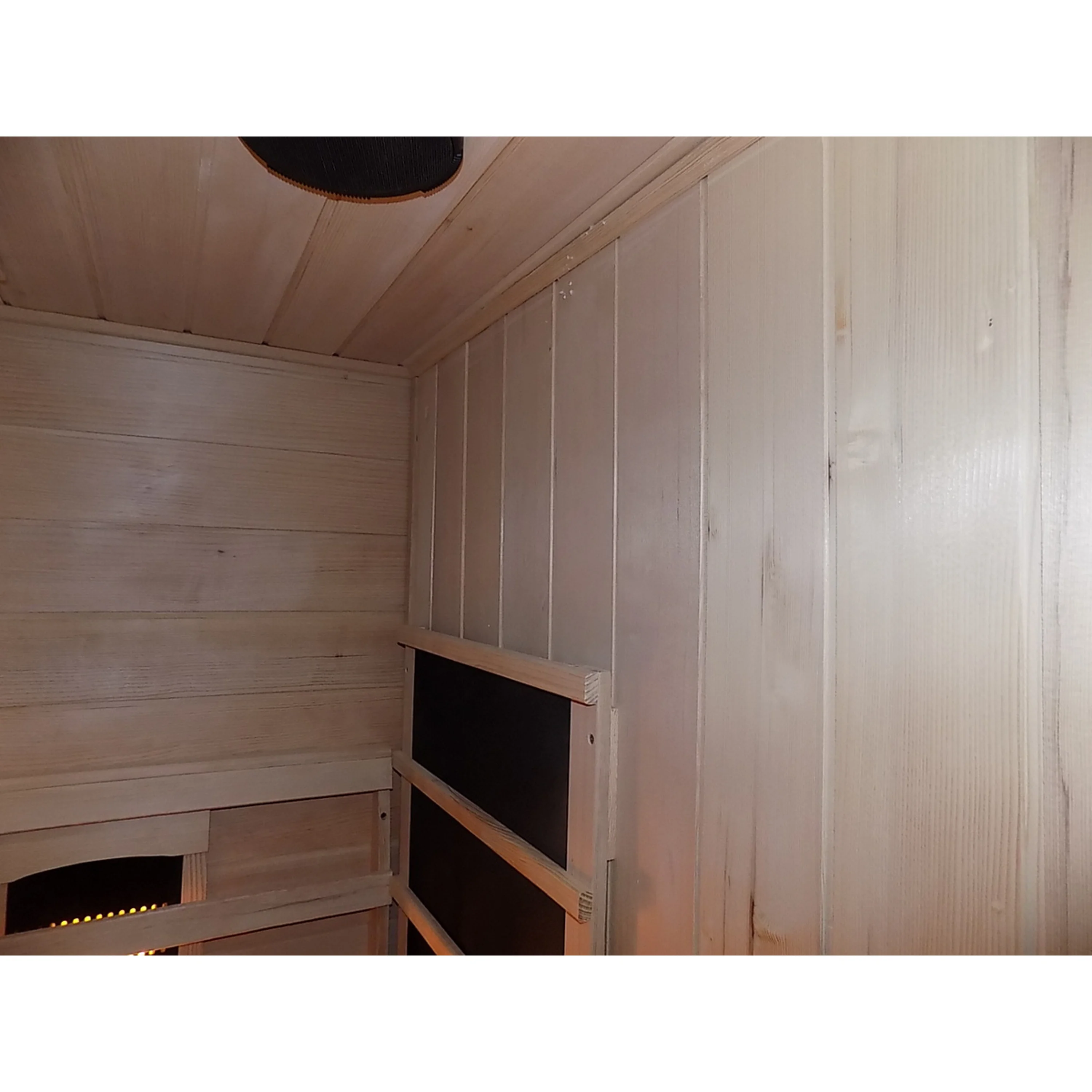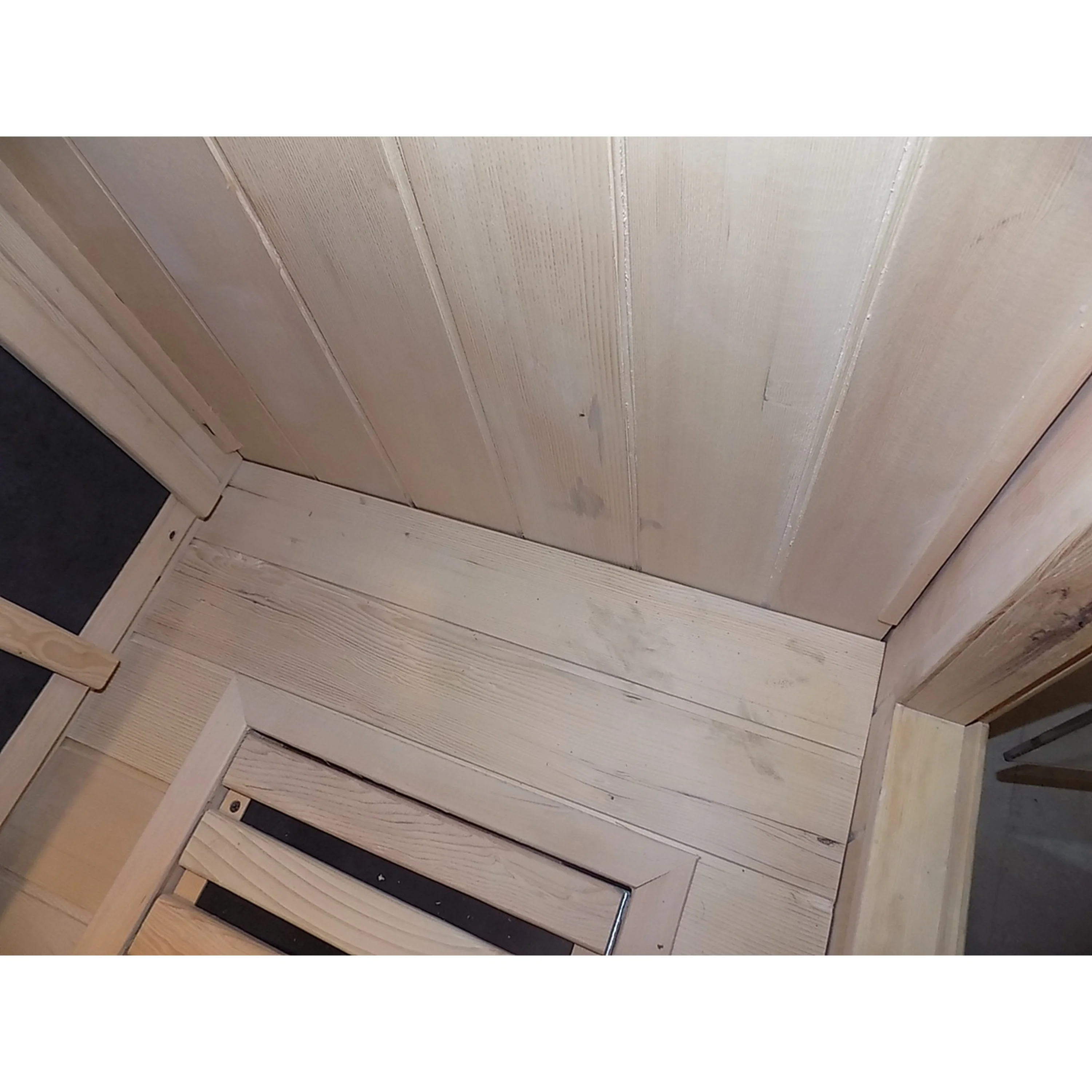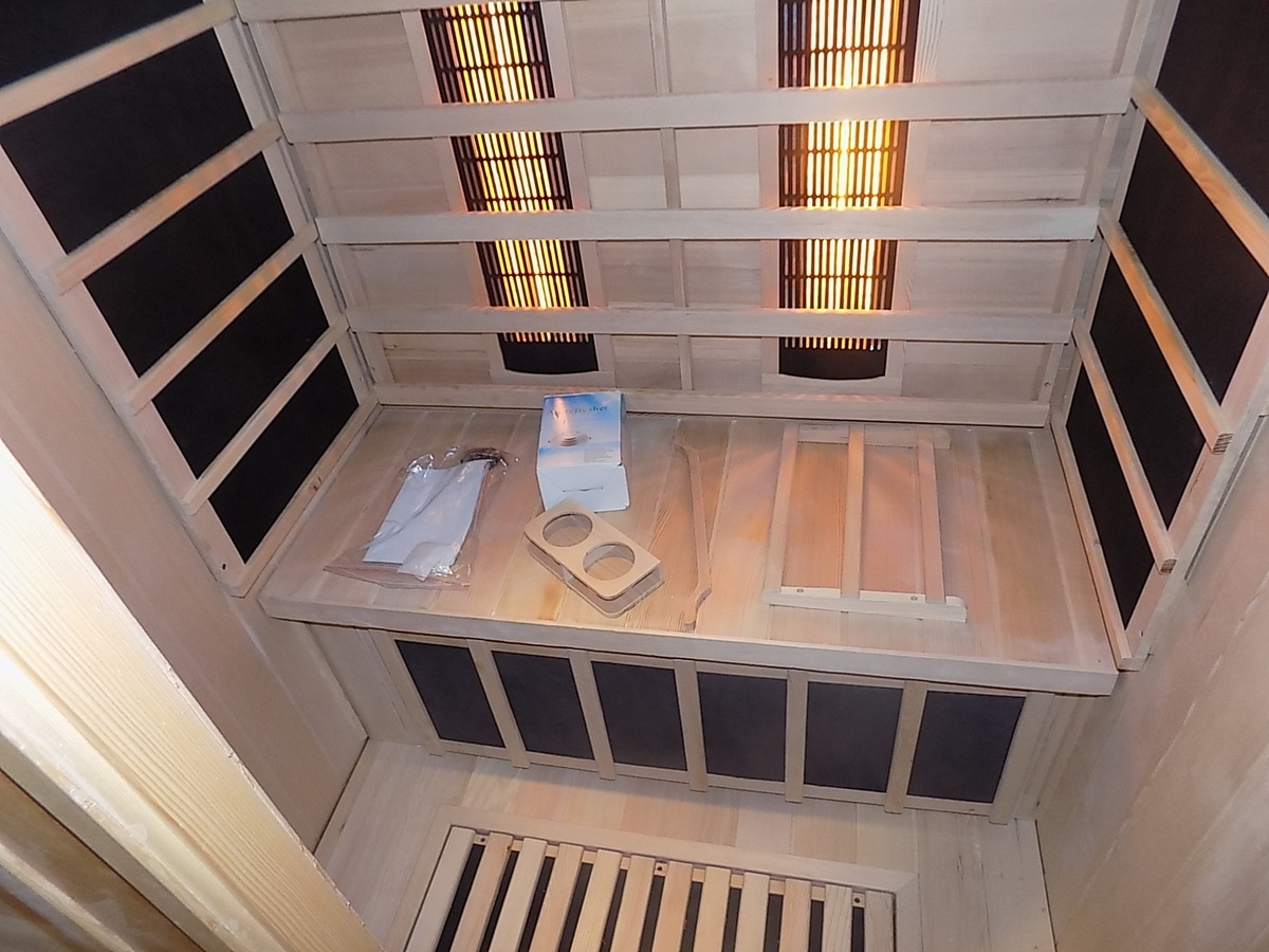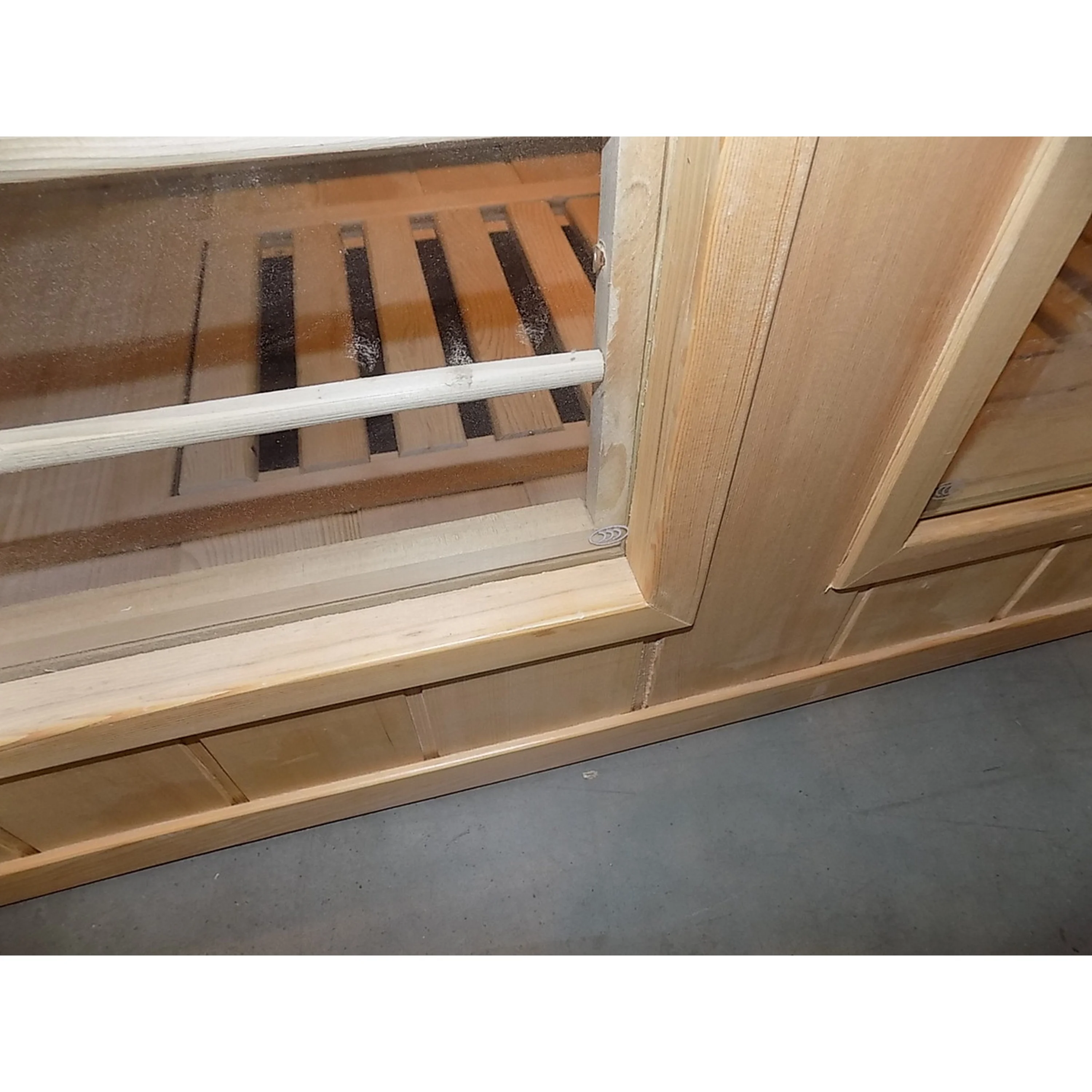 Infrasauna nese známky drobného poškození, přesto je stoprocentně funkční. Všechny uvedené nedostatky mají vliv pouze na vzhled, nikoliv na provoz. Infrasauna byla prověřena servisním technikem.