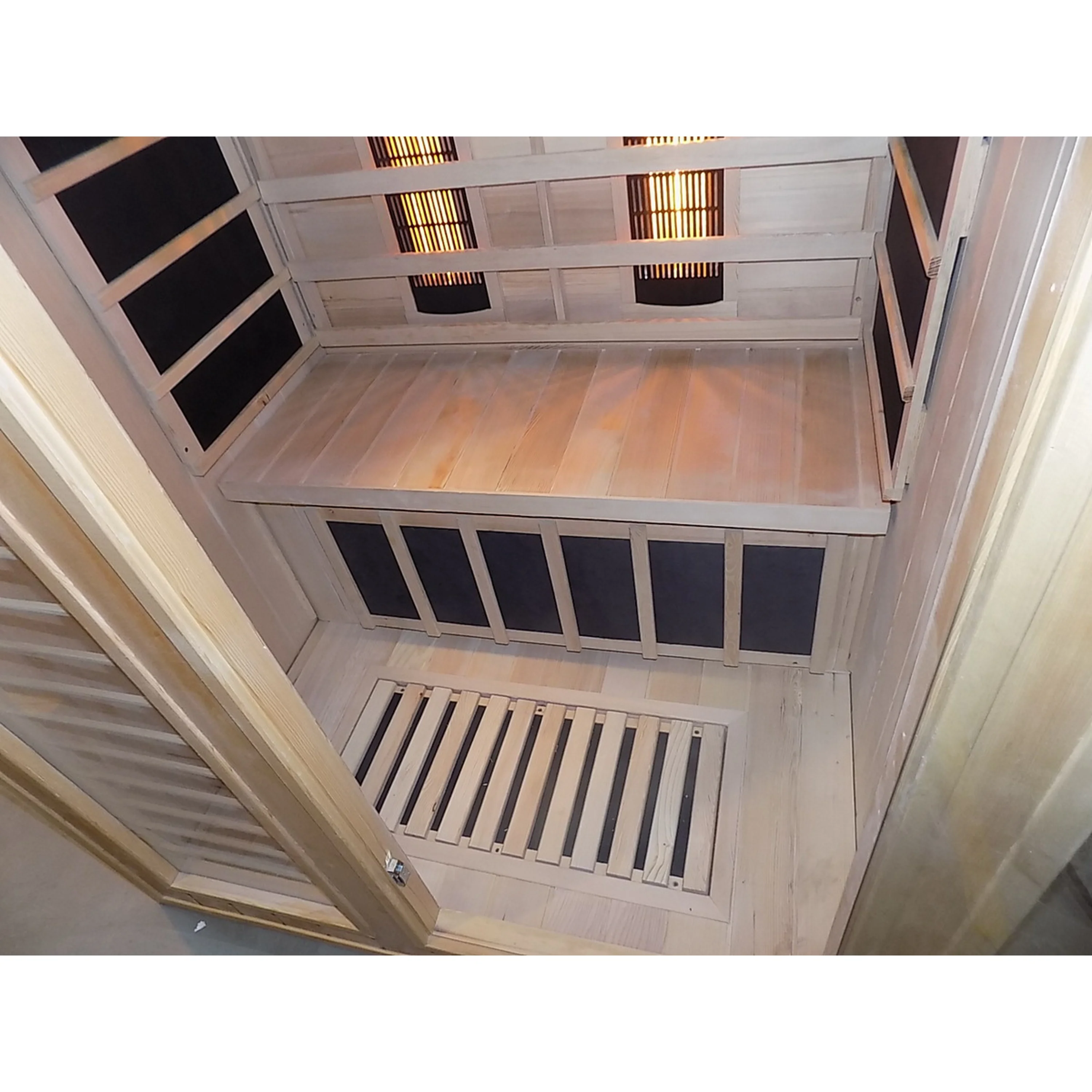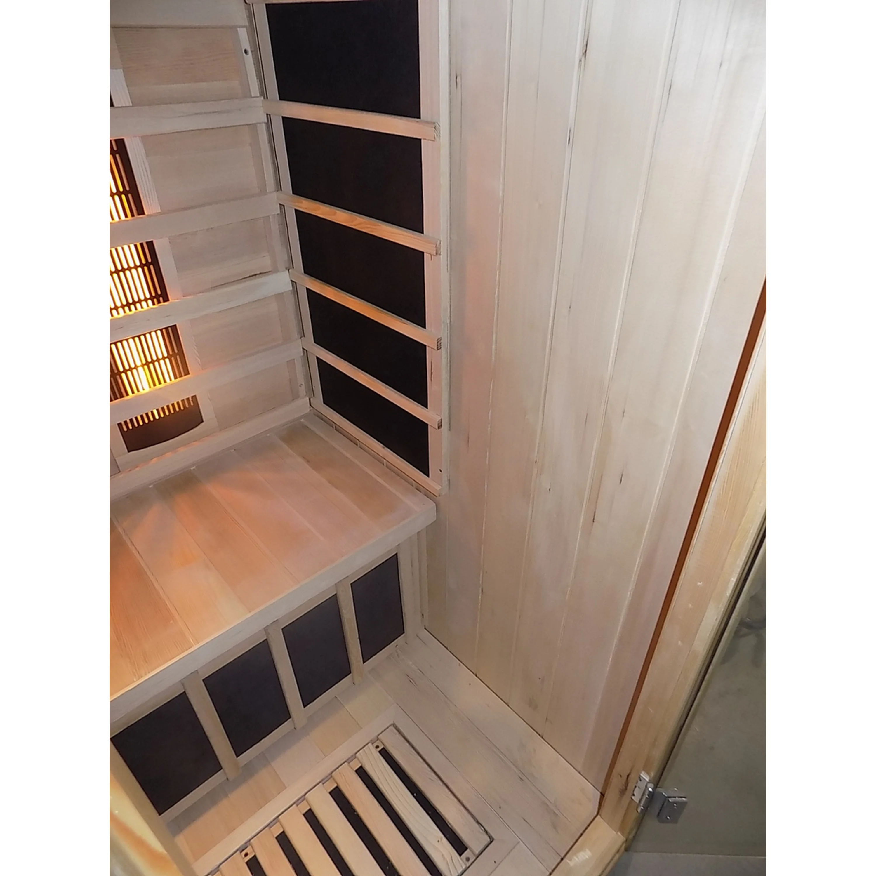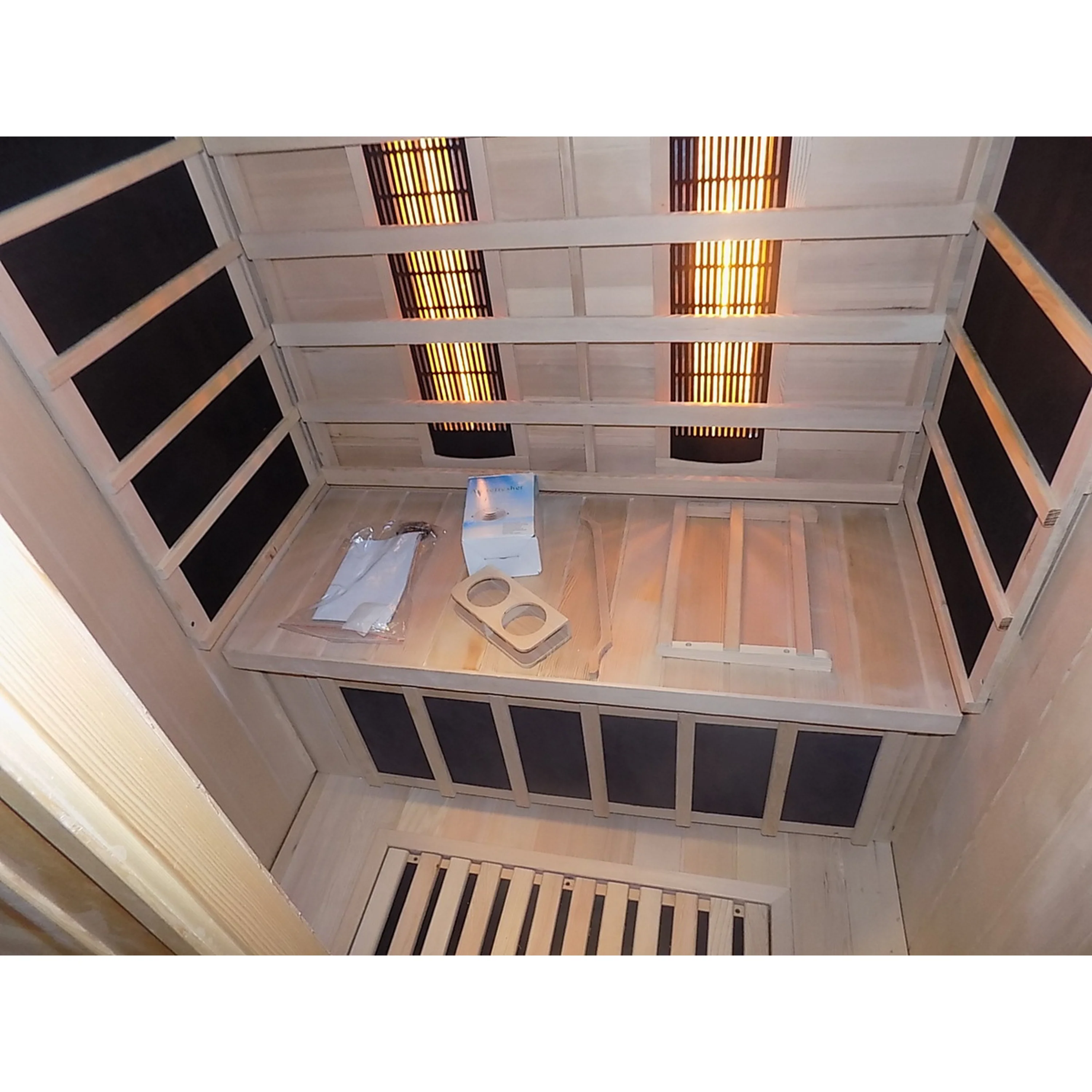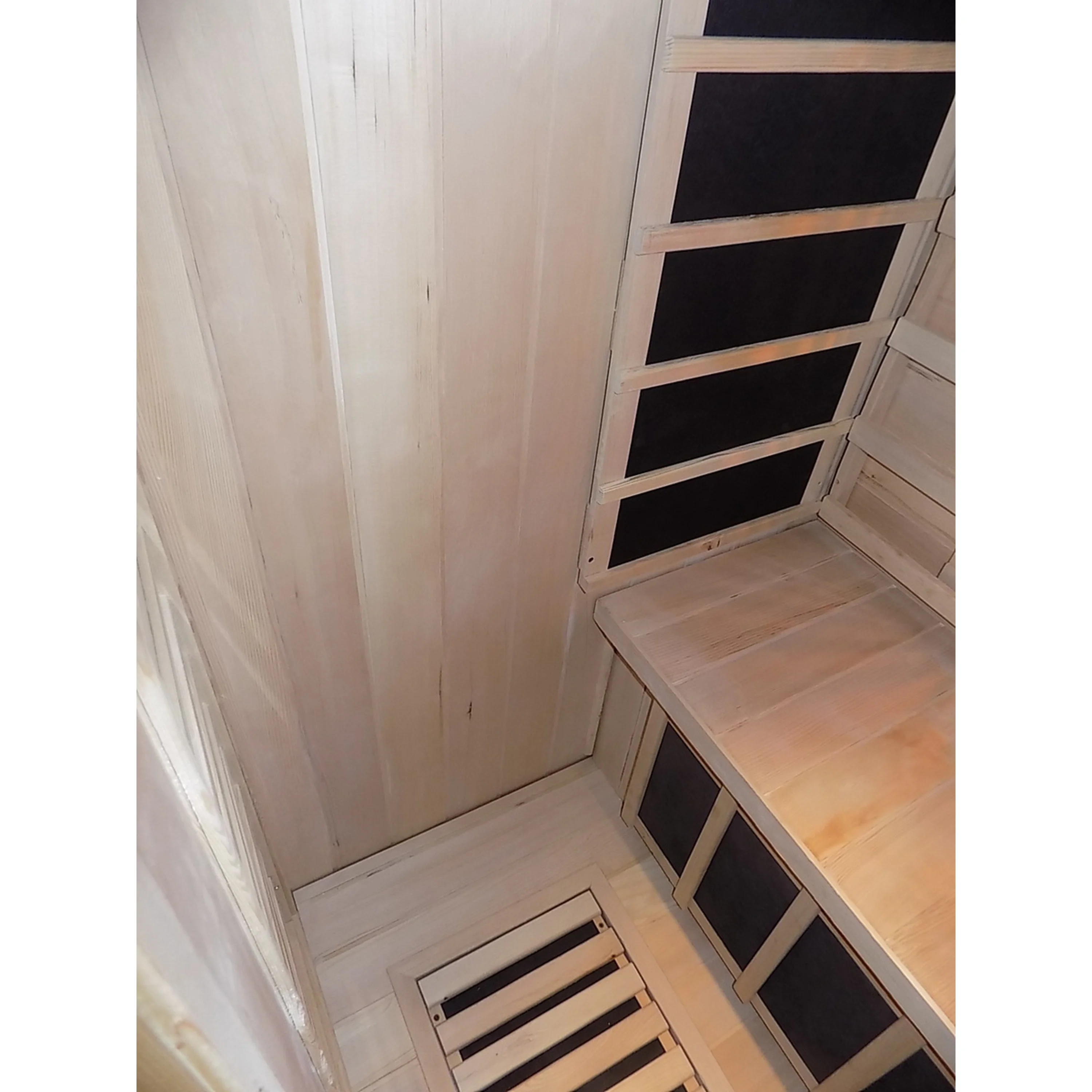 Infrasauna nese známky drobného poškození, přesto je stoprocentně funkční. Všechny uvedené nedostatky mají vliv pouze na vzhled, nikoliv na provoz. Infrasauna byla prověřena servisním technikem.