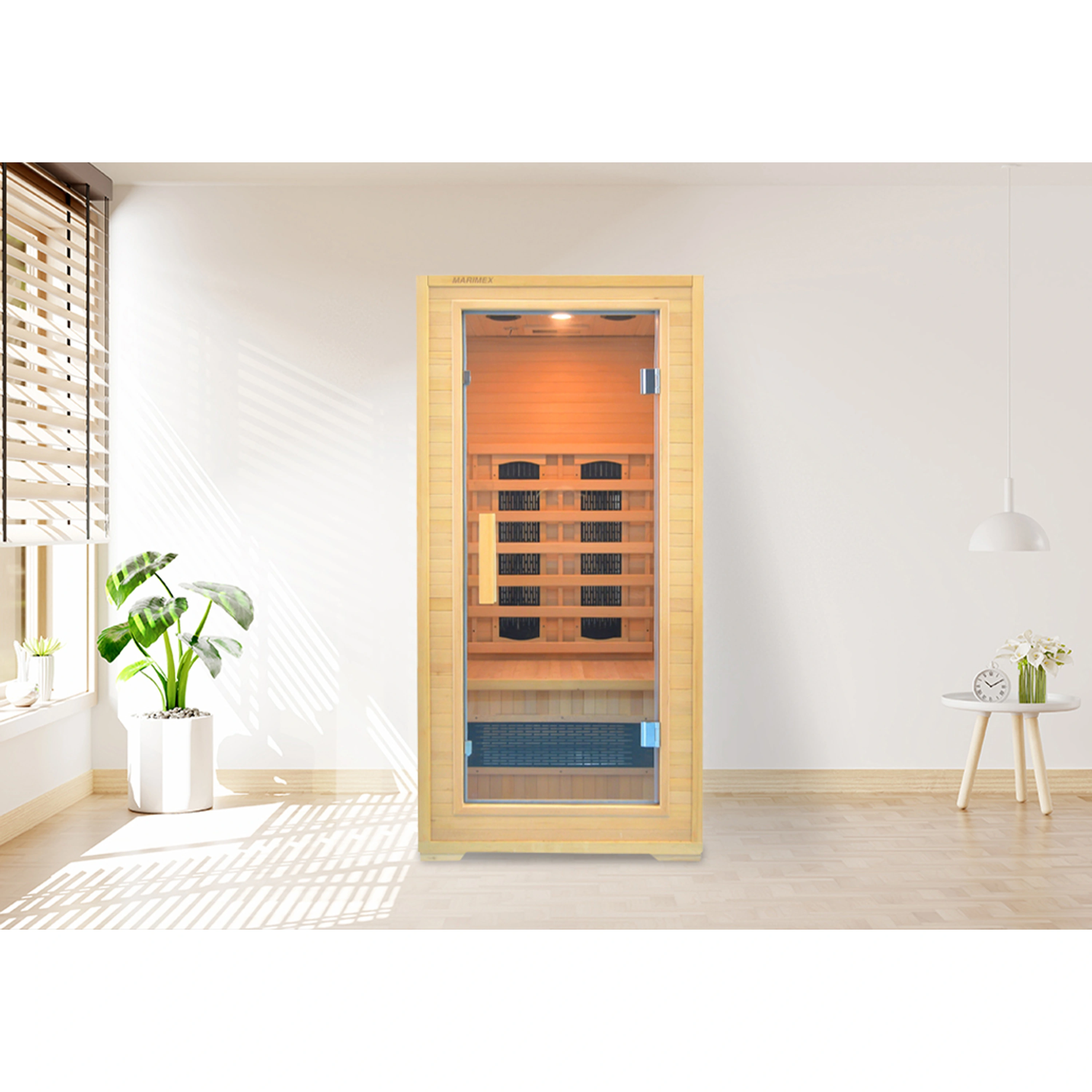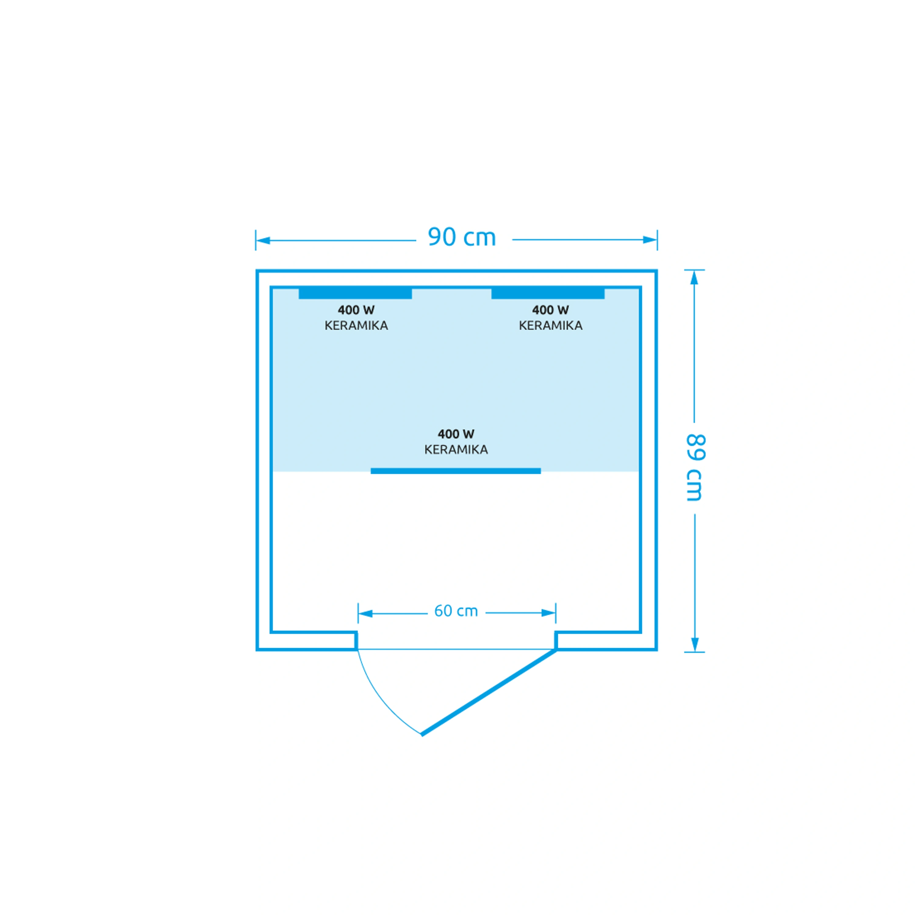 V infrasauně jsou rozmístěna 3 keramická topidla. Keramická topidla mají vyšší povrchovou teplotu a prohřívají tělo lokálně.