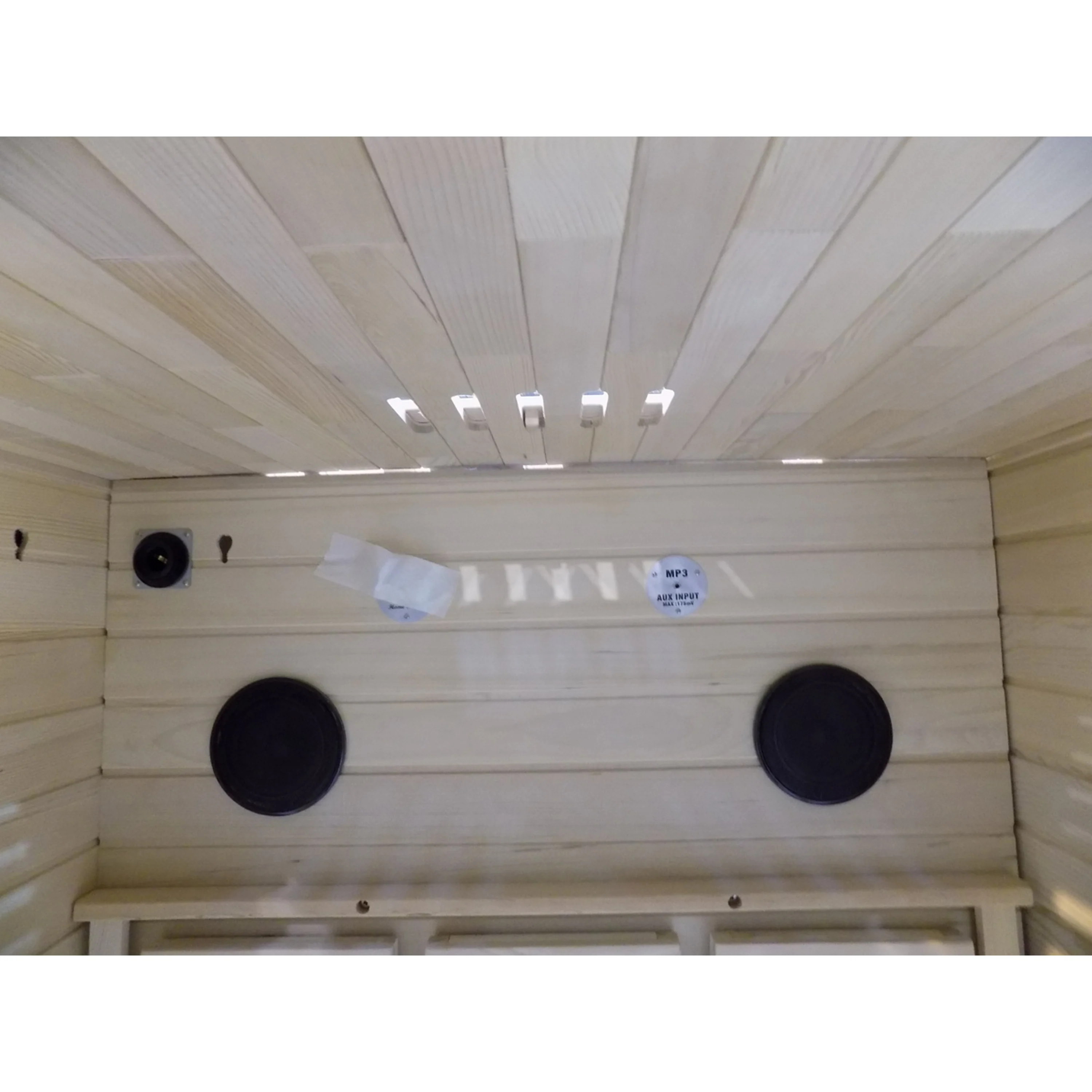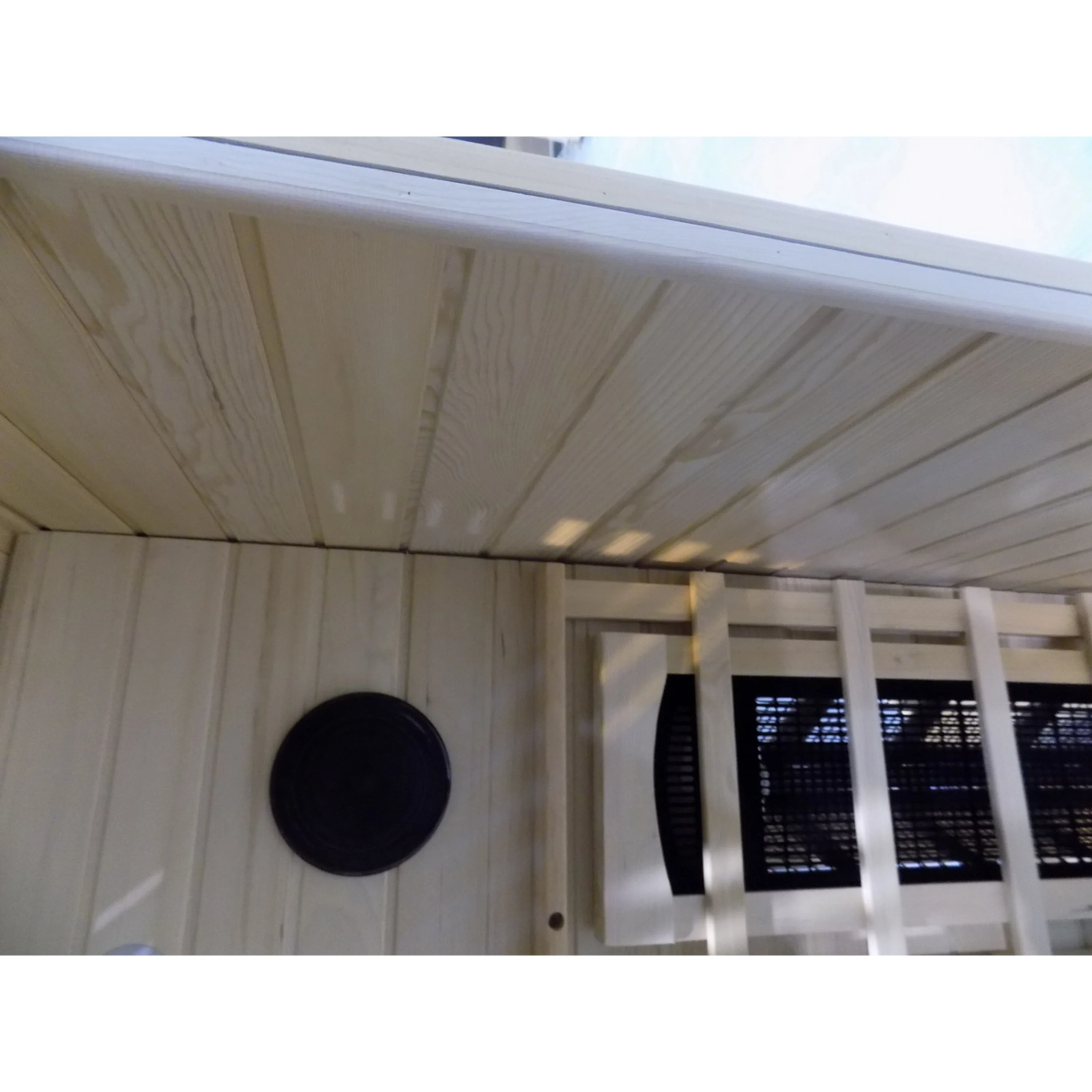 Infrasauna nese známky drobného poškození (oděrky, zašpinění), jinak je stoprocentně funkční. Všechny uvedené nedostatky mají vliv pouze na vzhled, nikoliv na provoz. Infrasauna byla prověřena servisním technikem.