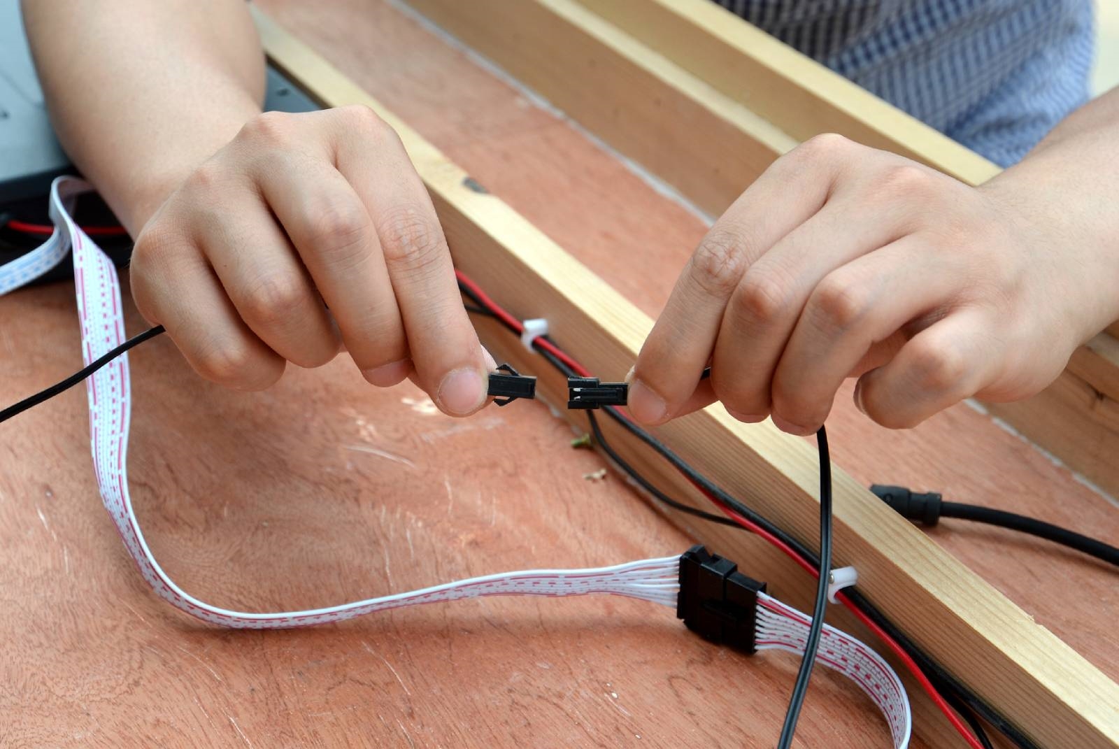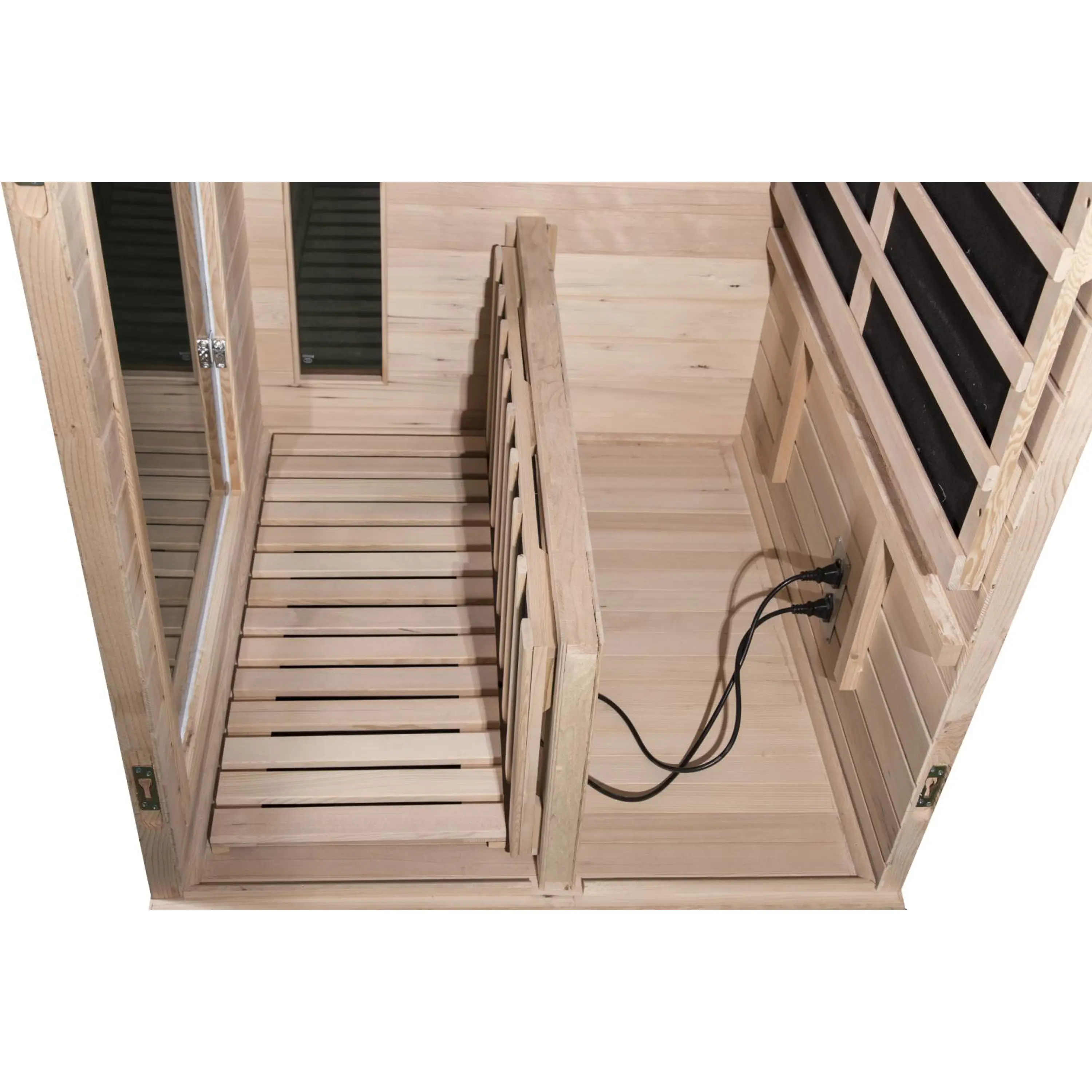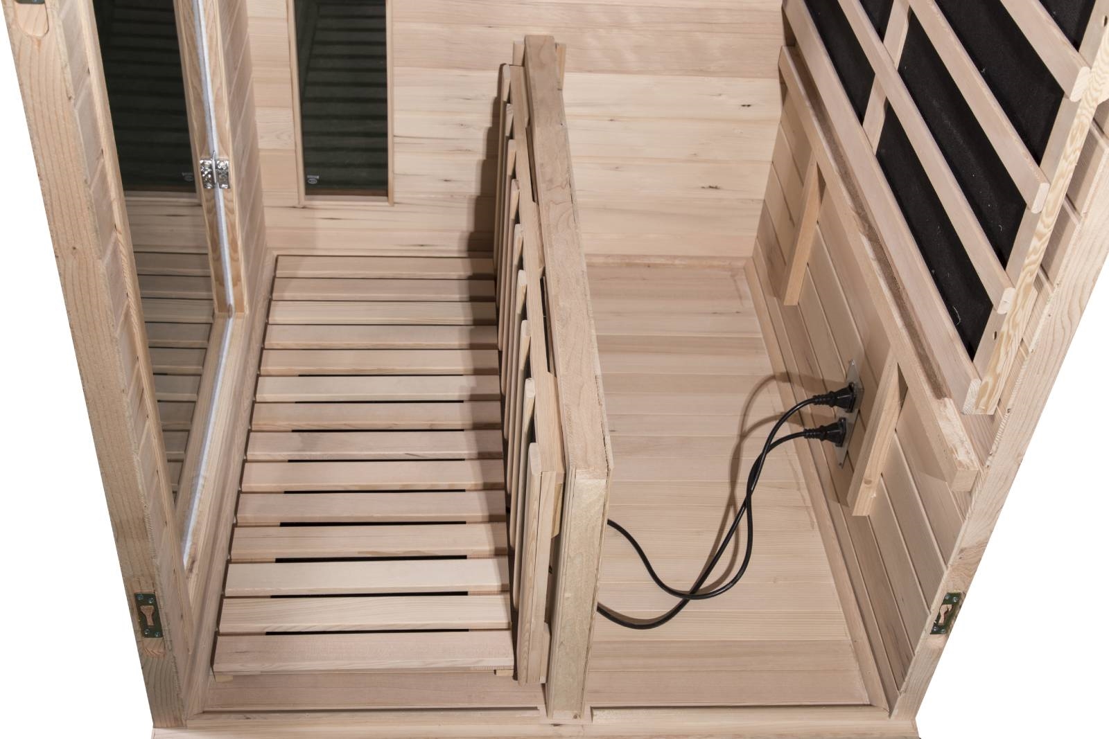 Montáž infrasauny je rychlá a jednoduchá. K přichycení jednotlivých částí se používají kufrové spony, čepy nebo klasické šrouby. Elektroinstalace je již namontovaná od výrobce, pouze stačí propojit kabeláž pomocí zásuvek a konektorů. Vše je přehledně označené.