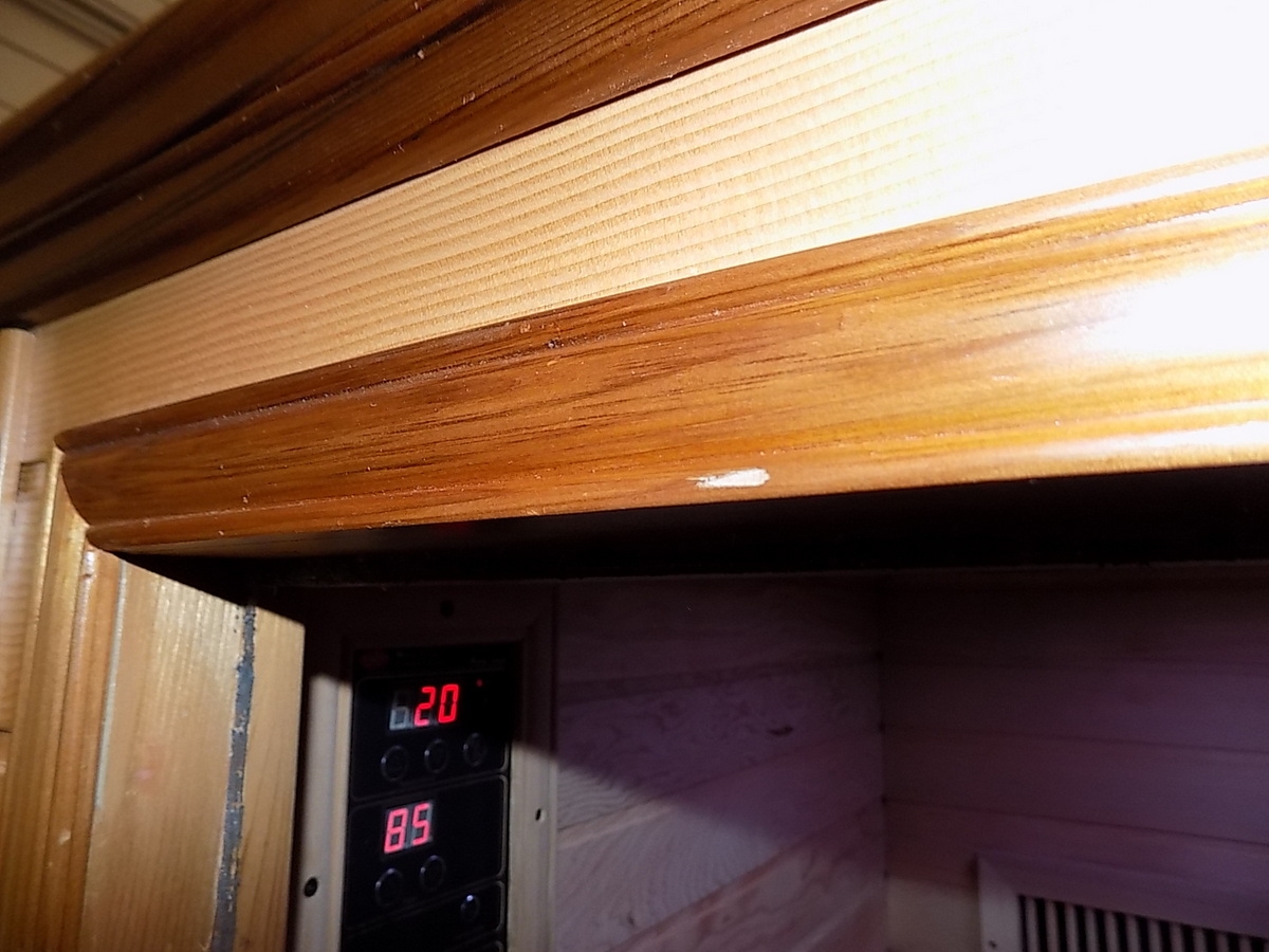 Infrasauna nese známky drobného poškození, přesto je stoprocentně funkční. Všechny uvedené nedostatky mají vliv pouze na vzhled, nikoliv na provoz. Infrasauna byla prověřena servisním technikem.
