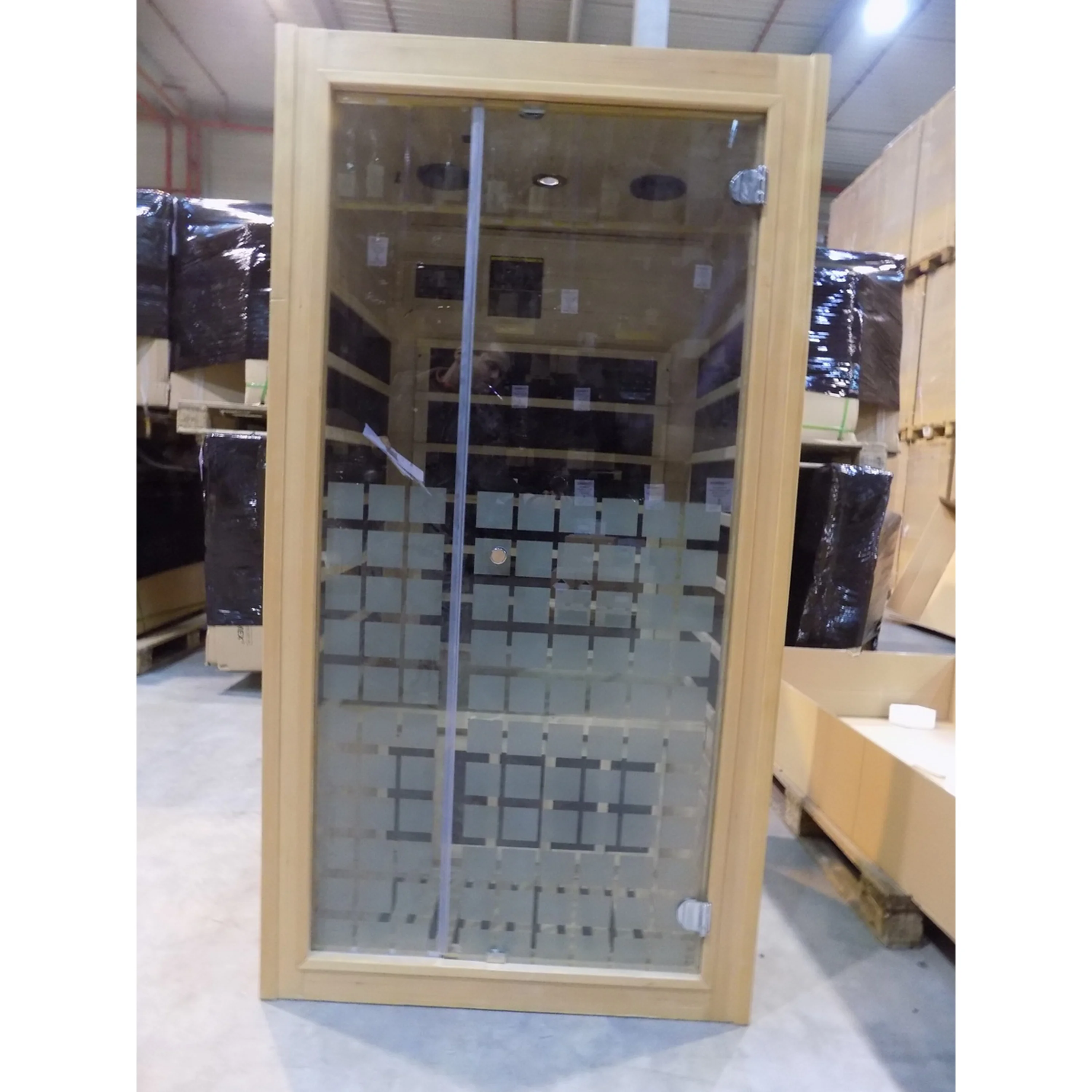 U infrasauny nesedí stop a nesedí lišty ve vnitřní přední stěně. Infrasauna nese také známky drobného poškození (oděrky, zašpinění), přesto je stoprocentně funkční. Všechny uvedené nedostatky mají vliv pouze na vzhled, nikoliv na provoz. Infrasauna byla prověřena servisním technikem.