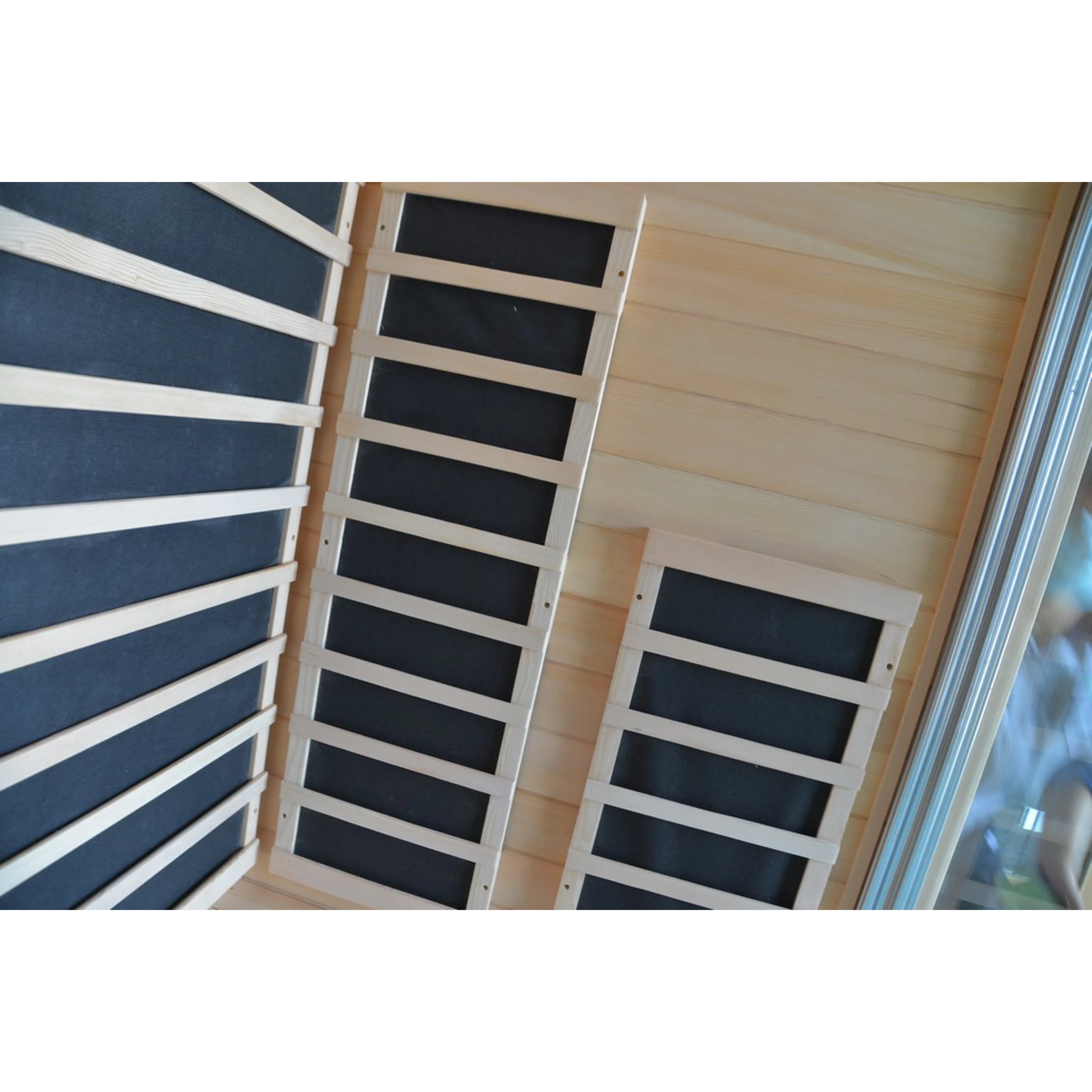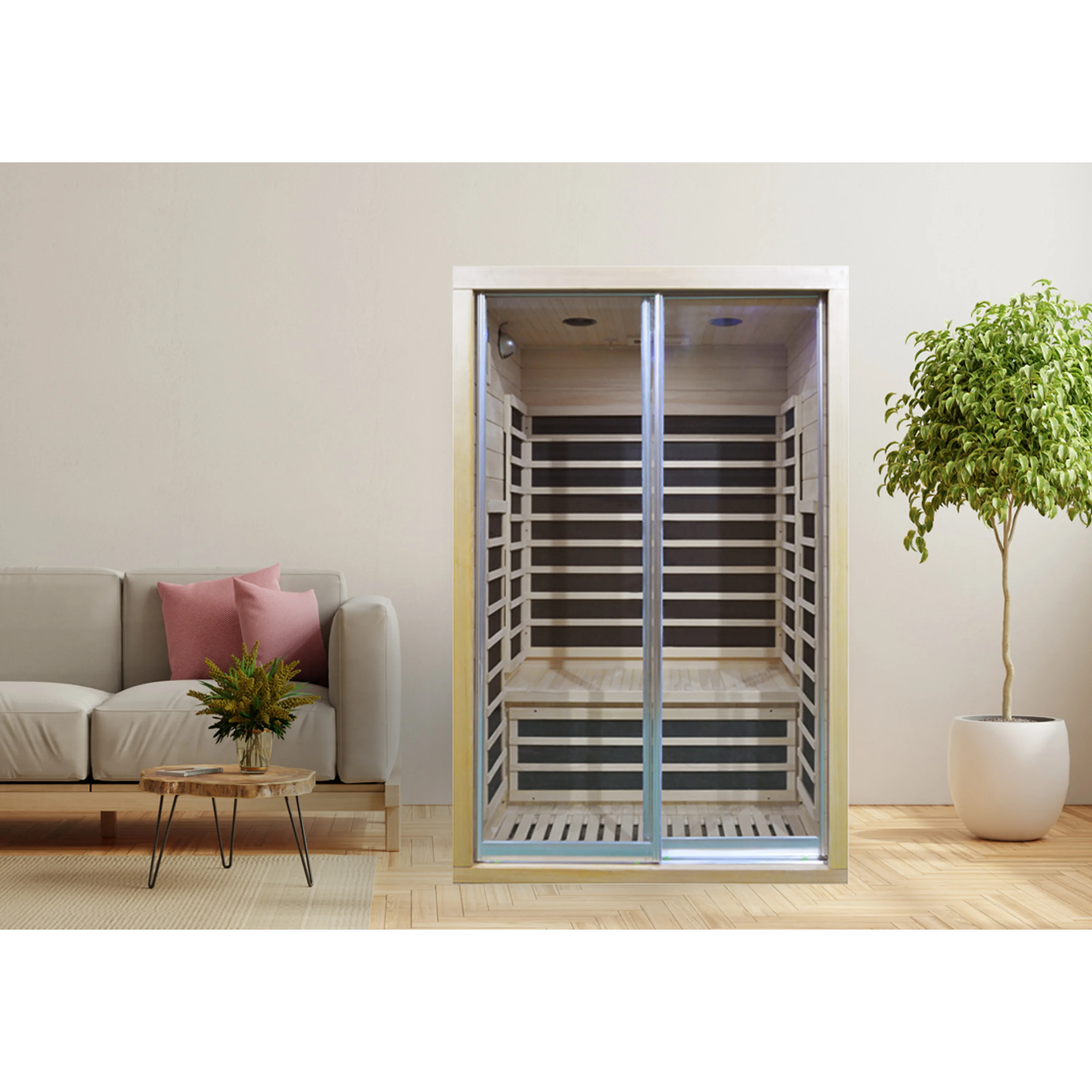 Infrasauna Marimex Trendy 2001 L se díky svému designu hodí do každého interiéru. Při výrobě bylo použito kvalitního dřeva kanadského jedlovce - hemlocku. Infrasauna Marimex Trendy 2001 L umožňuje vychutnat kouzlo saunování až dvěma osobám. Malé rozměry dovolují infrasaunu umístit v rodinném domě i prostornějším bytě. Skleněné dveře umožňují pohodlný výhled po okolí sauny. Díky posuvným dveřím lze infrasaunu umístit i do menšího prostoru. Součástí výbavy je ionizér a rádio/mp3 přehrávač. Tato infrasauna obsahuje karbonové podlahové topidlo.