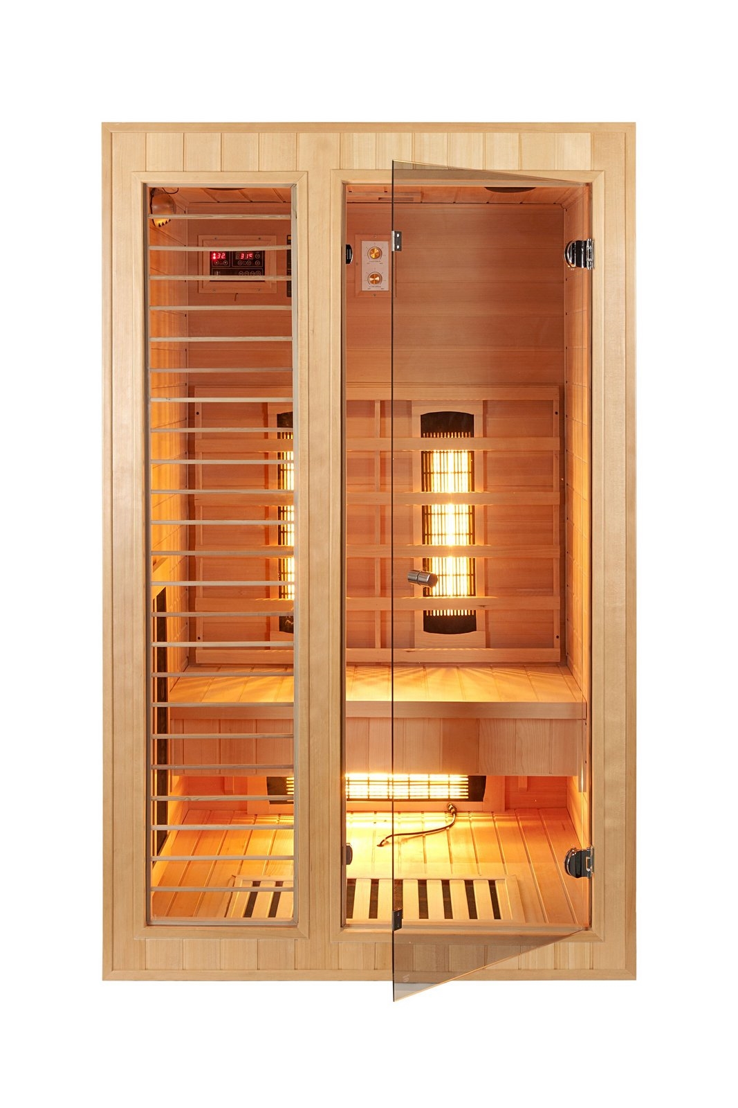 V infrasauně jsou rozmístěna 2 keramická topidla, která pracují s povrchovou teplotou 250 až 300 stupňů Celsia, dále 3 Red Light topidla, které pracují s povrchovou teplotou 0 až 400 stupňů Celsia a jedno karbonové topidlo na podlaze. Teplotu Red Light topidel lze manuálně regulovat. Ve srovnání s karbonovými se keramické zářiče zahřejí velice rychle. Nevýhodou může být vyšší spotřeba, ale vždy záleží na typu infrasauny. Pořizovací náklady tohoto typu zářičů jsou nižší, životnost je cca 8 000 hodin. Při běžném saunování (3x týdně 45 min) vydrží cca 60 let. Infrasauna má podlahové topidlo.