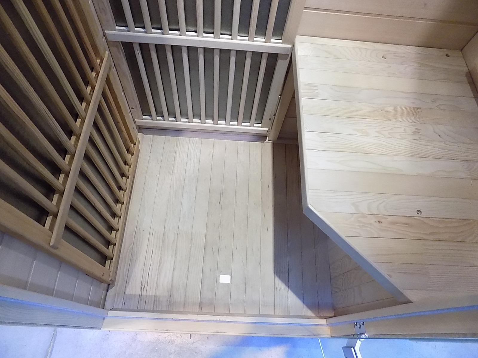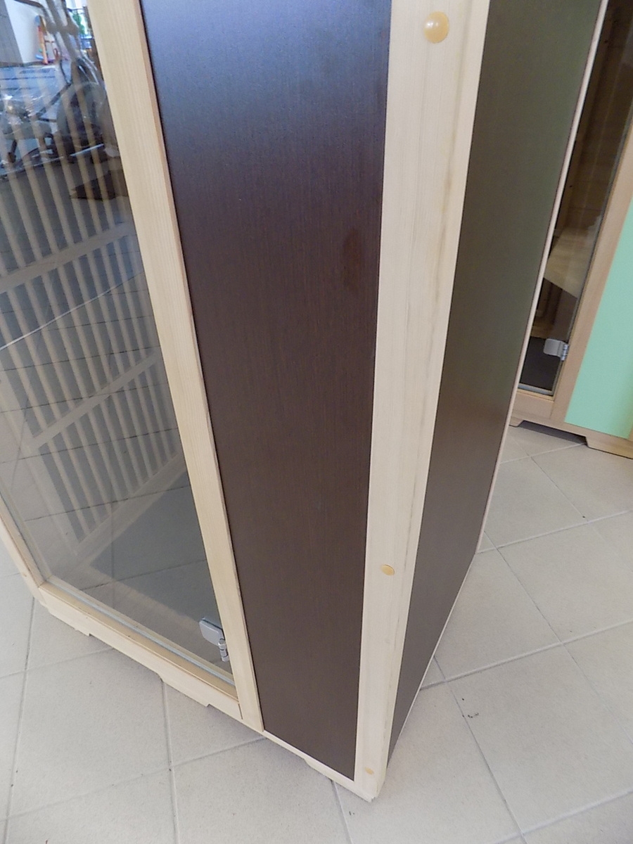 Infrasauna nese známky drobného poškození, přesto je stoprocentně funkční. Všechny uvedené nedostatky mají vliv pouze na vzhled, nikoliv na provoz. Infrasauna byla prověřena servisním technikem.