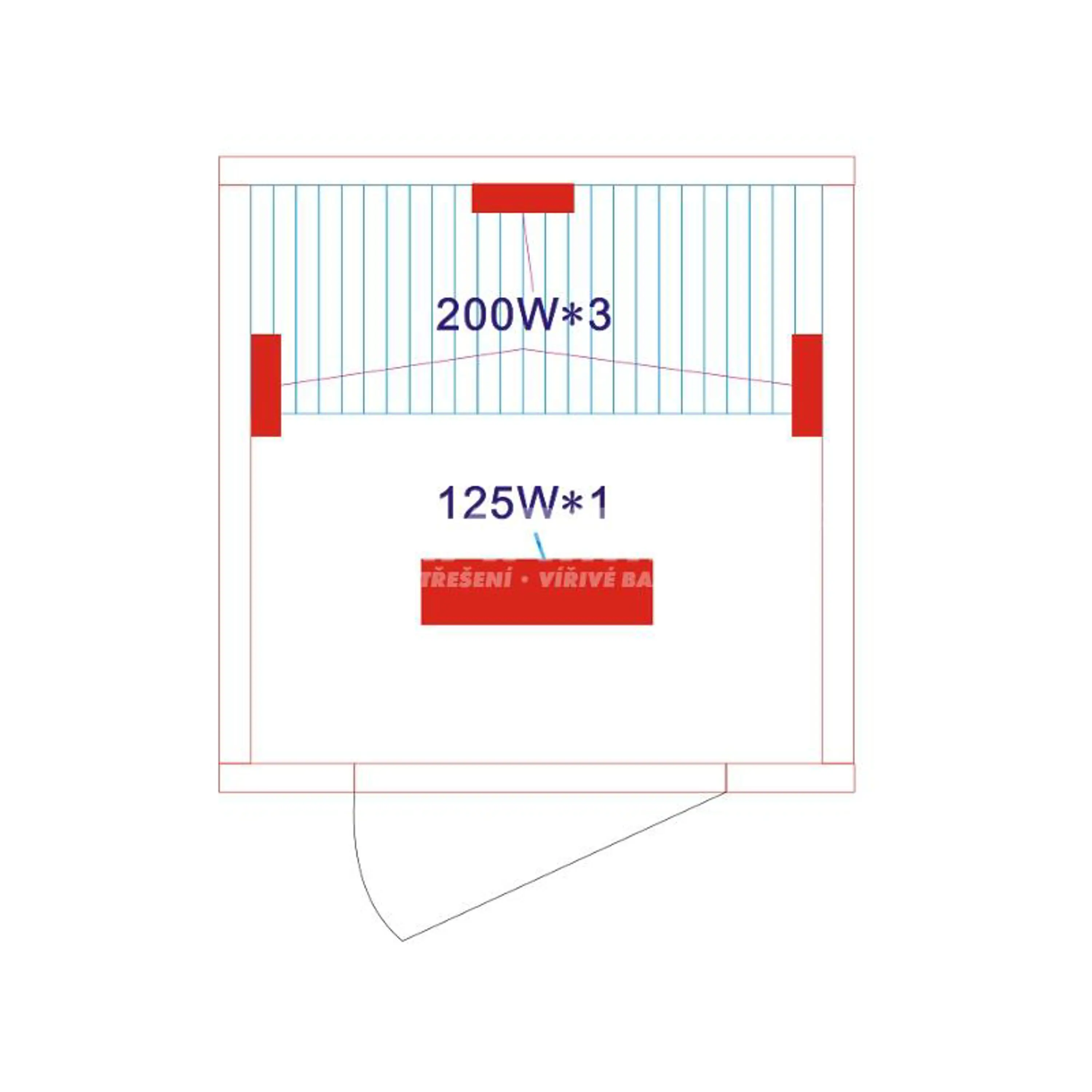 V infrasauně jsou rozmístěny čtyři karbonová topidla. Ve srovnání s jinými typy karbonové zářiče tvoří tenké pásy, které vyvinou povrchovou teplotu 70 - 170 stupňů Celsia. Karbonové zářiče dosáhnou maximální teploty pomaleji, naproti tomu mají delší životnost (při saunování 3x týdně cca 90 let). Tento typ zářičů prohřeje lidské tělo rovnoměrně a do hloubky.