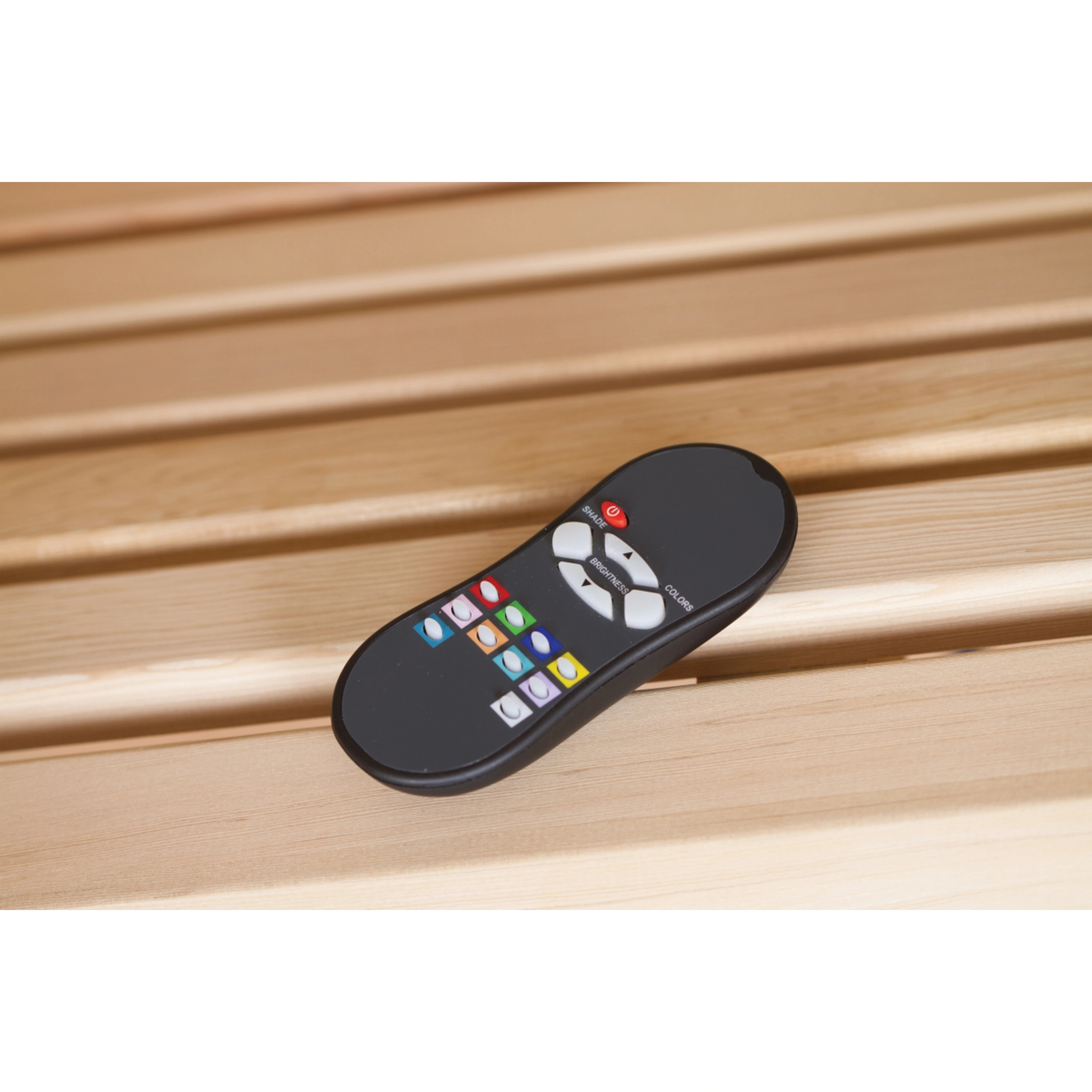 ladí s designem a zároveň umožňují výhled saunované osoby po okolí. Součástí výbavy je ionizér, konektor pro rádio/mp3 přehrávač a zařízení pro světelnou terapii.