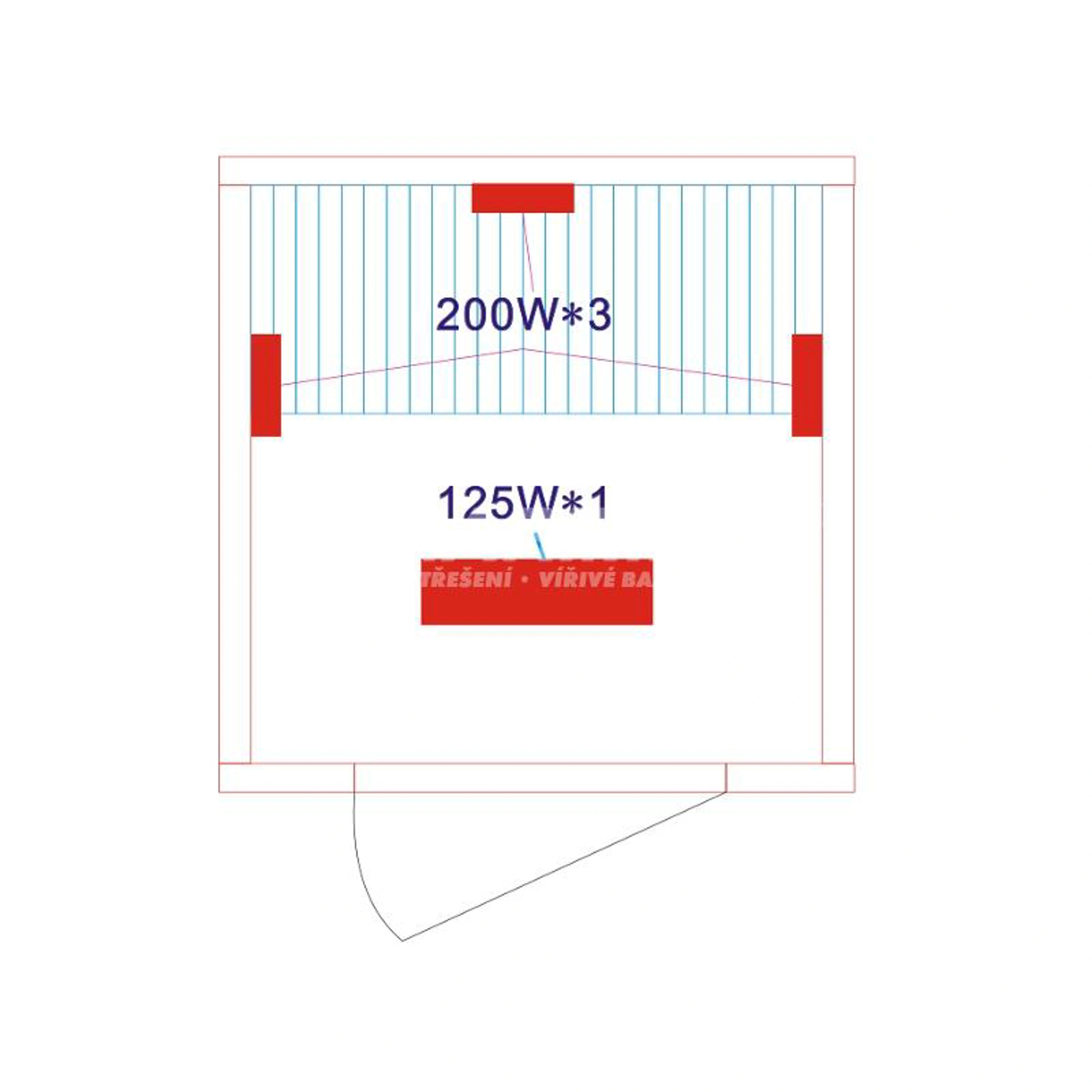 V infrasauně jsou rozmístěny čtyři karbonová topidla. Ve srovnání s