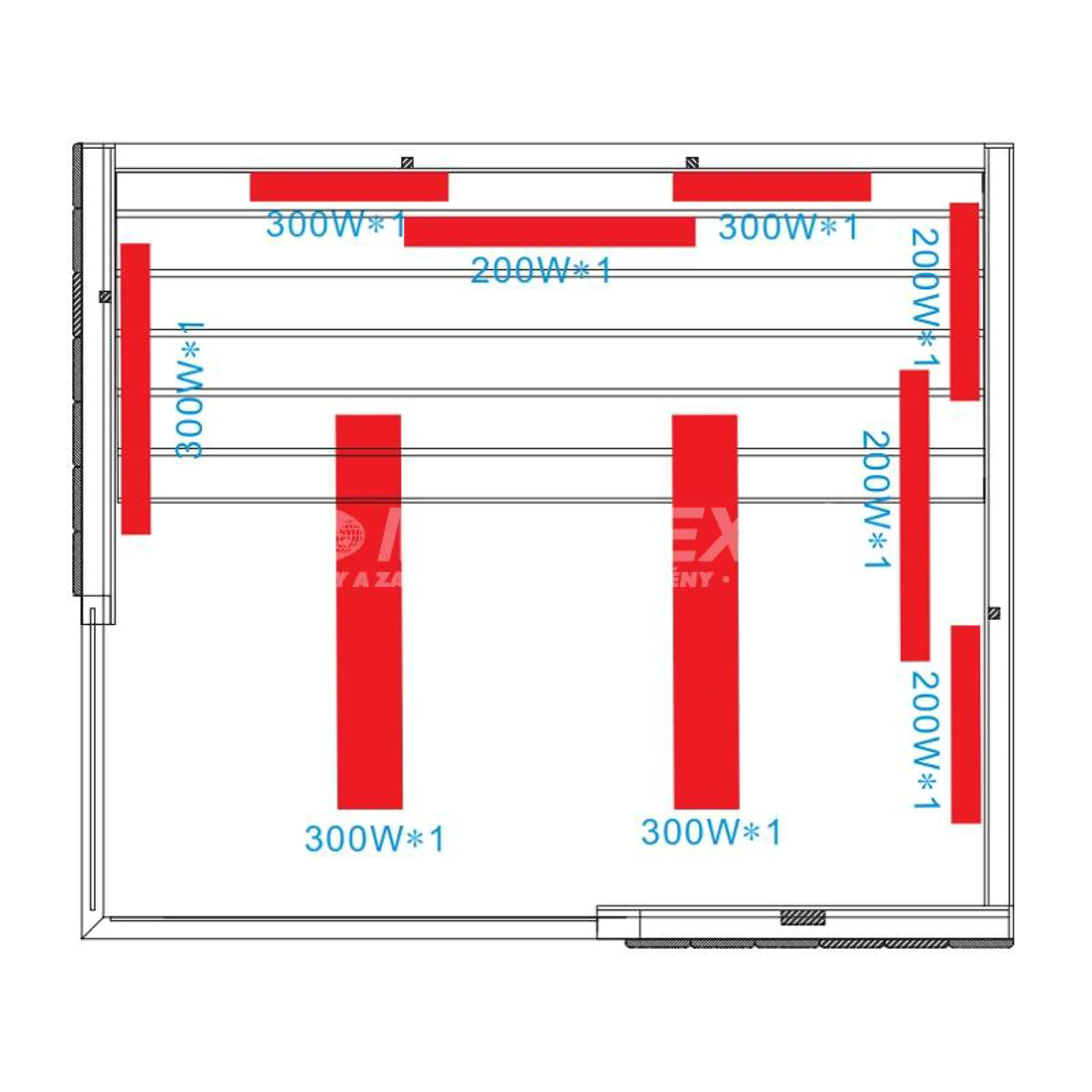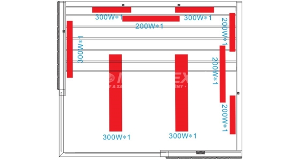 V infrasauně je rozmístěno devět karbonových topidel. Ve srovnání s jinými typy karbonové zářiče tvoří tenké pásy, které vyvinou povrchovou teplotu 70 - 170 stupňů Celsia. Karbonové zářiče dosáhnou maximální teploty pomaleji, naproti tomu mají delší životnost (při saunování 3x týdně cca 90 let). Tento typ zářičů prohřeje lidské tělo rovnoměrně a do hloubky.