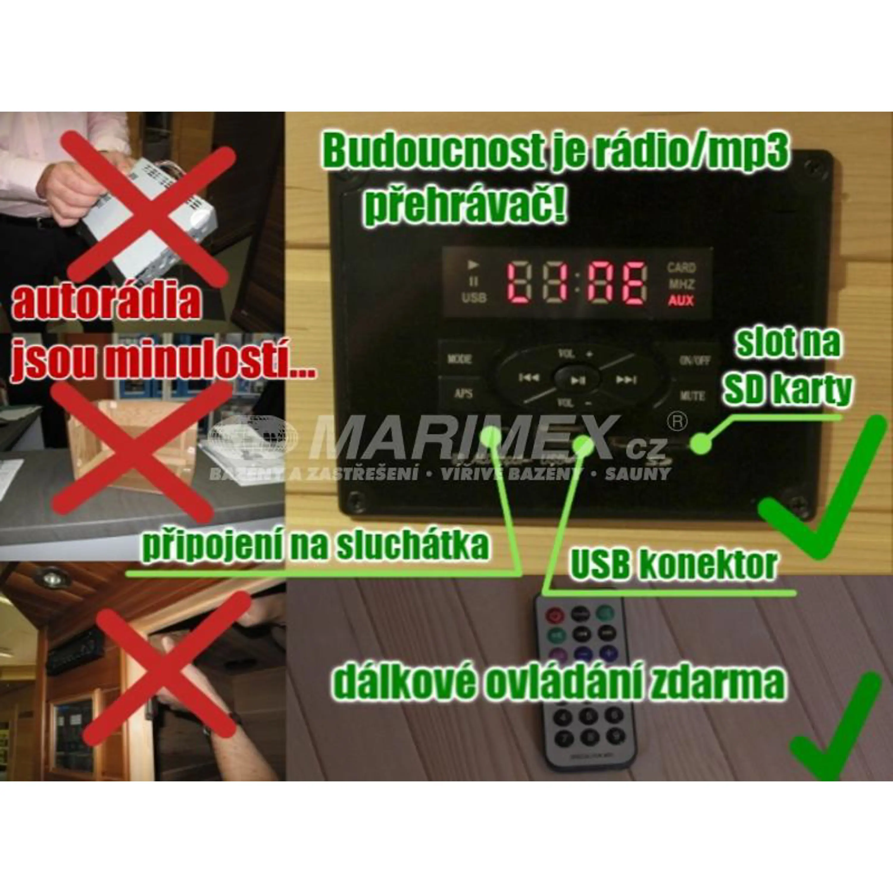 Infrasauna Marimex ELEGANT 3001 XL se díky svému designu hodí do každého interiéru. Při výrobě bylo použito kvalitního dřeva kanadského jedlovce - hemlocku. Infrasauna Marimex ELEGANT 3001 XL umožňuje vychutnat kouzlo saunování třem osobám najednou. Malé rozměry dovolují infrasaunu umístit v rodinném domě i prostornějším bytě. Skleněné dveře umožňují pohodlný výhled po okolí sauny. Součástí výbavy je ionizér a rádio/mp3 přehrávač.
