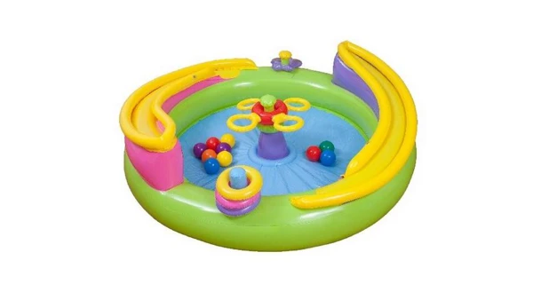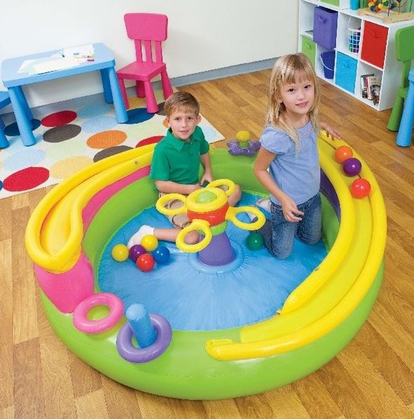 Nafukovací kolotoč je určený dětem od 3 do 6 let. Deset míčků o velikosti 8 cm a 3 nafukovací kroužky zaručují spoustu zábavy. Při výrobě byly splněny přísné bezpečnostní normy za použití vysoce kvalitních materiálů.