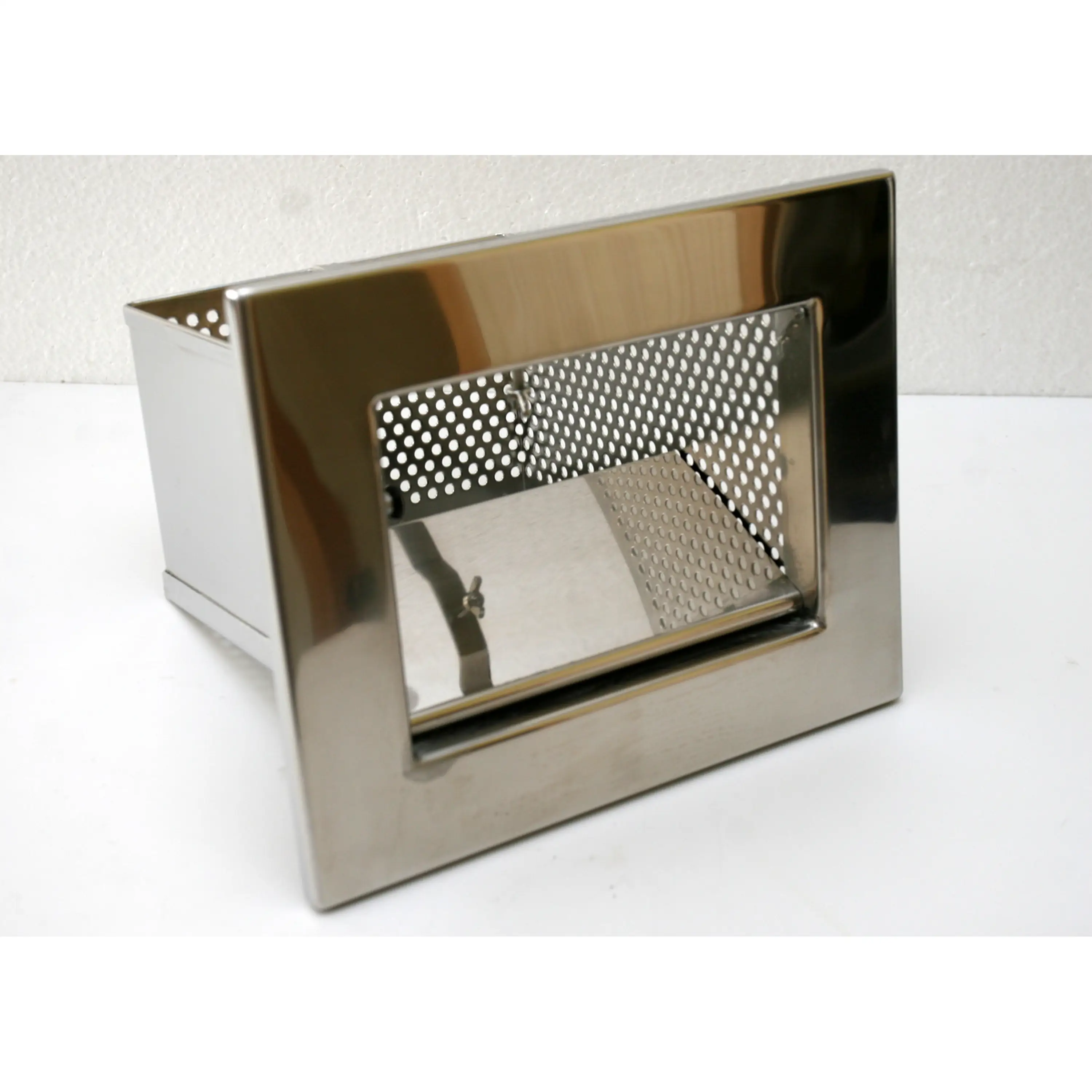 Košík ke skimmerům A-201 a A-202 z nerez. oceli AISI-316 (ČSN 17.346) s ozdobným čelním rámečkem.