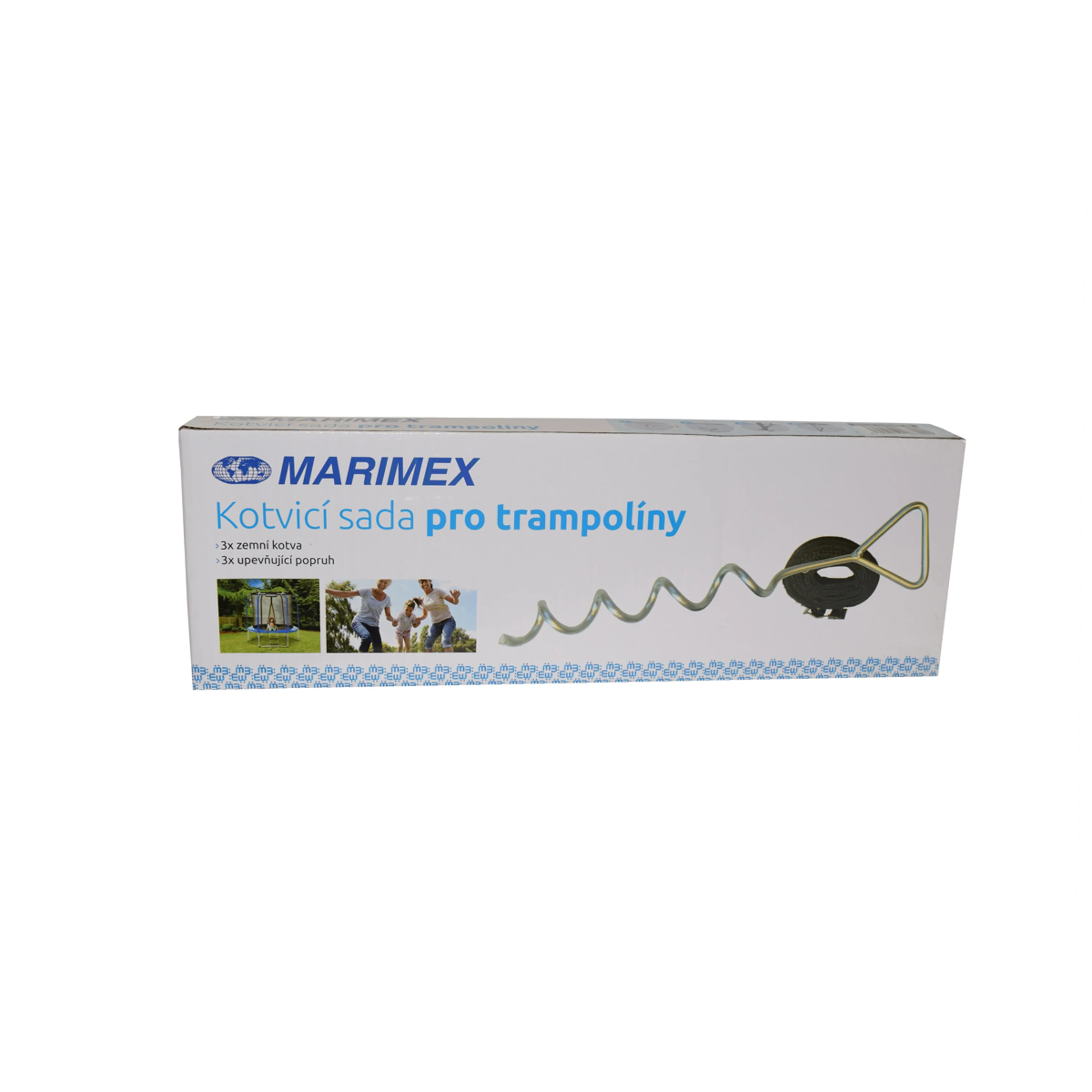 S kotvicí sadou je možné rychle a jednoduše připevnit trampolínu k zemi a zajistit tak její dokonalou stabilitu. Sada se skládá ze spojovacích pásů s ocelovými přezkami a bodáků s protihrotem. Po zajištění kotvicí sadou zamezíte pohybu i při silnějším větru. Sadu je možné použít ke zpevnění všech typů trampolín Marimex. Je nutné ji upevnit do zpevněného podkladu.