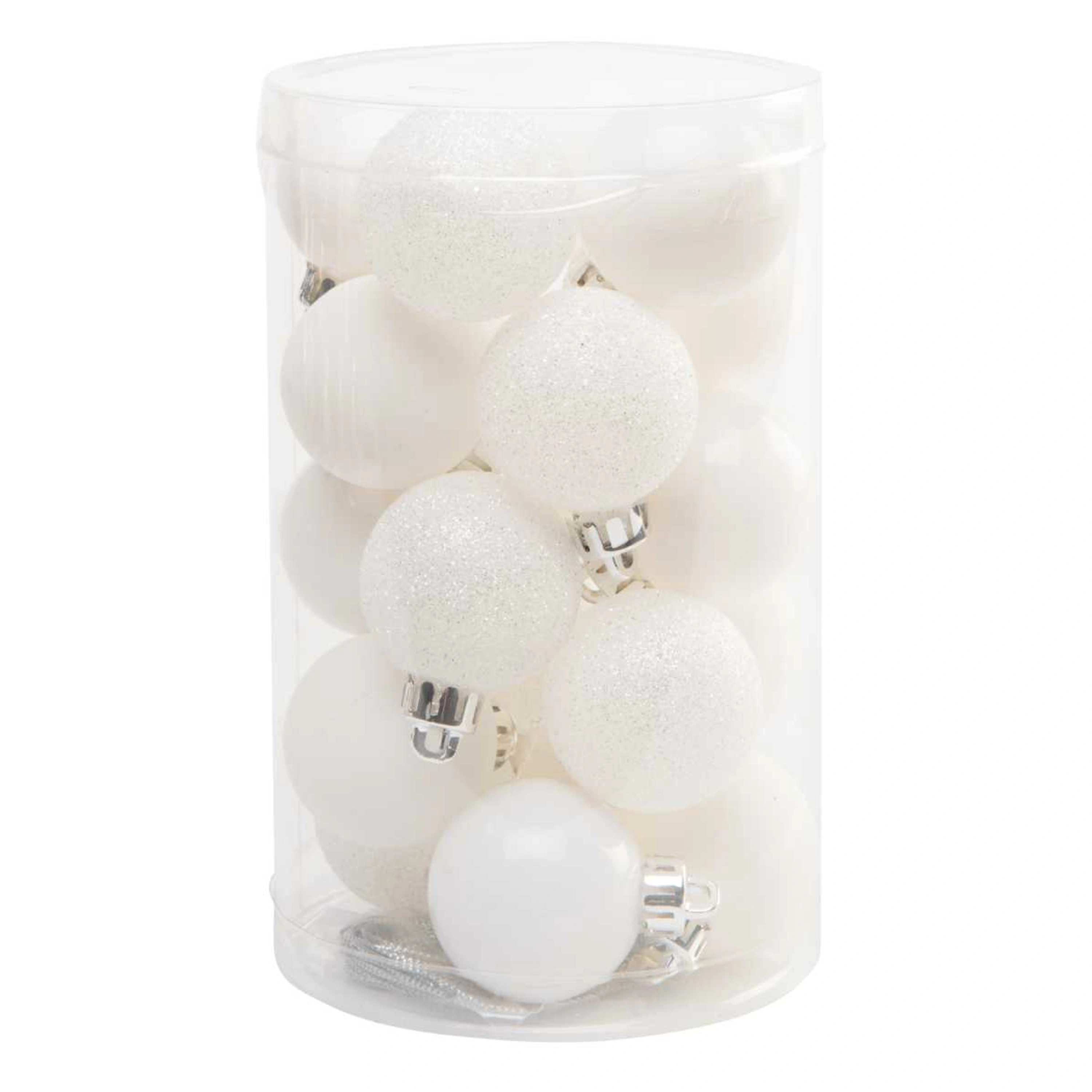Tento set obsahuje 20 kusů vánočních koulí v čistě bílé barvě.