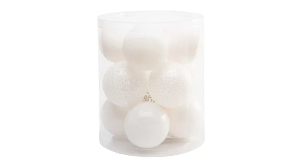 Tento set obsahuje 12 kusů vánočních koulí v bílé barvě.