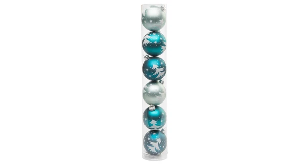 Obsahuje 2 ozdoby v královské modři, 2 světle modré a 2 jemně tyrkysové. S touto výraznou kombinací budou letošní Vánoce plné lesku a třpytu! Uchycení je hladké ve stříbrném provedení. Navíc díky kvalitnímu plastovému materiálu představuje tento set i velice praktickou dekoraci.
