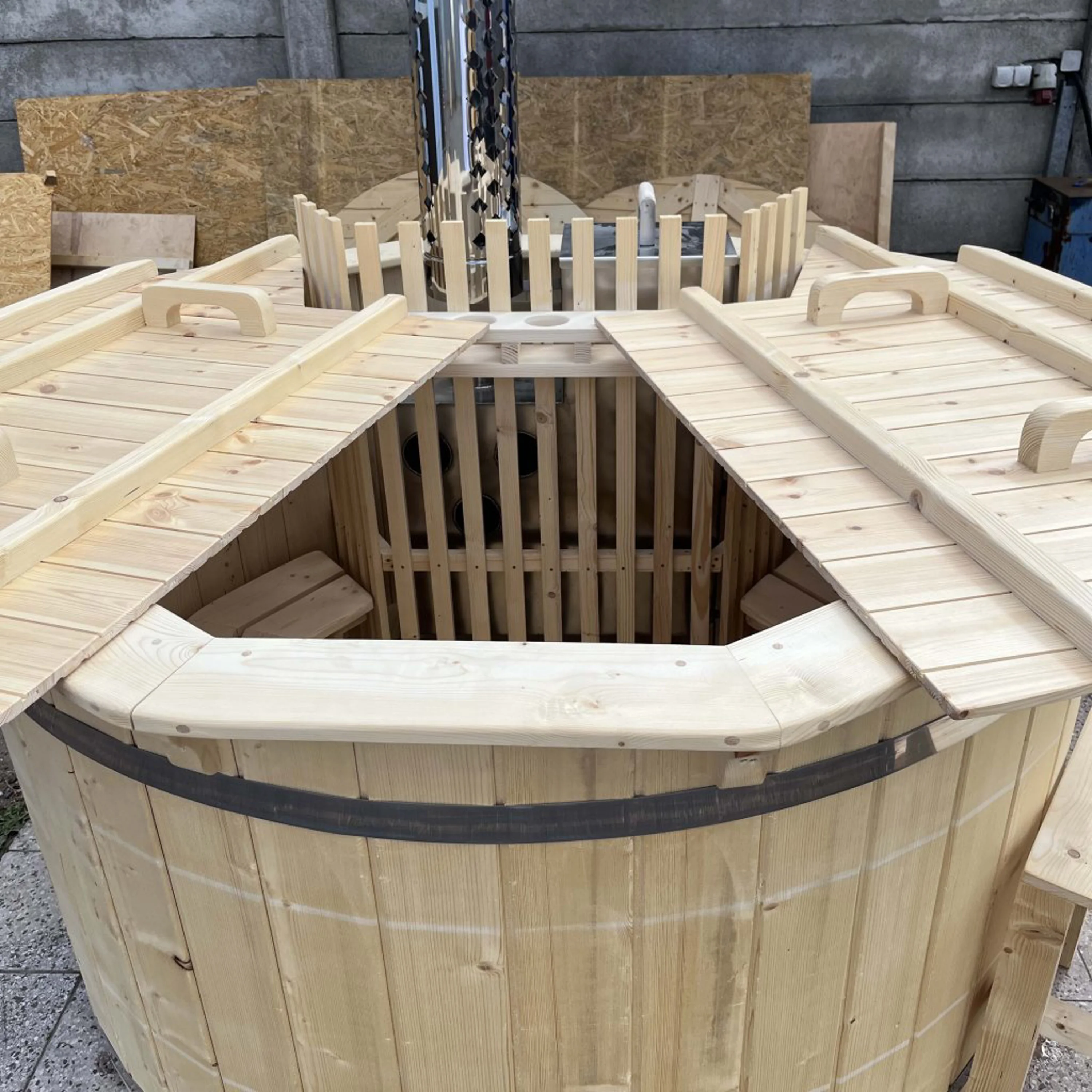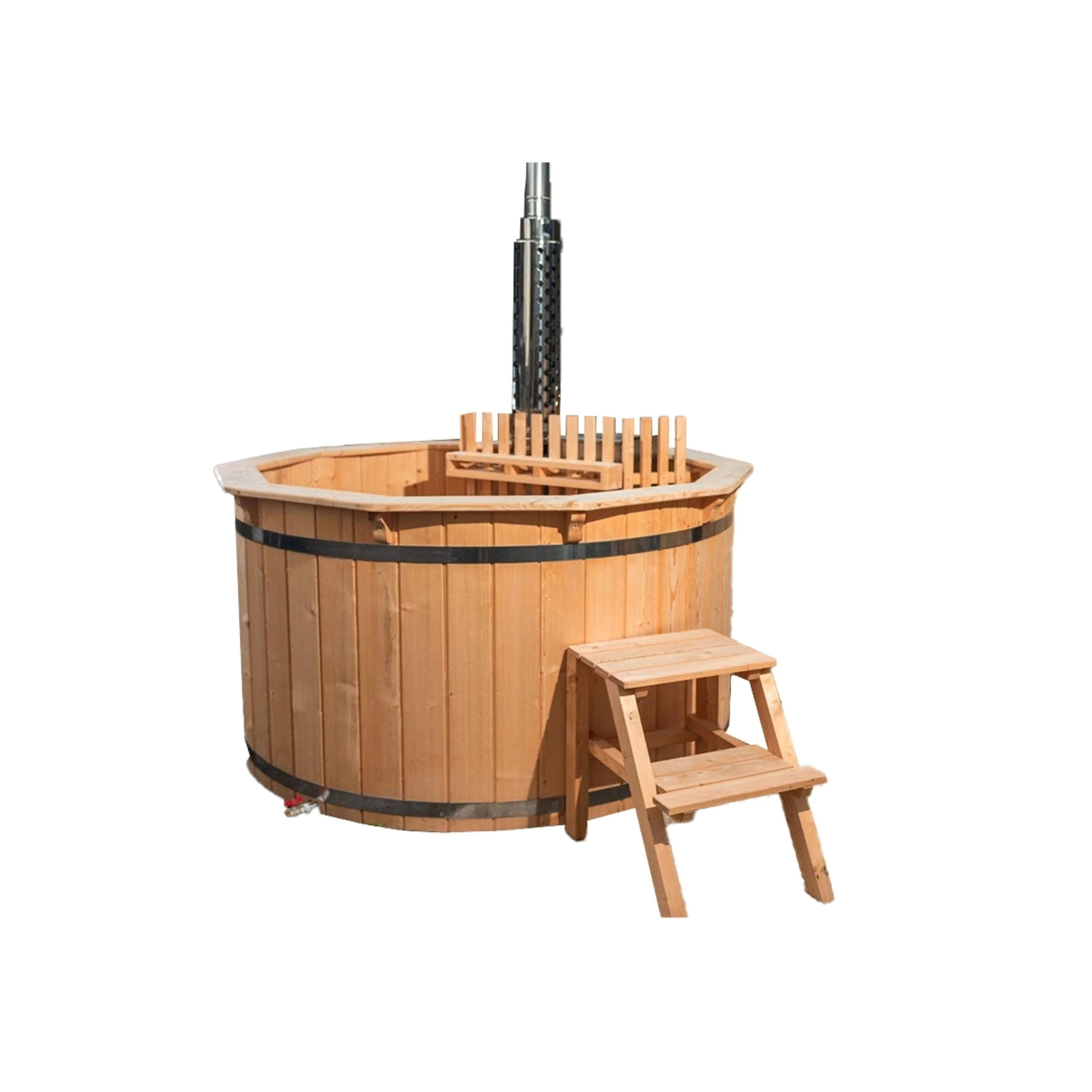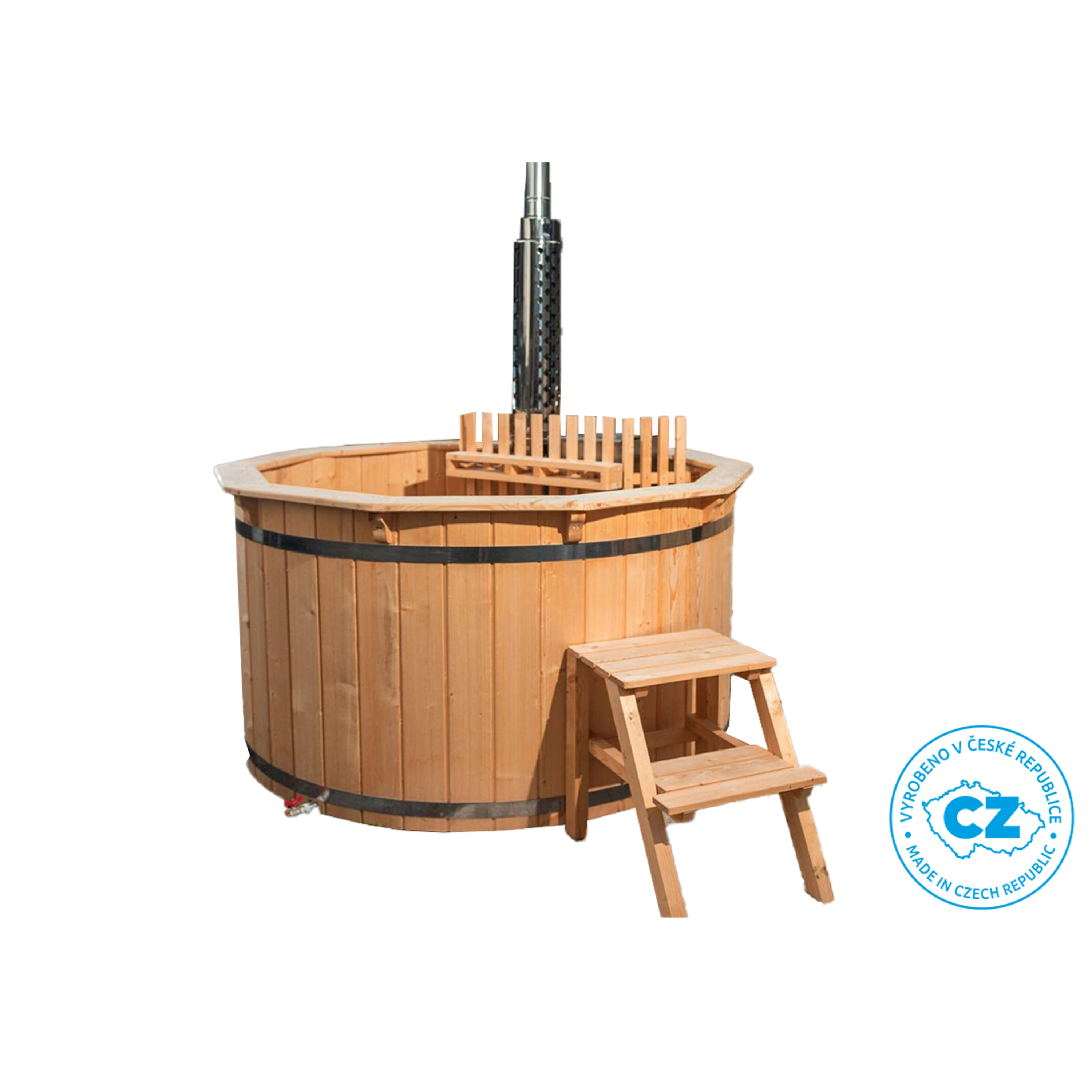Pro maximální efektivnost vytápění jsou nerezová kamna umístěna uvnitř koupacího sudu. Koupání venku i v chladném počasí je pak skutečným potěšením pro Vaše "tělo i mysl". Zejména v zimě, v mrazivých teplotách a padajícím sněhu se koupání ve vyhřátem sudu stane nezapomenutelným zážitkem. Kažký jeden kus koupacího sudu je vyráběn z kvalitního severského smrku, který je díky svým vlastnostem velmi odolný.