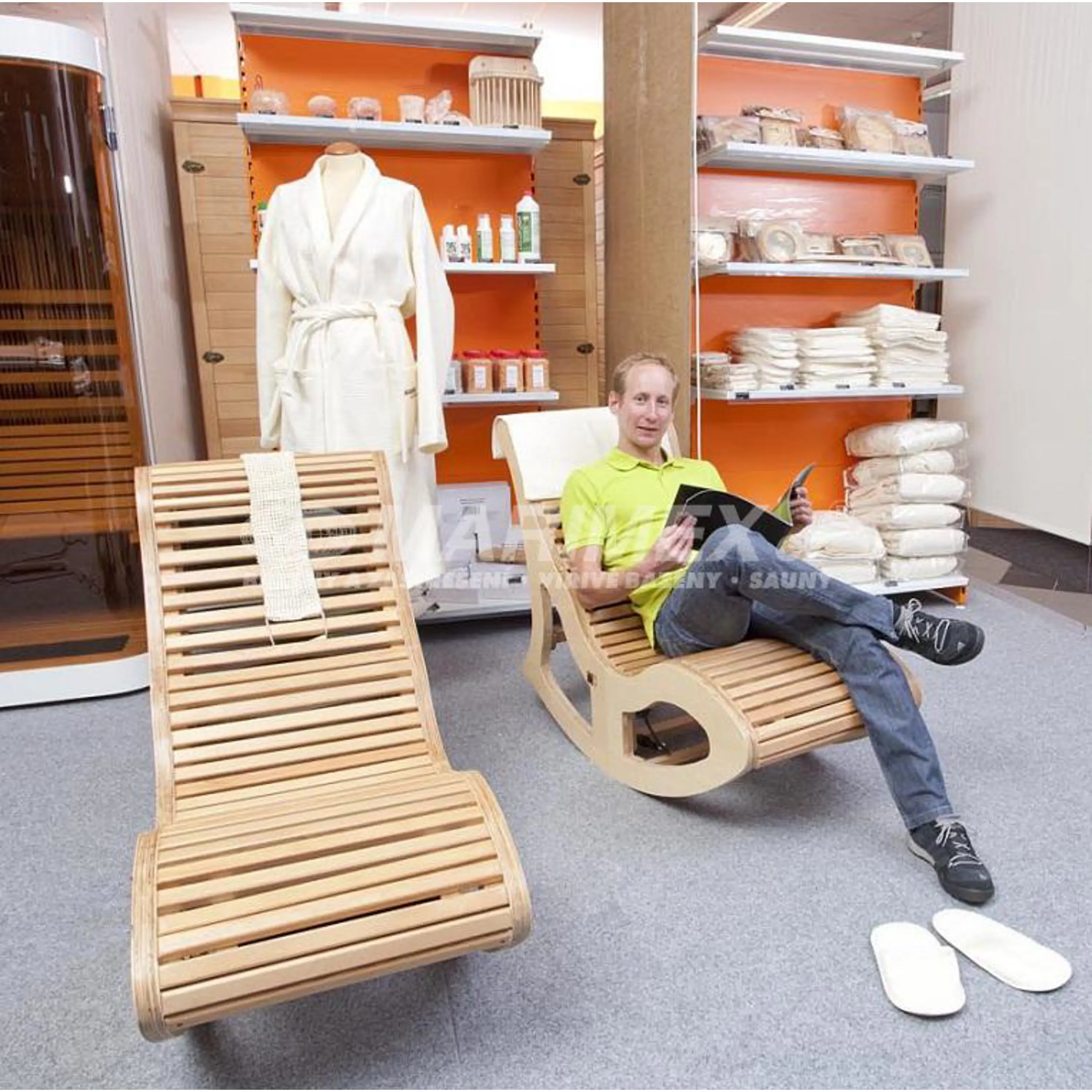 Luxusní houpací křeslo InfraMar s karbonovým topidlem z kvalitního dřeva kanadského jedlovce. Tvar křesla je přizpůsoben linii lidského těla a nabízí tak dokonalý odpočinek po saunování i při běžné relaxaci. Dá se použít například i k předehřátí před masáží nebo k prohřátí organismu po zimních sportech. Je také ideální například pro klaustrofobiky, kteří by chtěli využívat léčivých účinků infrasaun. Infrakřeslo se zapojuje do klasické zásuvky na 230 V.