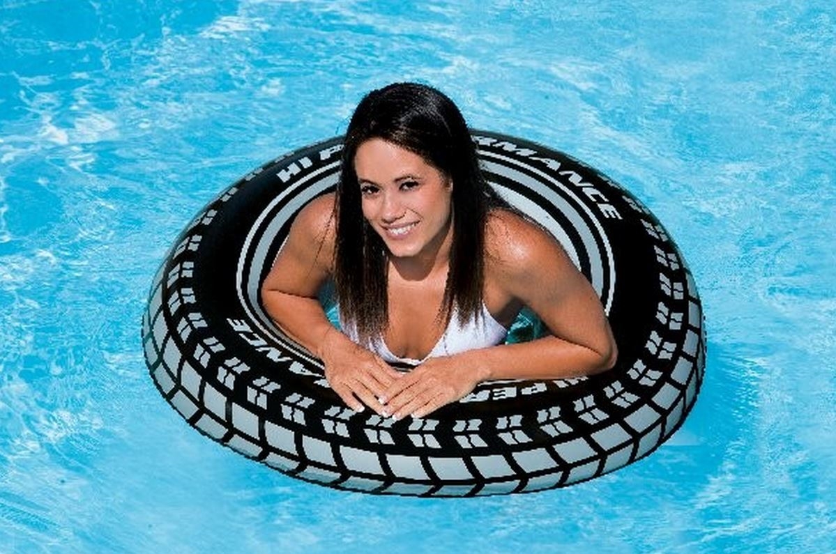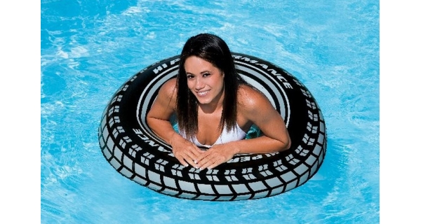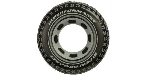 Větší nafukovací kruh pro dospělé s motivem pneumatiky.