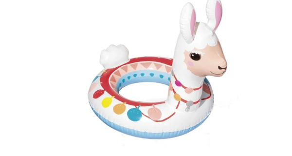 Dětský nafukovací kruh o rozměrech 86 x 58 cm s motivem kachny pro děti od 3 do 6 let.
