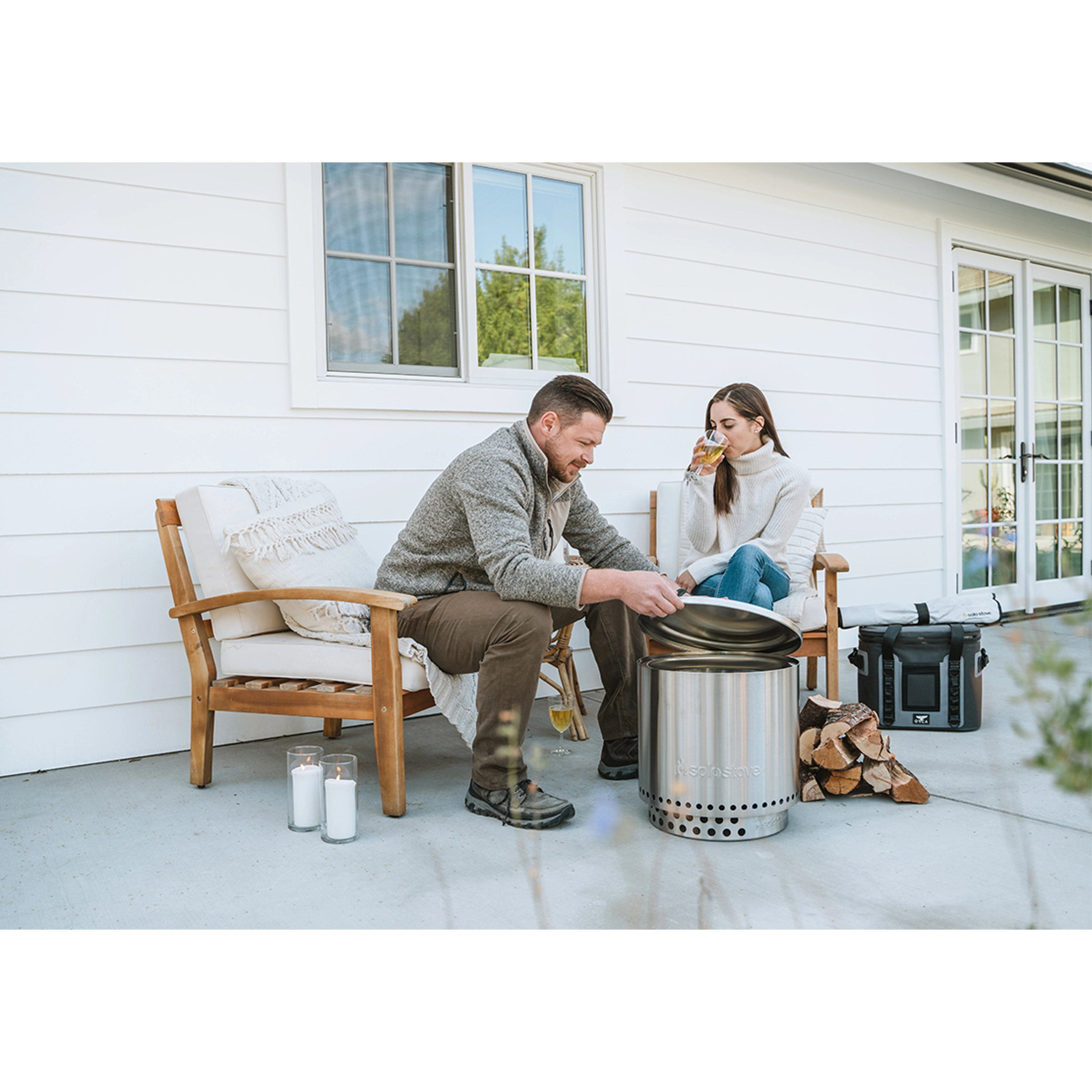 Nerezové víko pro bezkouřové ohniště Solo Stove Ranger. Víko může sloužit jako ochrana před žhavými uhlíky nebo díky němu můžete ohniště během okamžiku proměnit na moderní nerezový stůl.