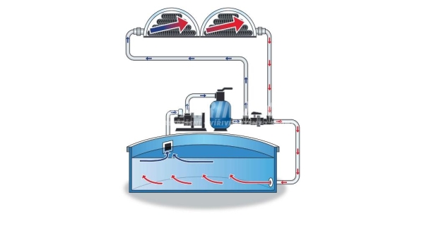 Toto rozdělení v podstatě funguje jako vypínač, či regulátor solárního ohřevu, kdy se přes ventil odkloní tok vody a proudí tak přímo zpět do bazénu. Pokud tedy na noční filtrování bazénu chcete solární ohřev "vypnout", neboť v nočních hodinách má solární ohřev opačný efekt a bazénovou vodu spíše ochlazuje, doporučujeme použít právě náš kulový ventil.