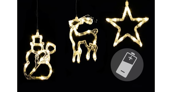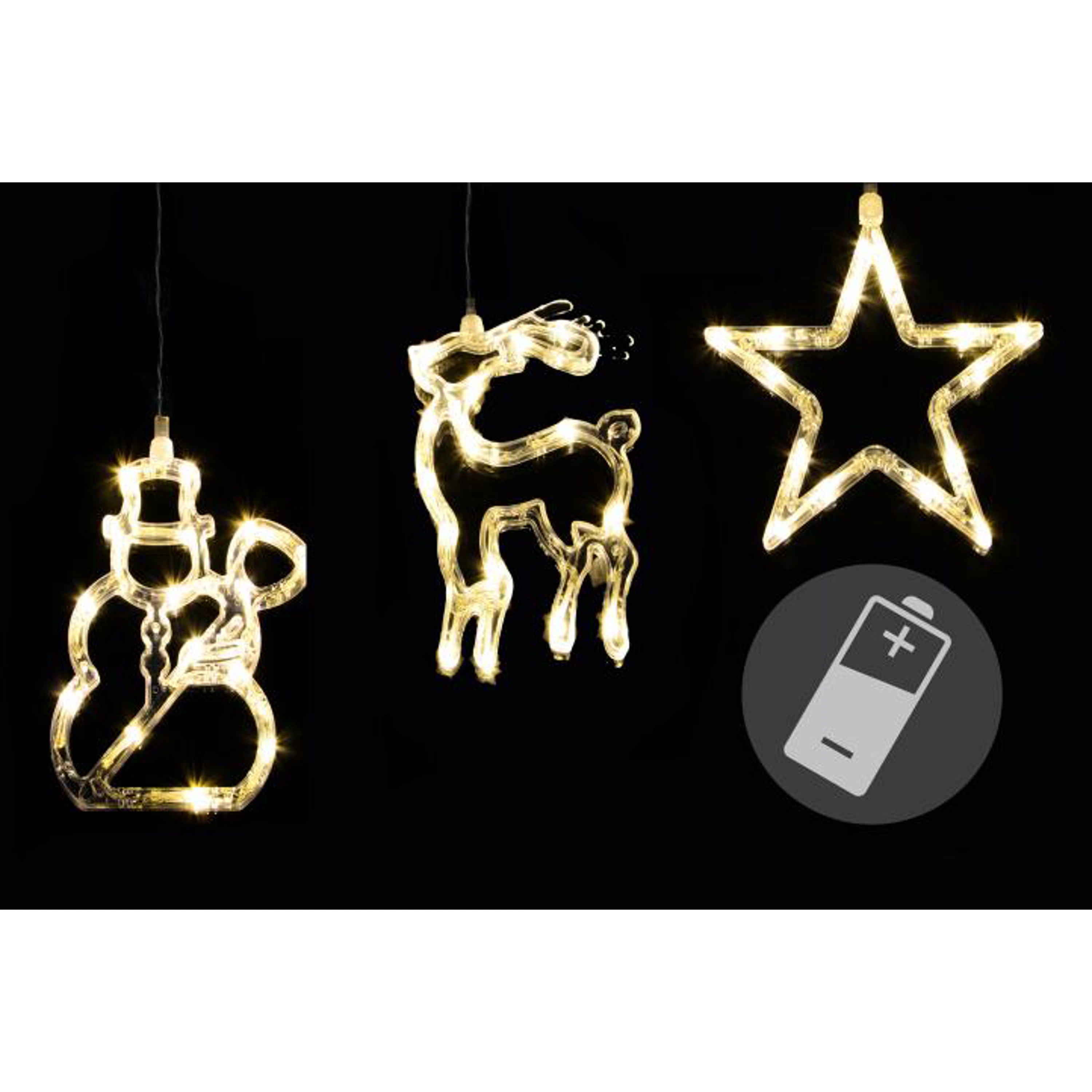 LED dekorace na okno CLEAR - 3 ks - sob, sněhulák, hvězda