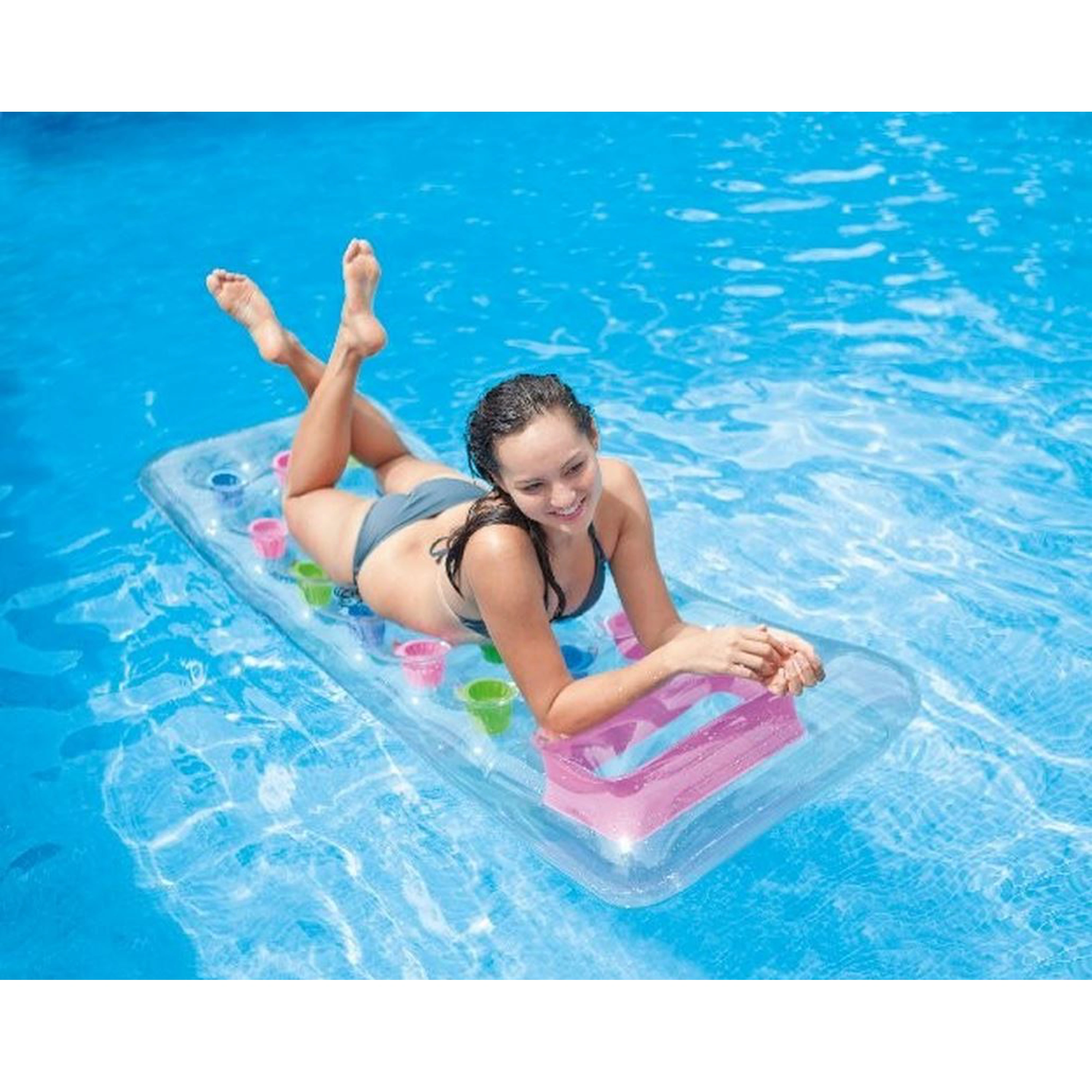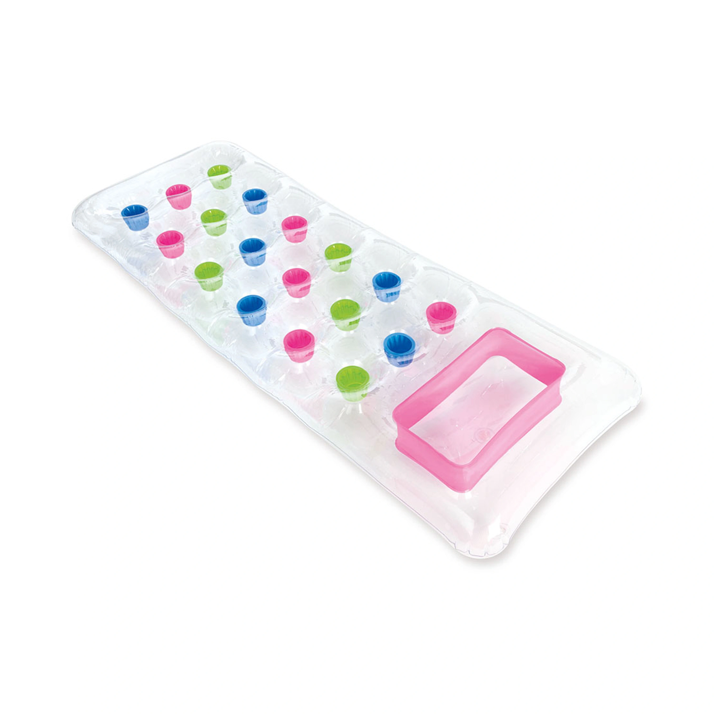 Nafukovací lehátko Transparent udělá pobyt u bazénu či moře ještě příjemnější a pohodovější. Podhlavník lehátka je vybaven průzorem, kterým je možné sledovat dění pod hladinou. Kvalitní materiály použité při výrobě zajišťují dlouhodobou životnost. V barevné kombinaci - zelená, modrá, růžová.