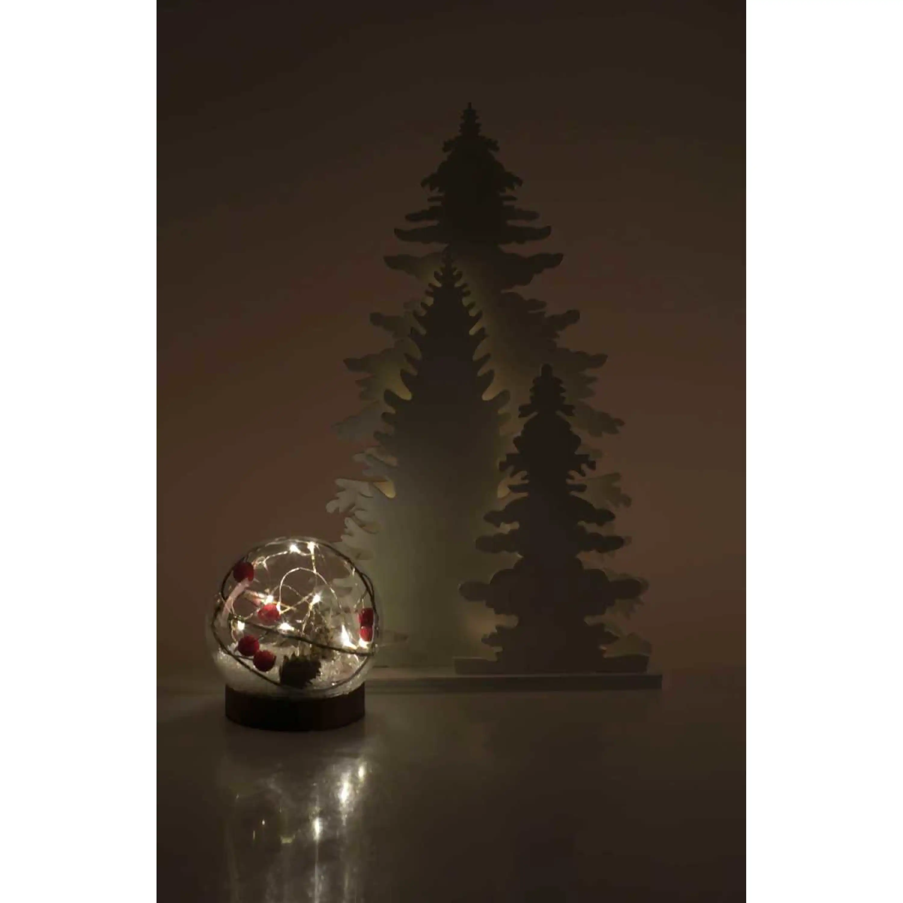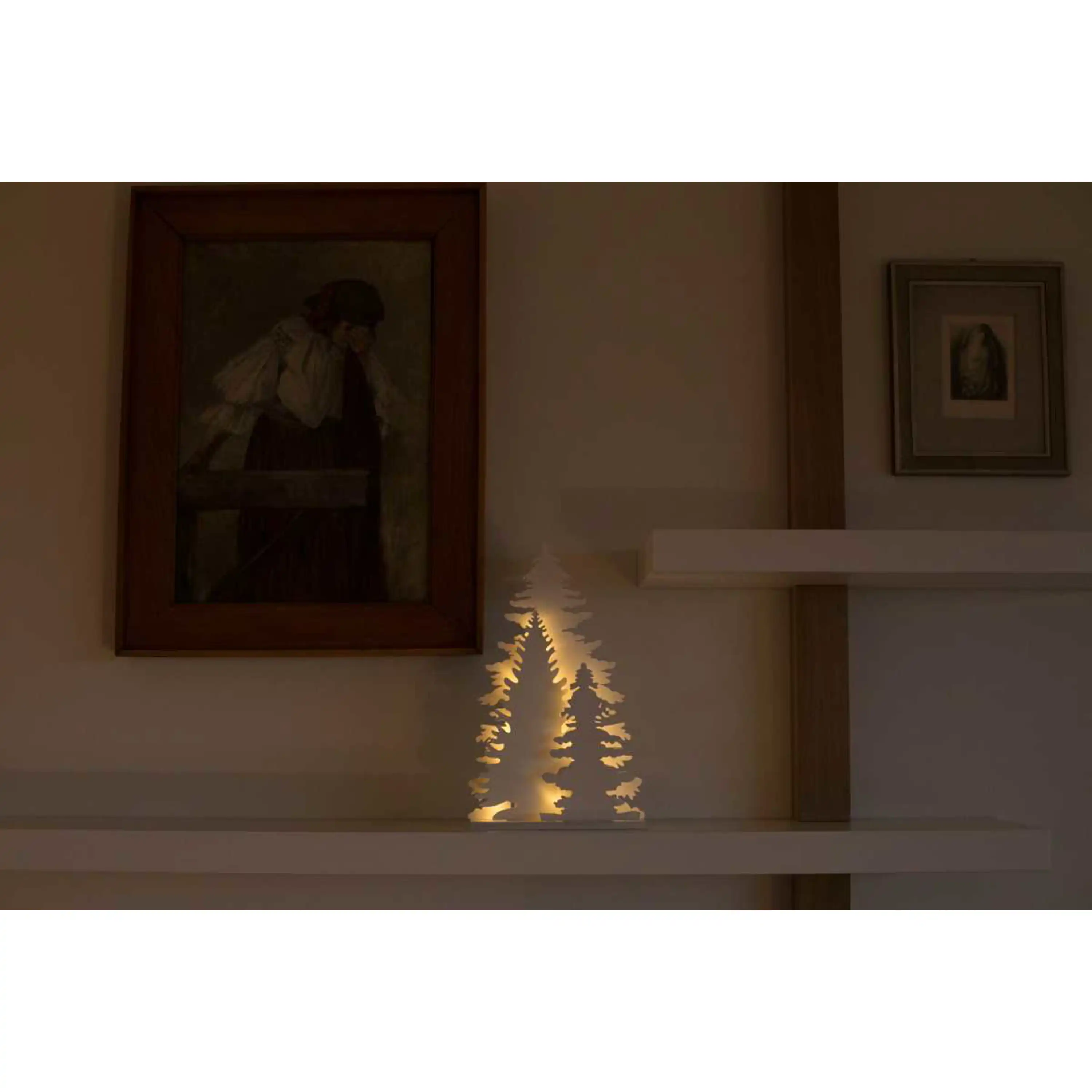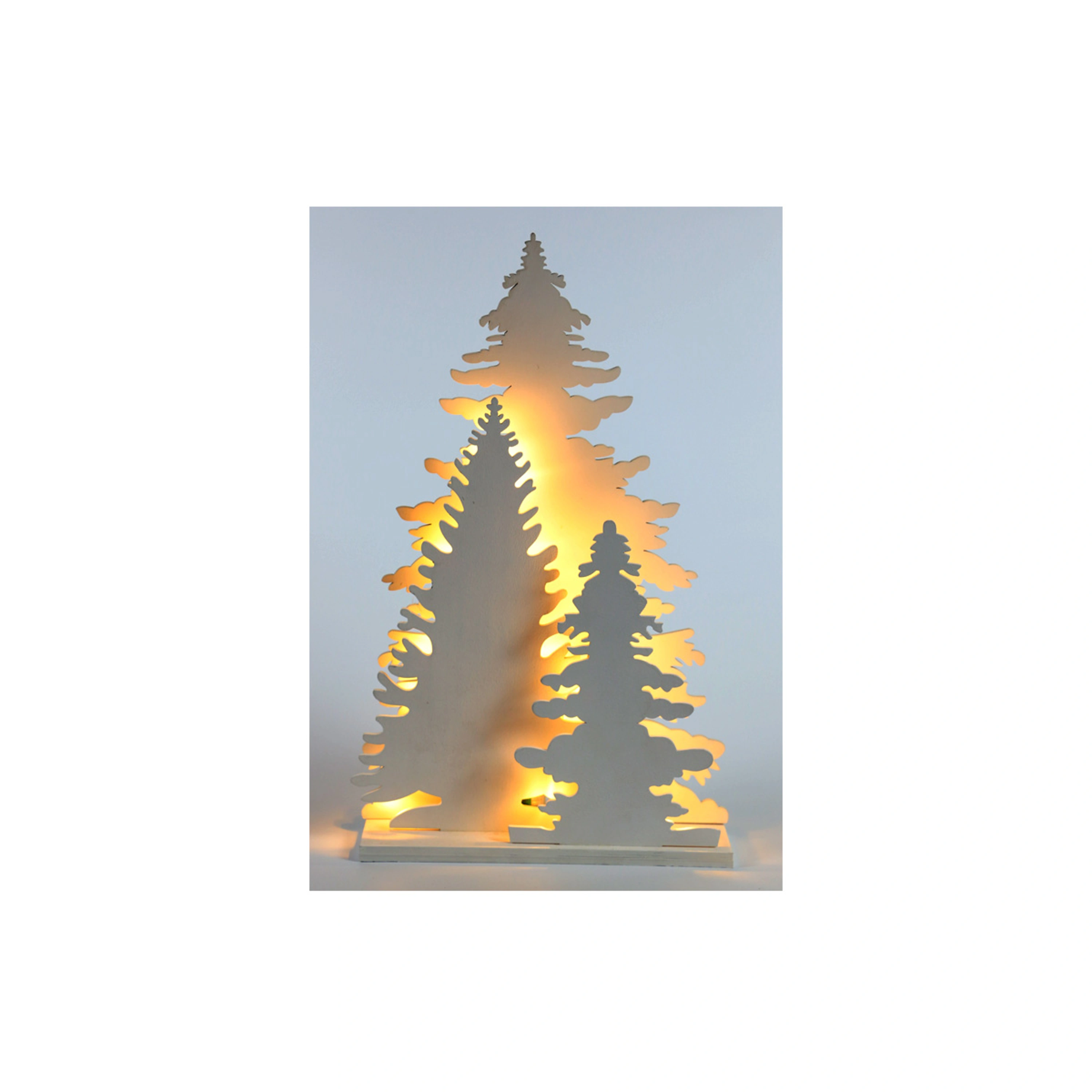 Vytvořte si kouzelnou vánoční atmosféru díky originální LED dekoraci ve tvaru lesa. Tato ozdoba v bílém designu má zabudovaných 15 LED, které září teplou bílou barvou.